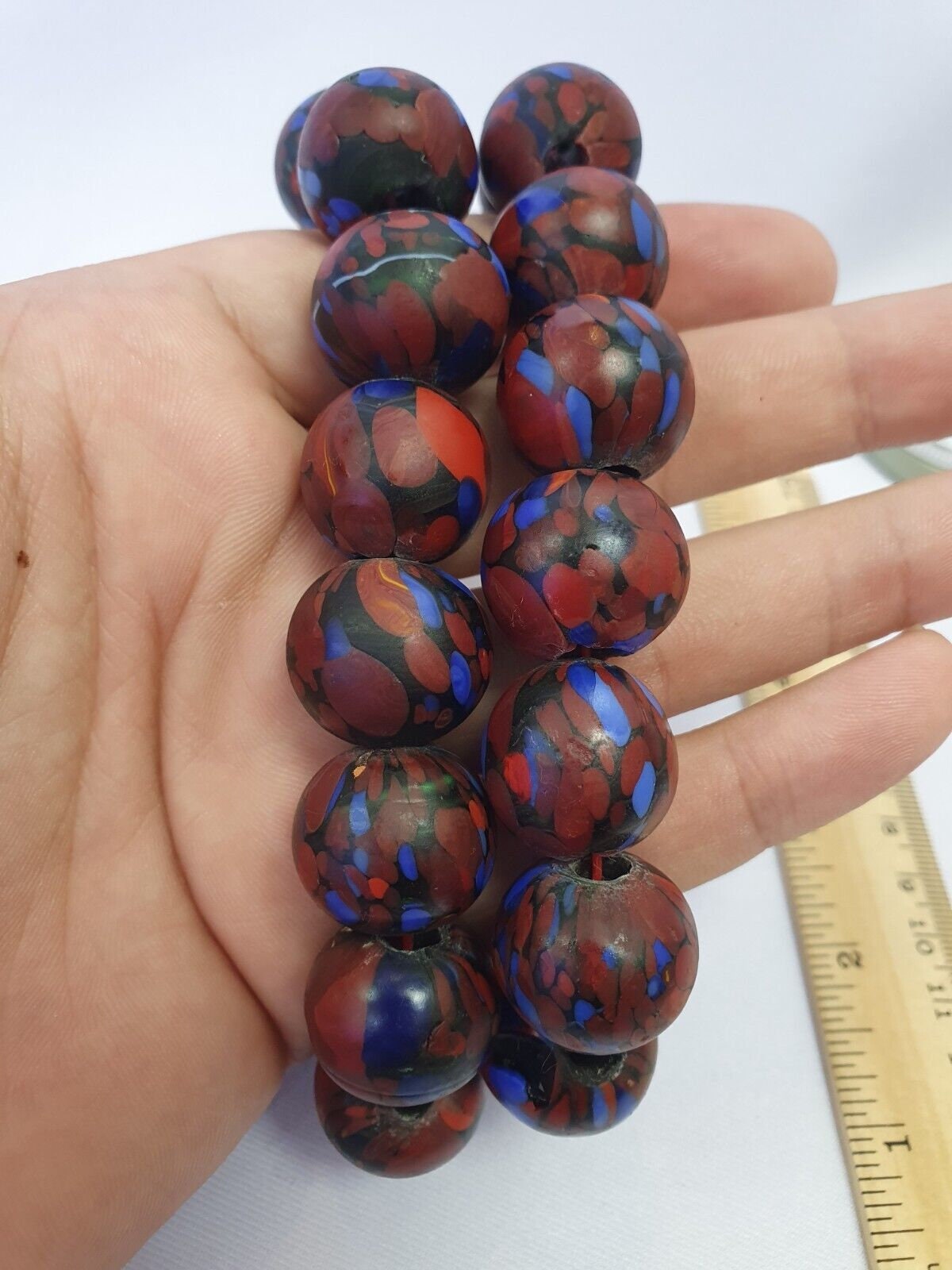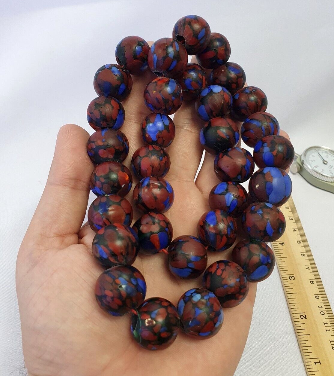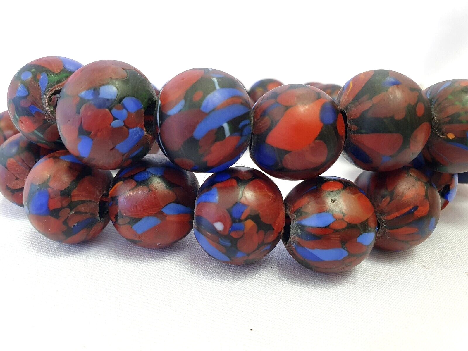 1Vintage Trade Beads Very Unique Color Beaded Strand Necklace 20mm