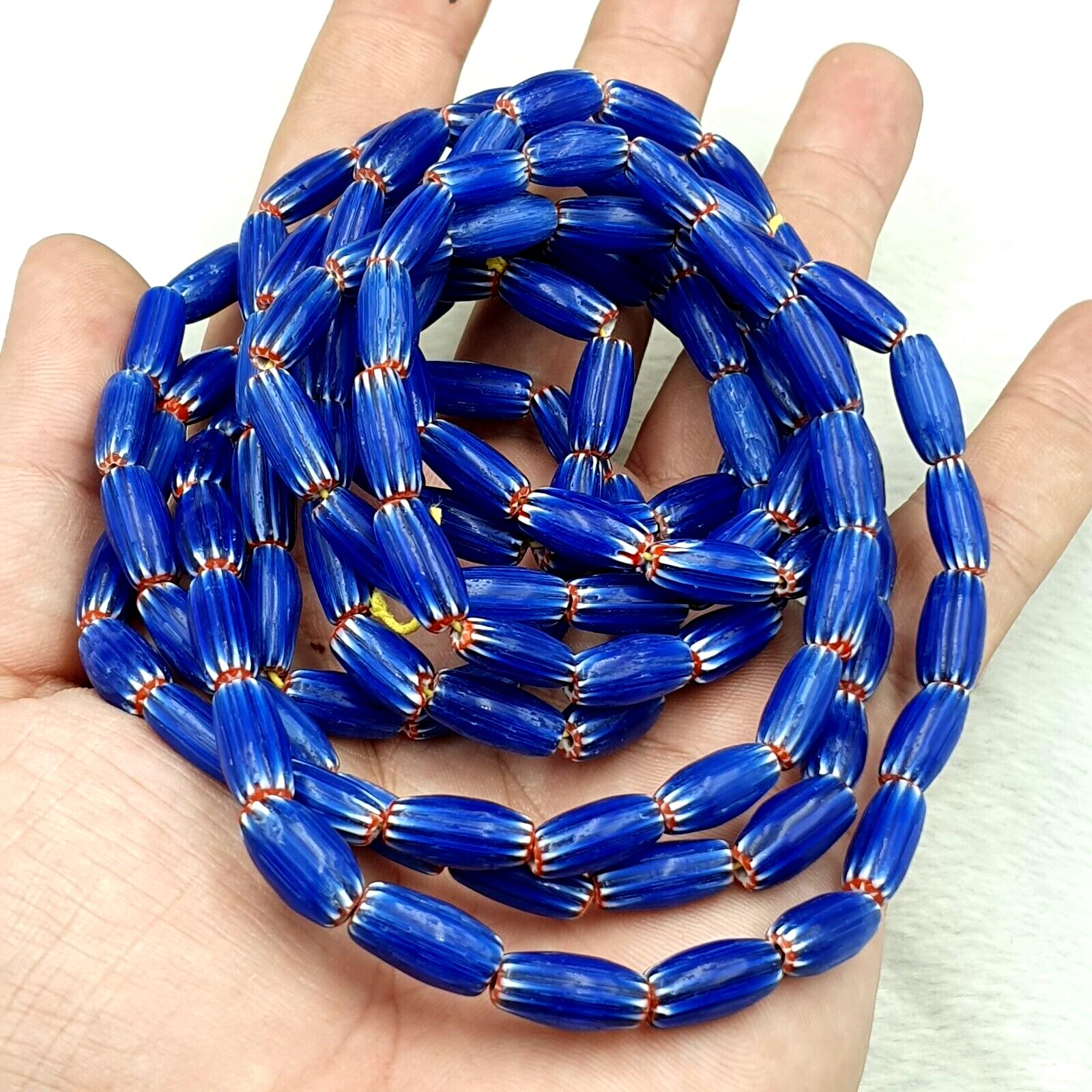 Chevron Beads SIX Layer Type of Object Drawn, multi-layered glass Color BLUE, RED, White Approximate Age Late 20th century Overall