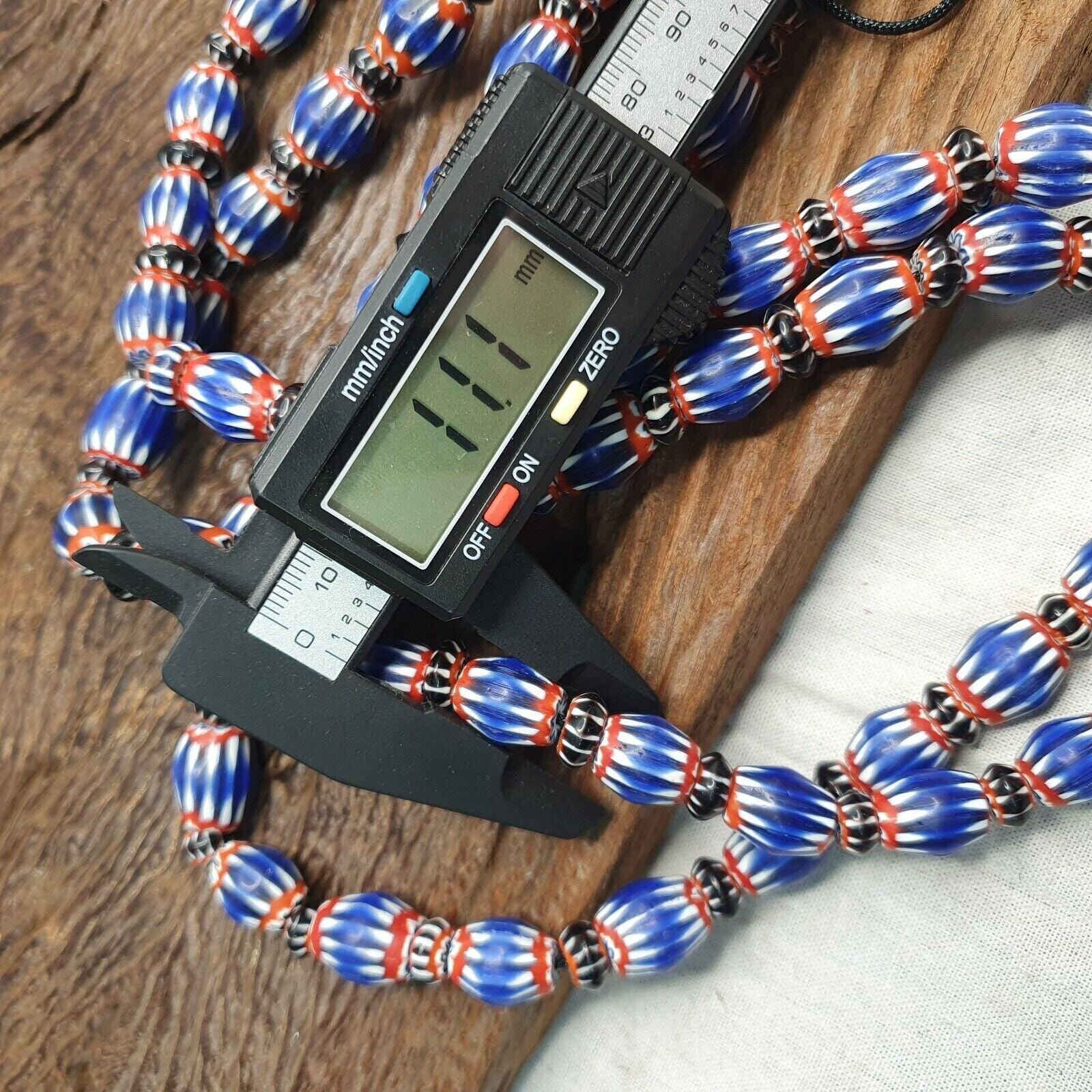 Chevron Beads SIX Layer Type of Object Drawn, multi-layered glass Color BLUE, RED, White Approximate Age Late 20th century Overall