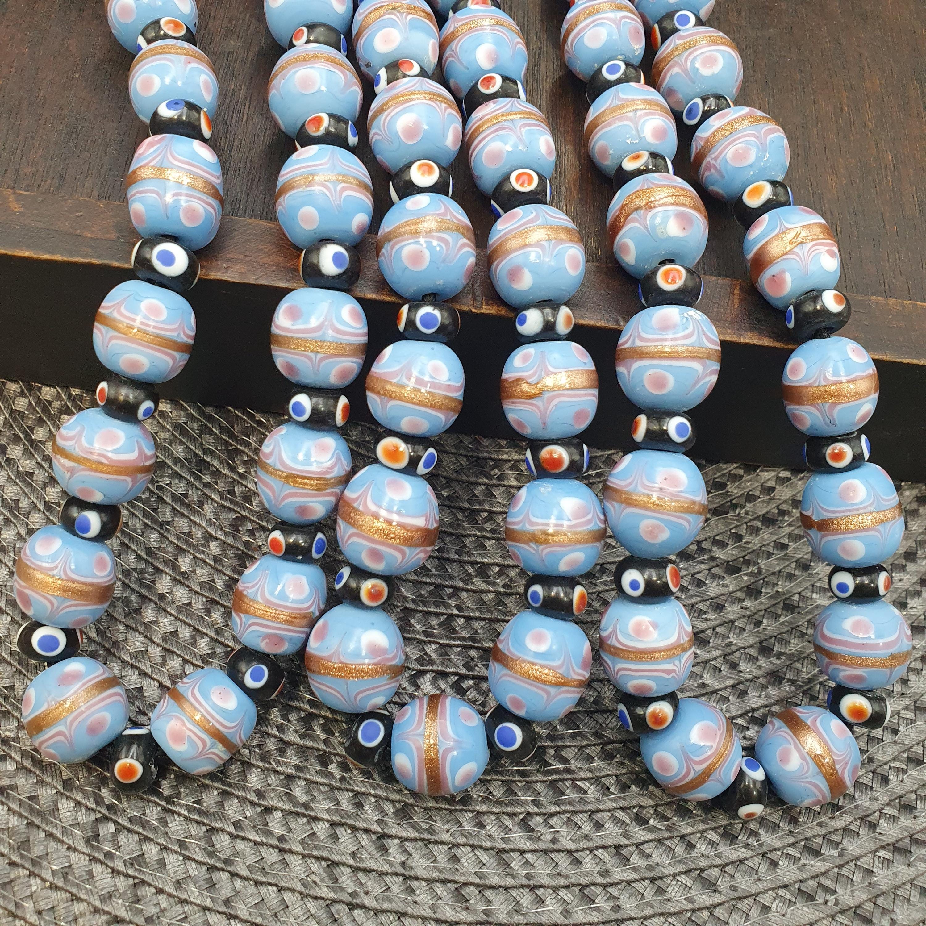 The handmade necklace features high-quality glass beads that are both durable and beautiful. The necklace falls under the Collectibles category and is perfect for those who appreciate unique and one-of-a-kind pieces. Add a touch of sophistication to your jewelry collection with this stunning Venetian Style Skunk Wedding cake Aventurine beads beaded Extra Long Necklace.