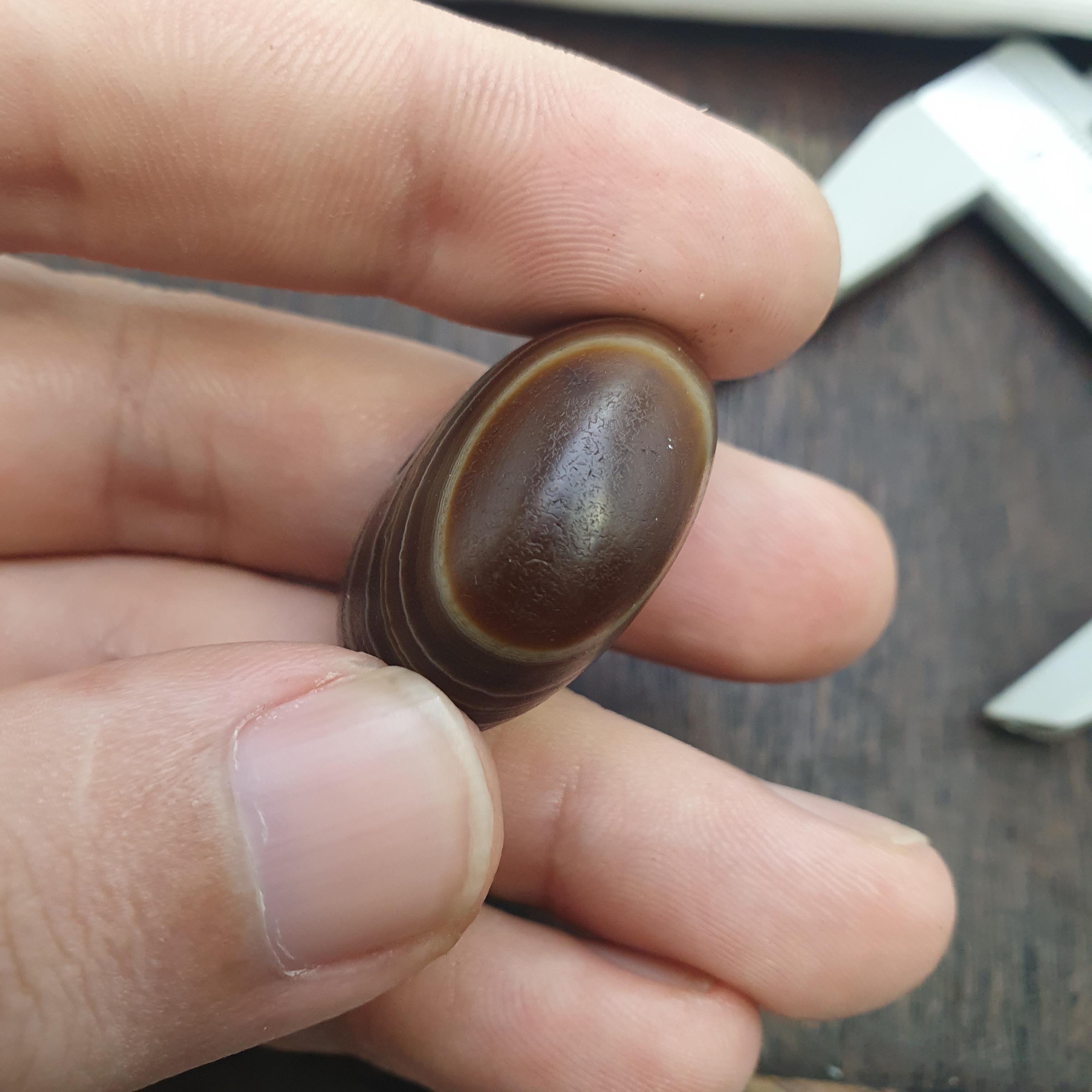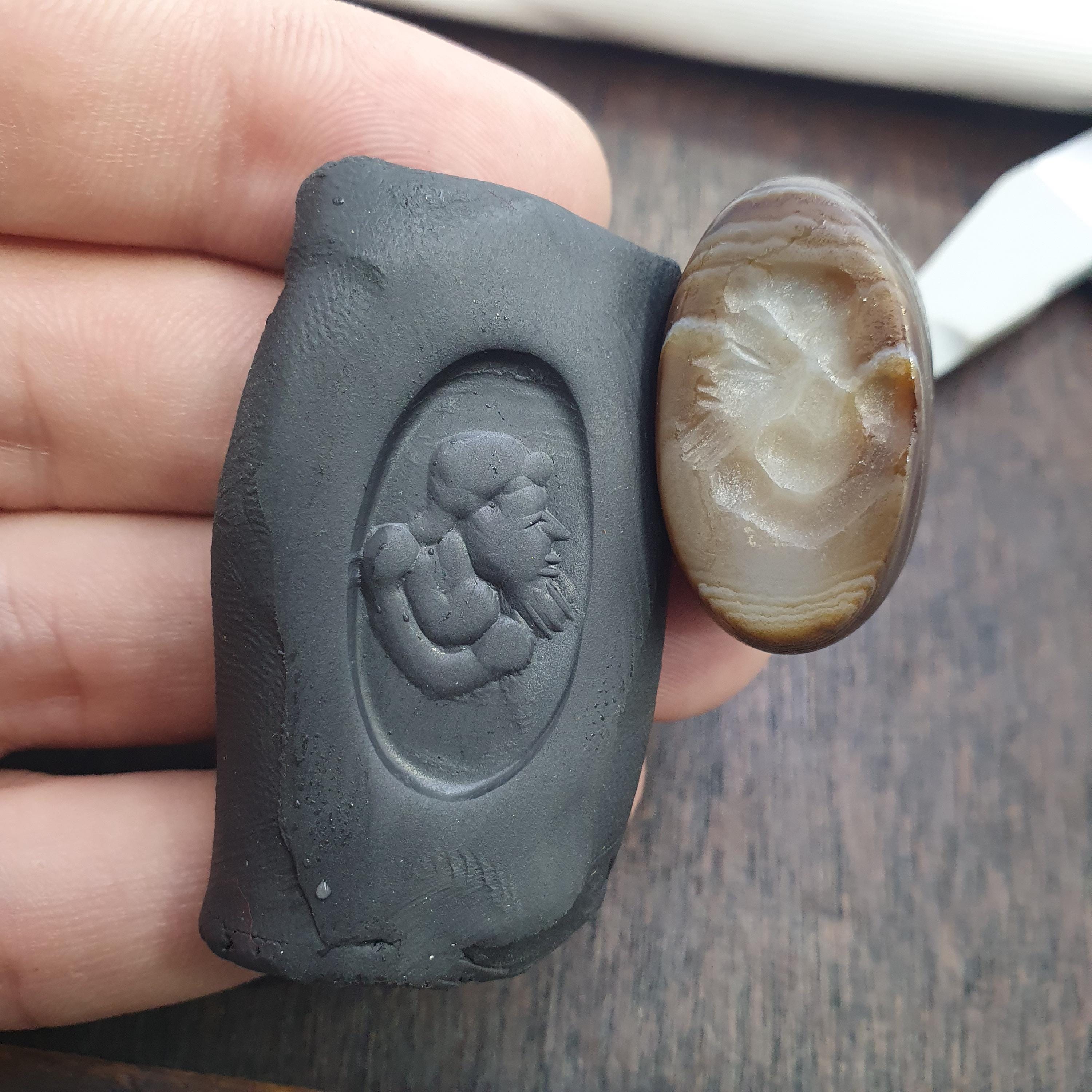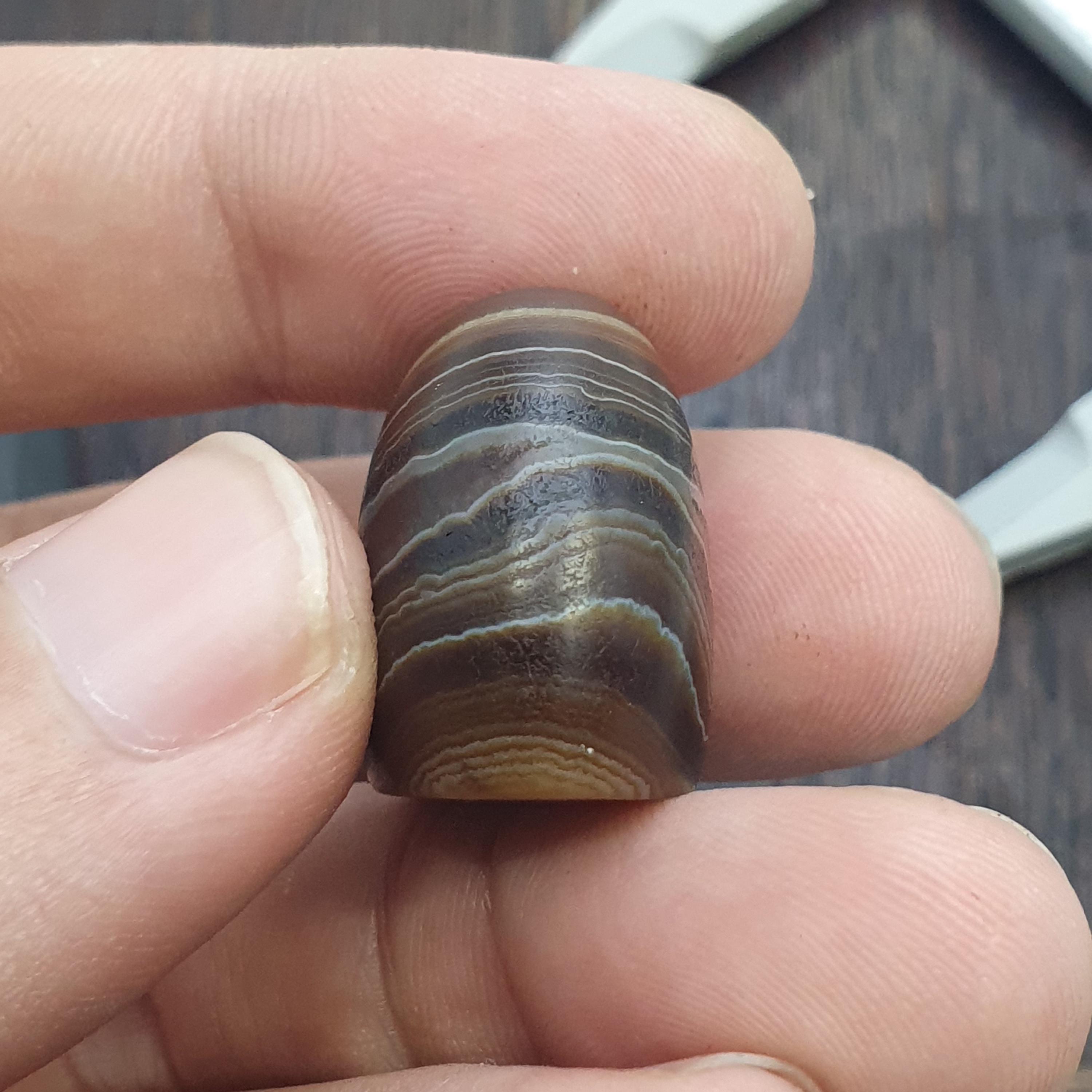 This antique Banded Agate Cylinder Seal features intricately carved figure in intaglio style. Made from Agate stone , this unique piece showcases the craftsmanship of the Near Eastern region. The original design on the agate material adds a touch of history and artistry to any collection of decorative collectibles.