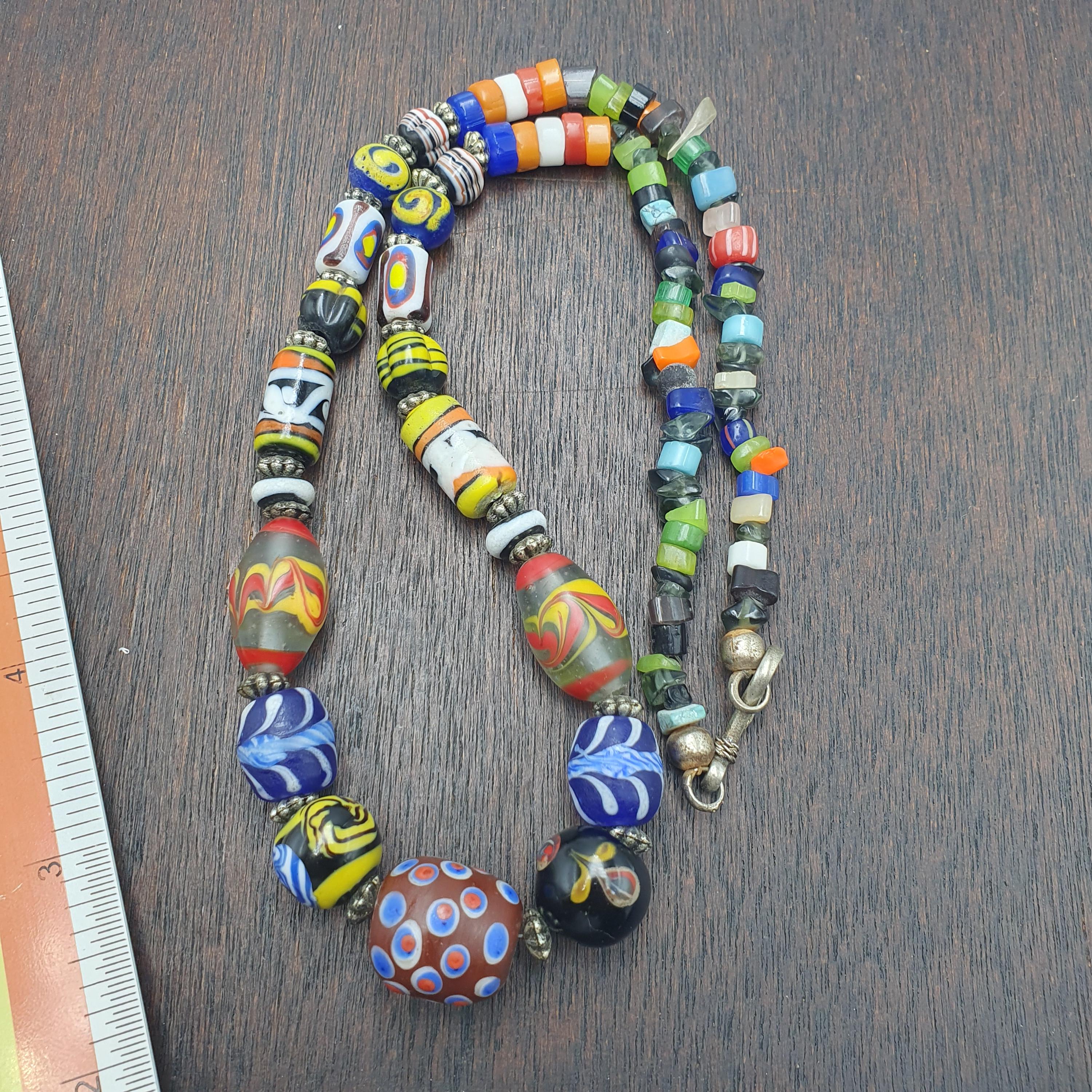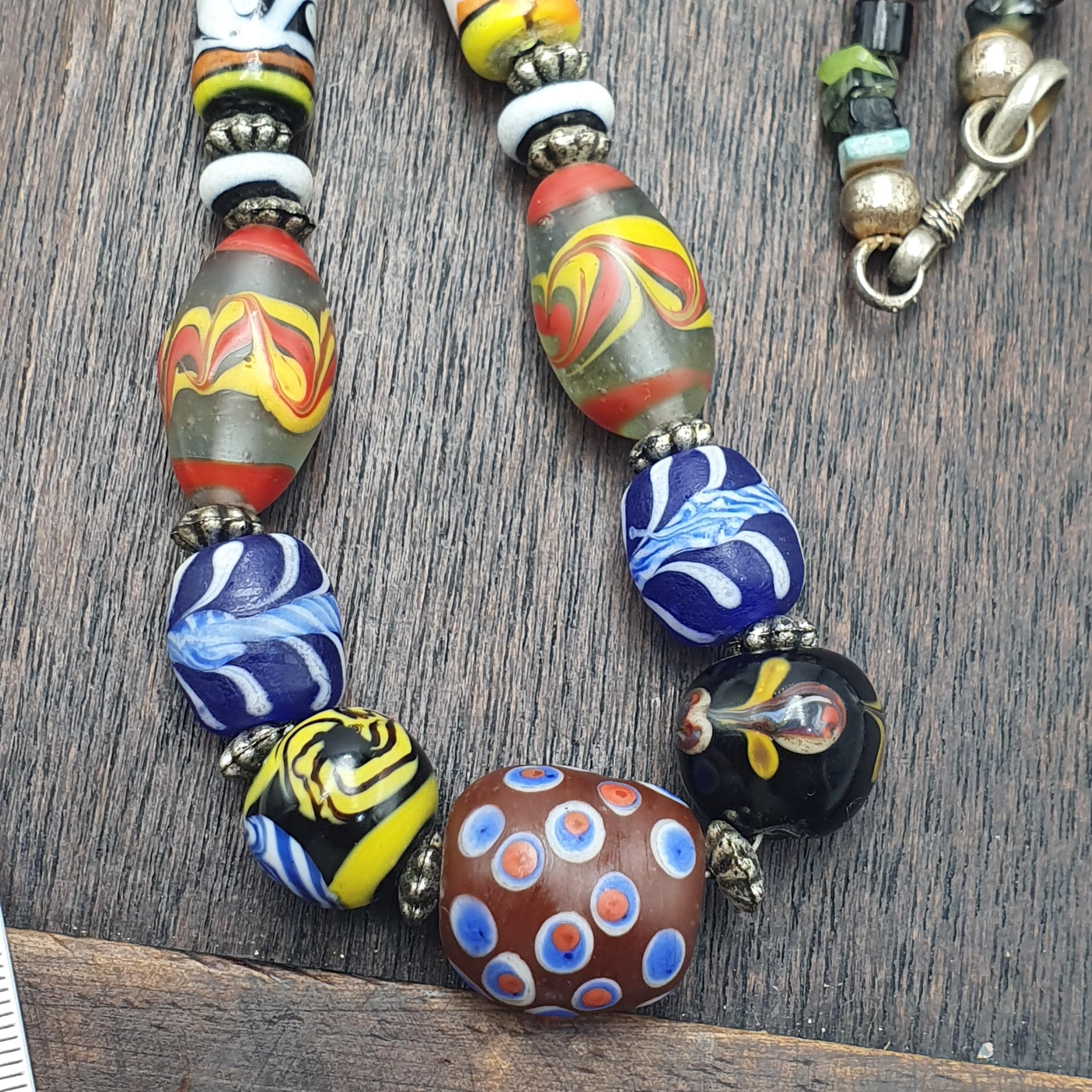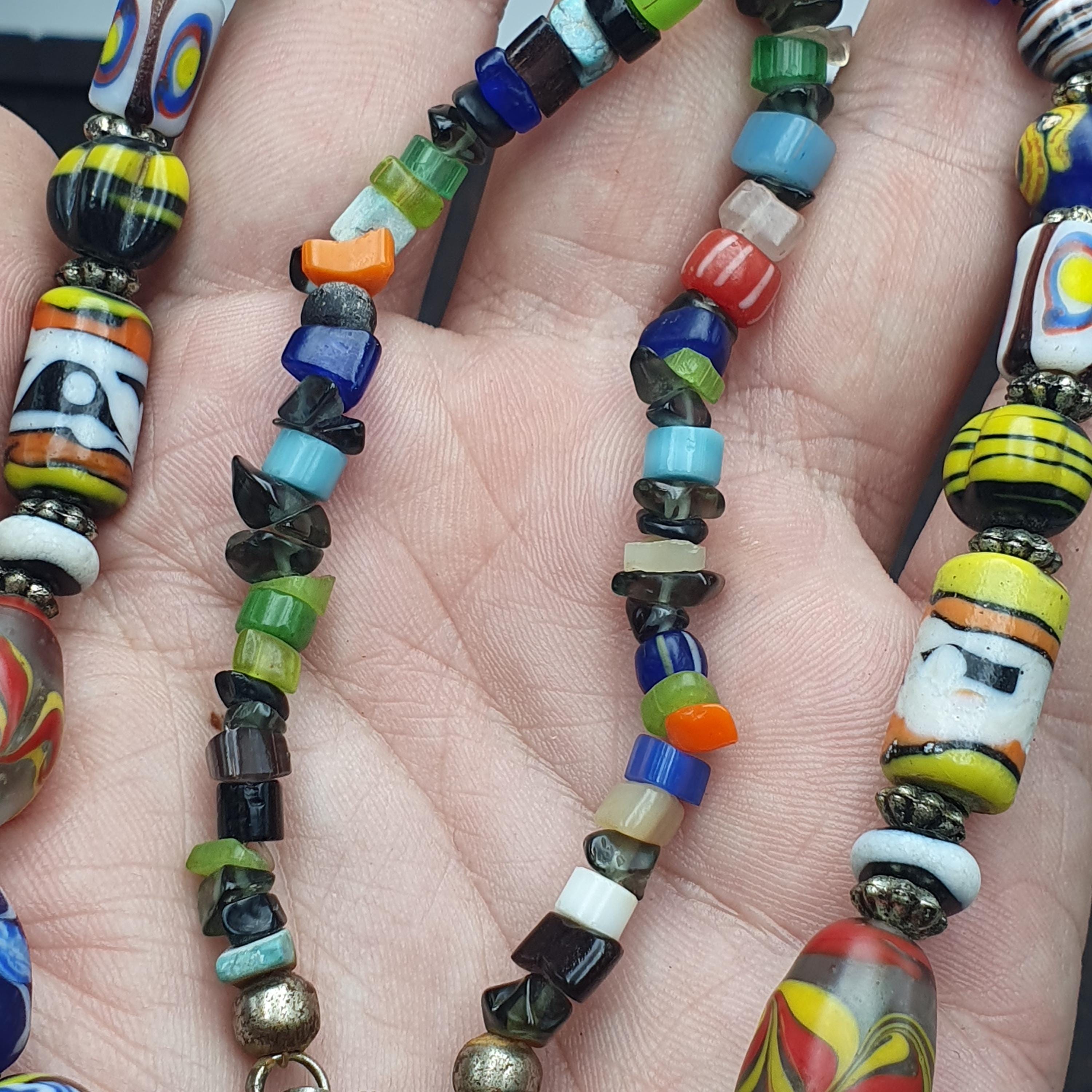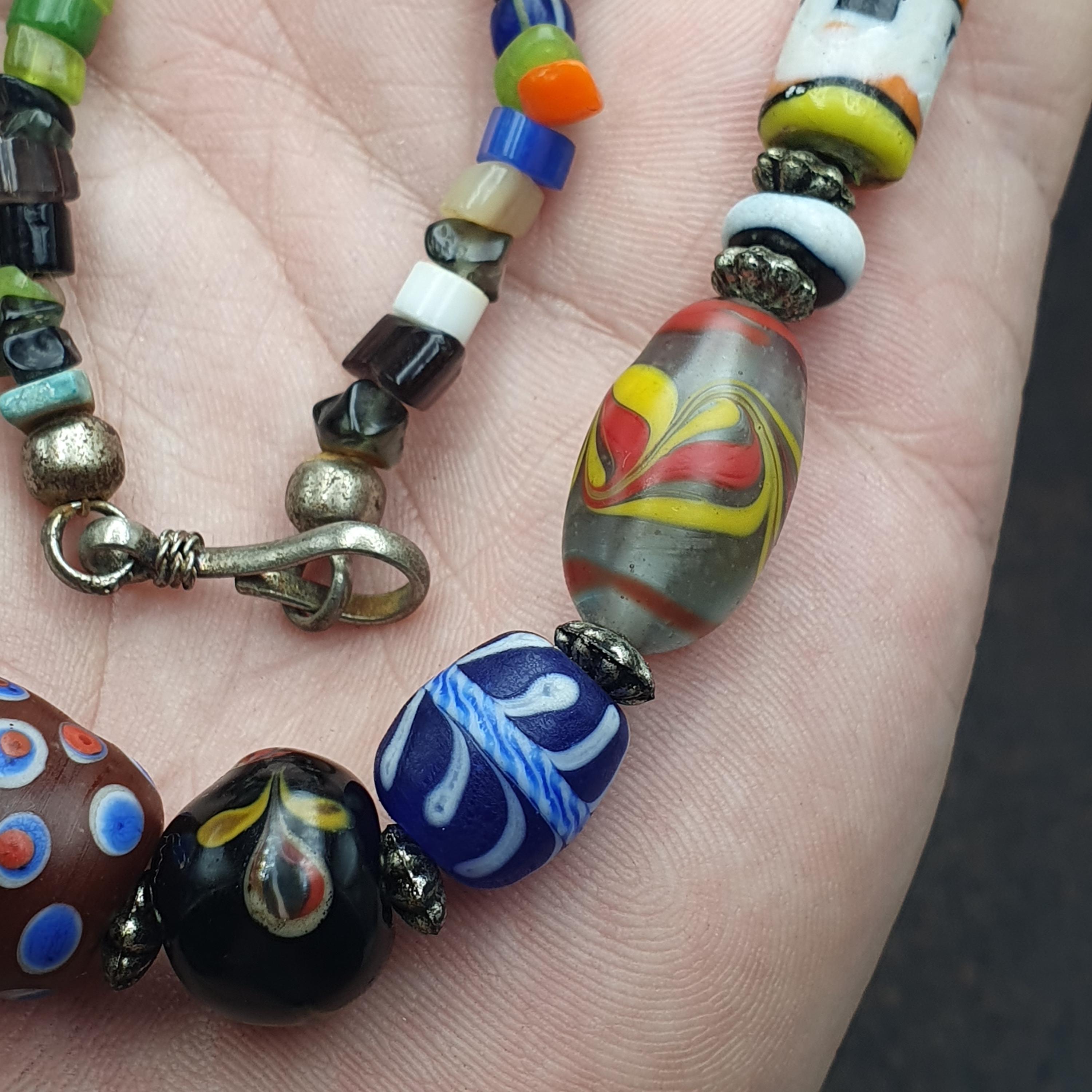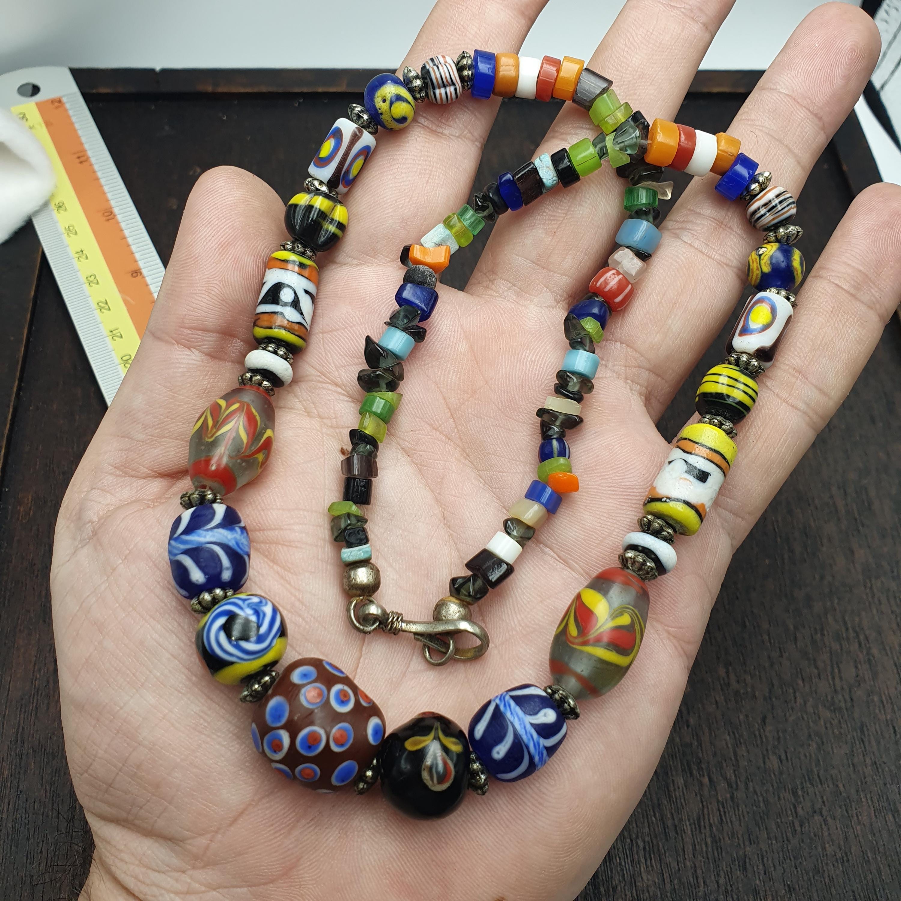 This beaded jewelry piece is easy to care for—simply wipe with a soft cloth to maintain its vibrant shine. Whether you're seeking a special gift for him or her, or a distinctive accessory to showcase your personal style, this vintage glass bead necklace is a beautiful choice. Add a splash of color and a dash of history to your jewelry collection today