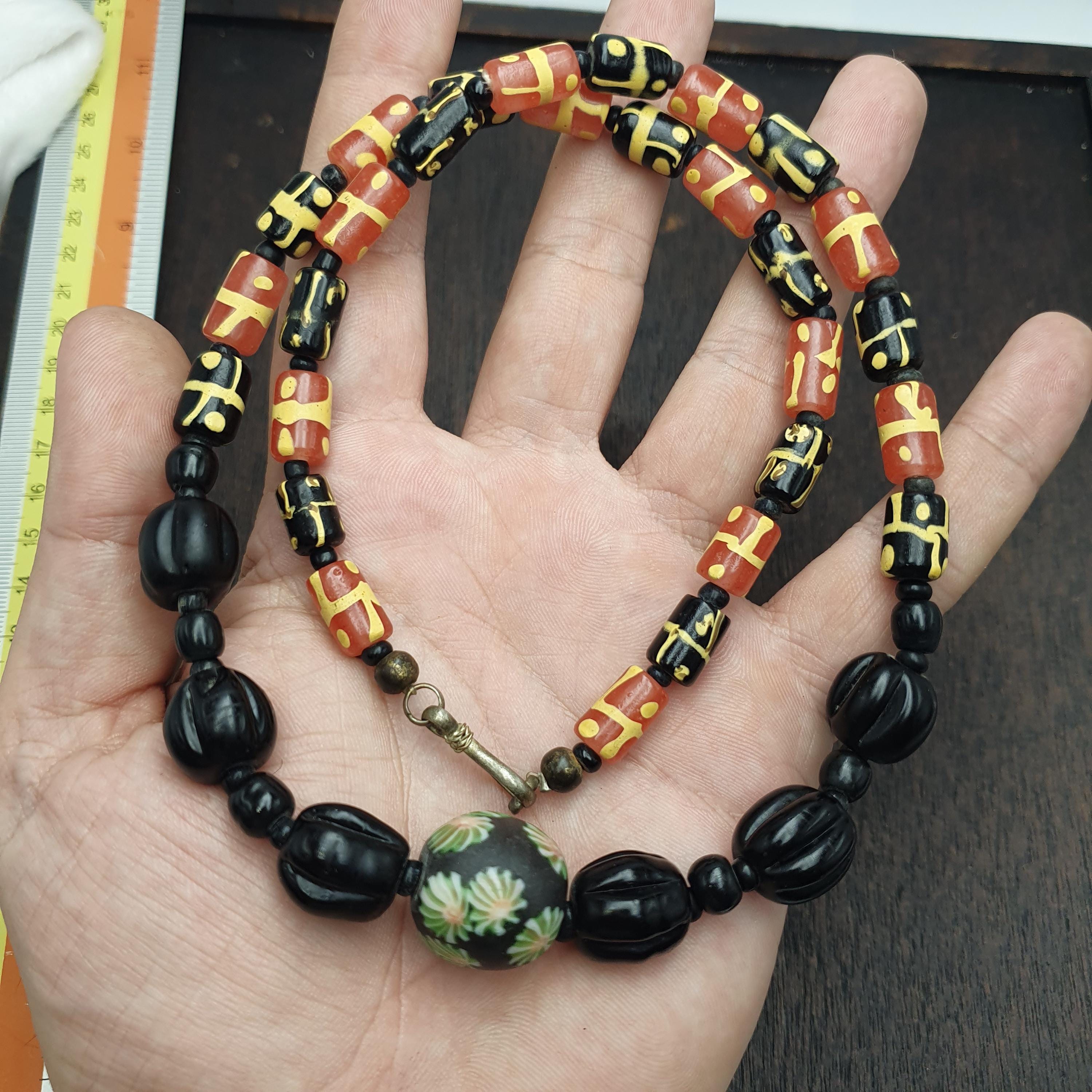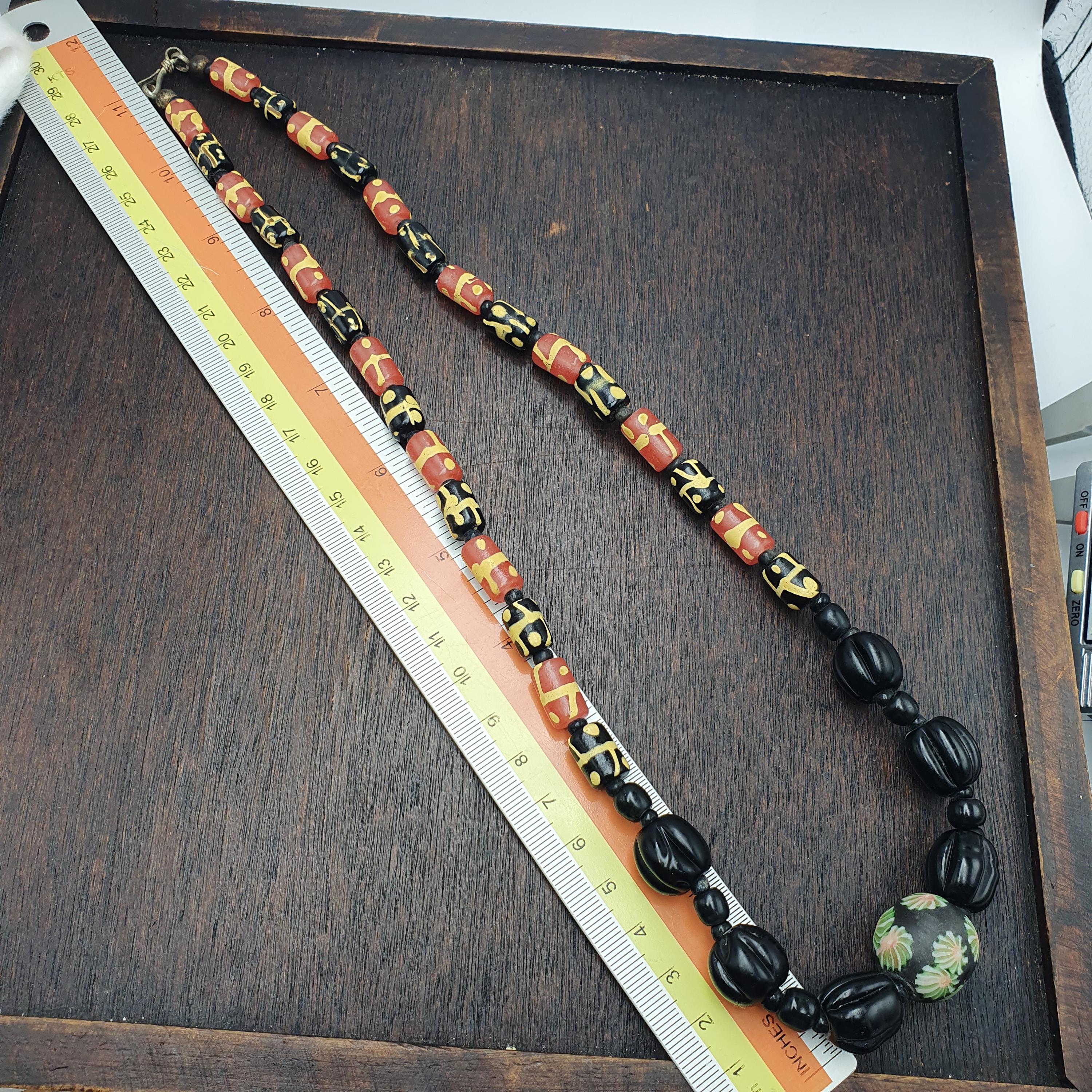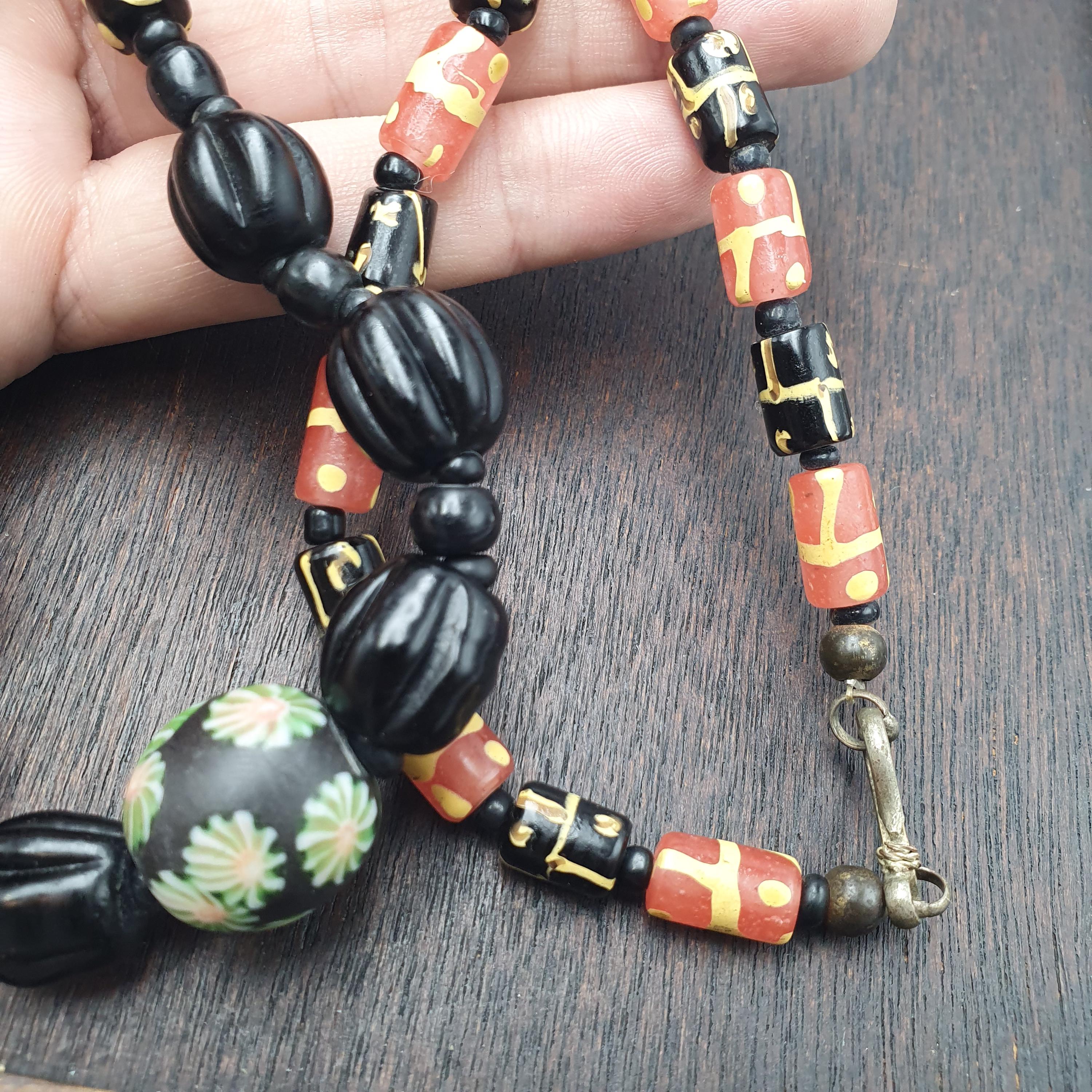 This necklace is not only a statement piece but also a testament to traditional craftsmanship. To keep it looking its best, gently wipe with a soft cloth and avoid exposure to harsh chemicals. Whether you're a collector of vintage beads or searching for a distinctive jewelry gift, this Millefiori glass bead necklace is a beautiful addition to any jewelry collection.