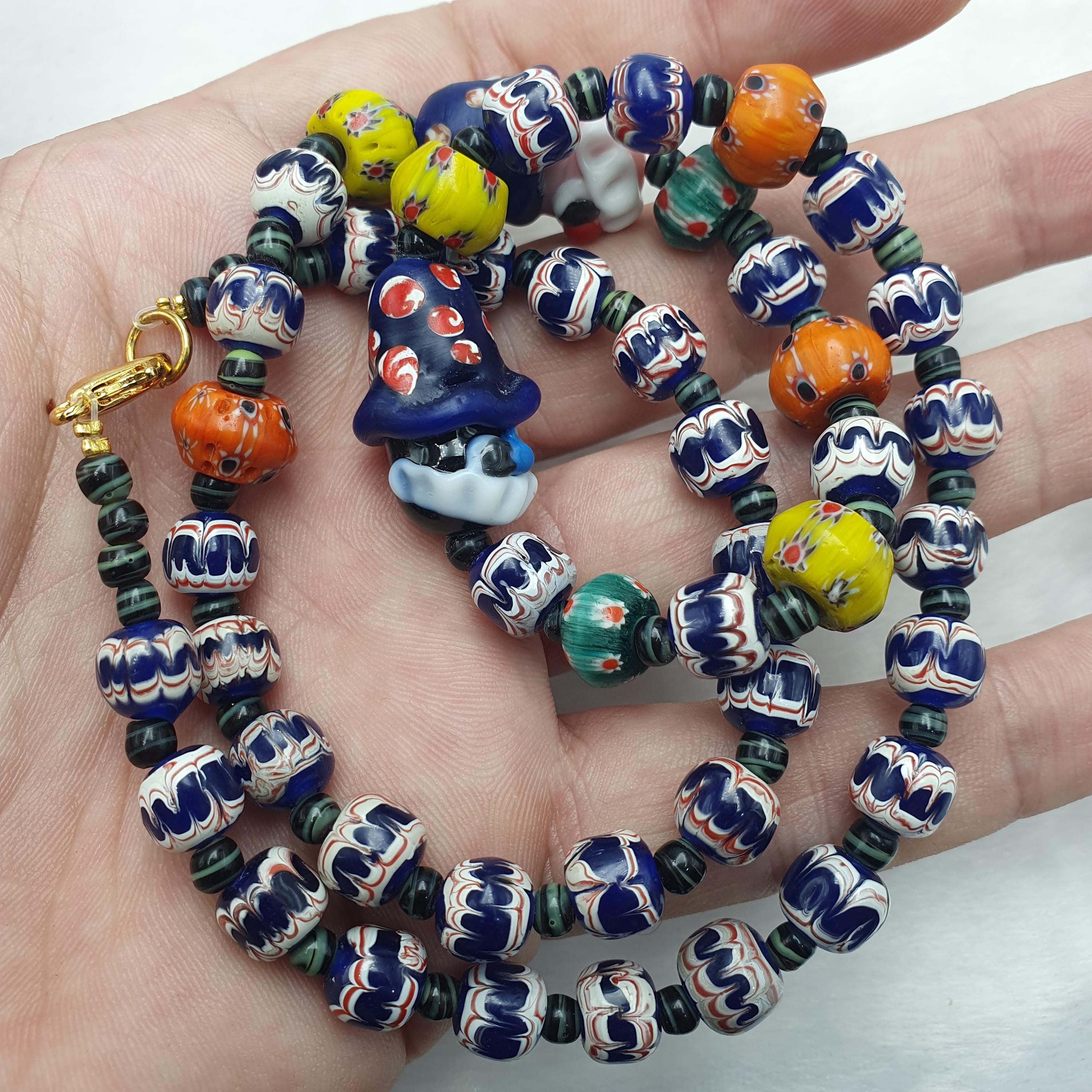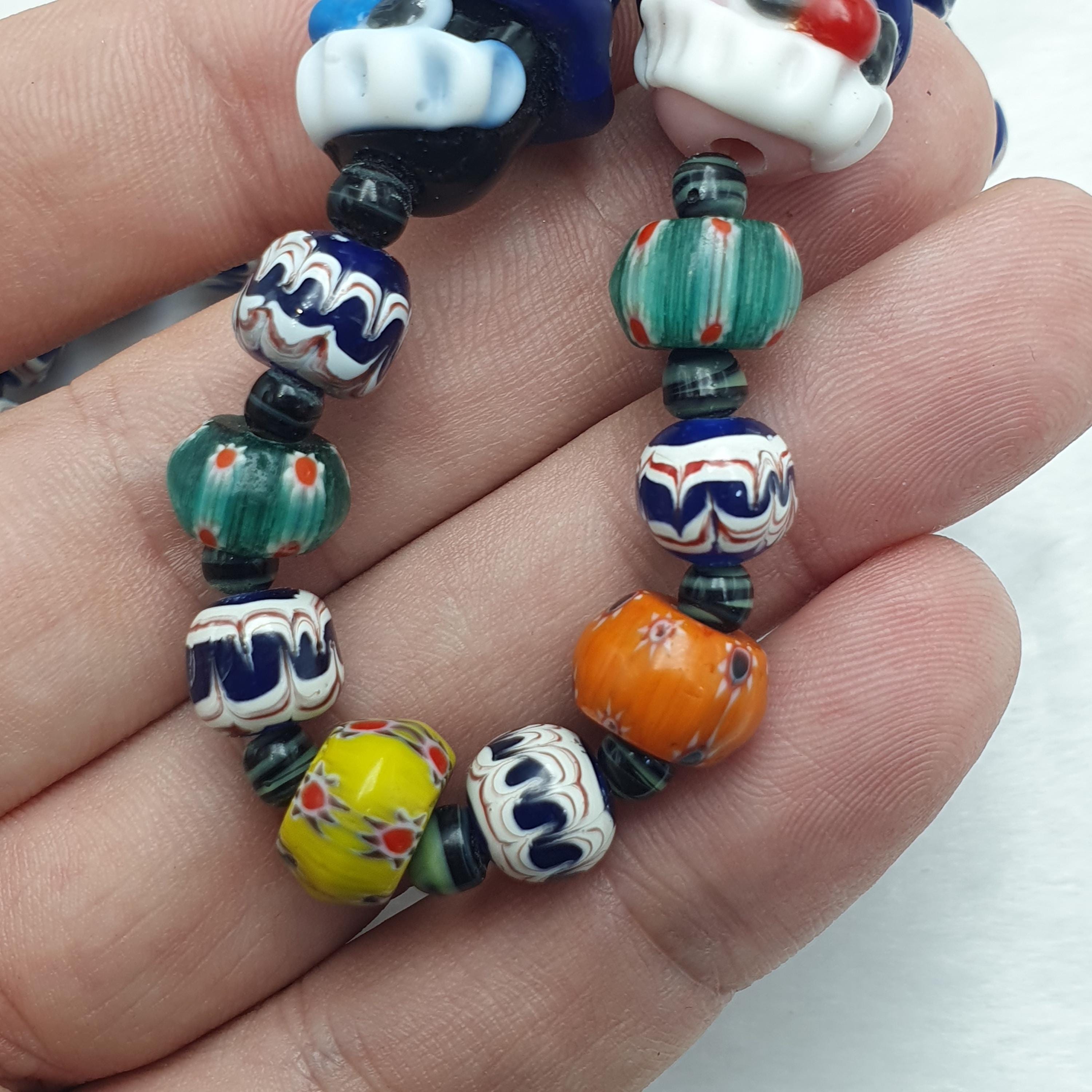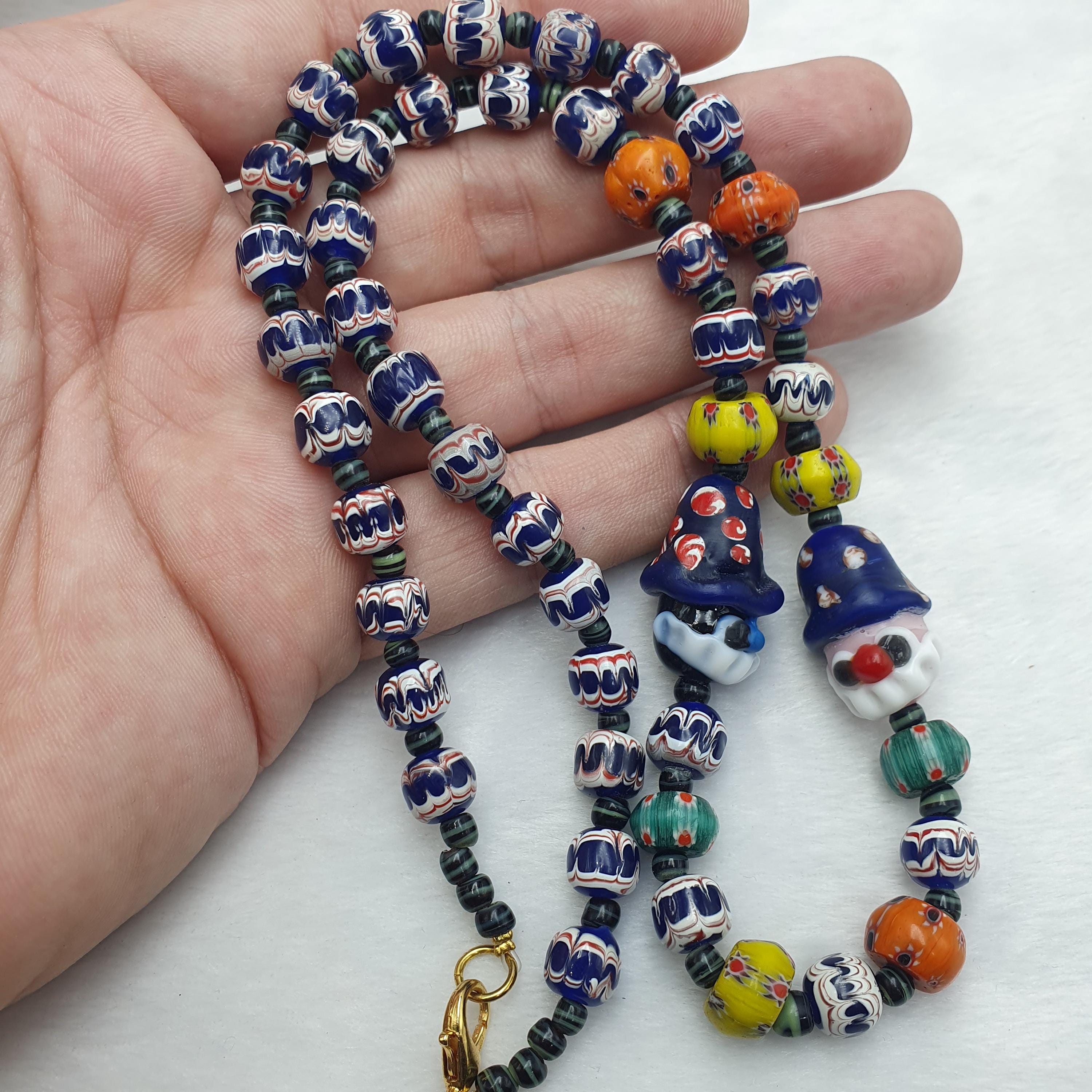 Designed to capture attention and ignite conversations, each bead is carefully handmade, showcasing intricate patterns and bold colors. The playful clown face beads add a touch of fun and personality, making this necklace an ideal gift for her or him, or a special addition to your vintage jewelry collection.