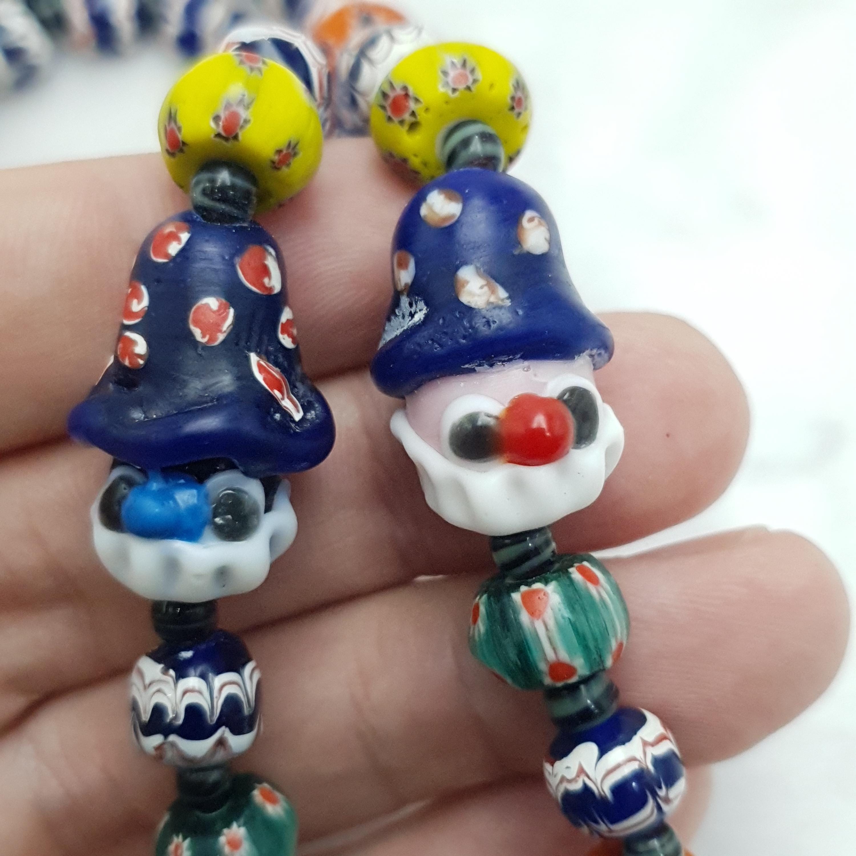 - Playful glass clown face beads for a whimsical touch