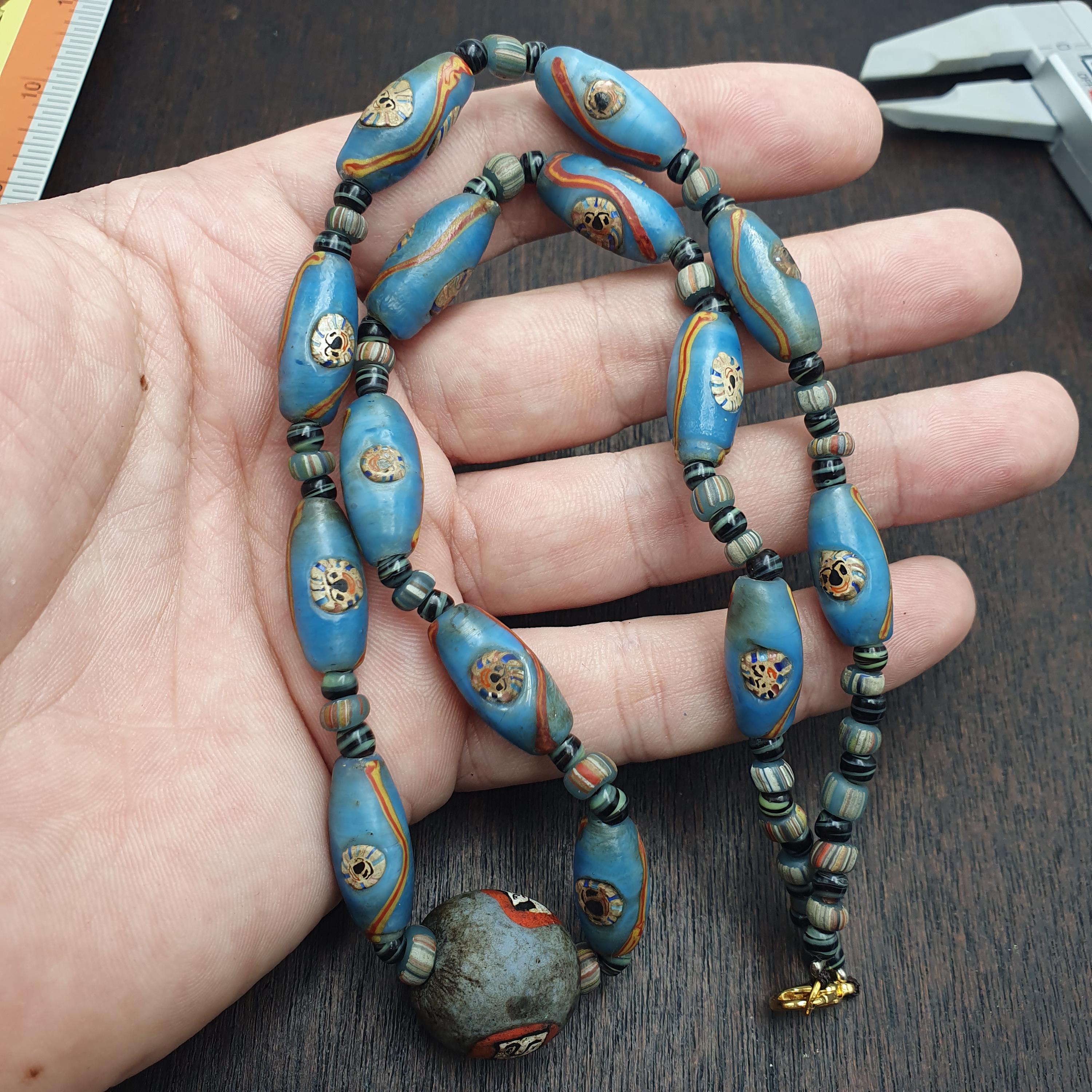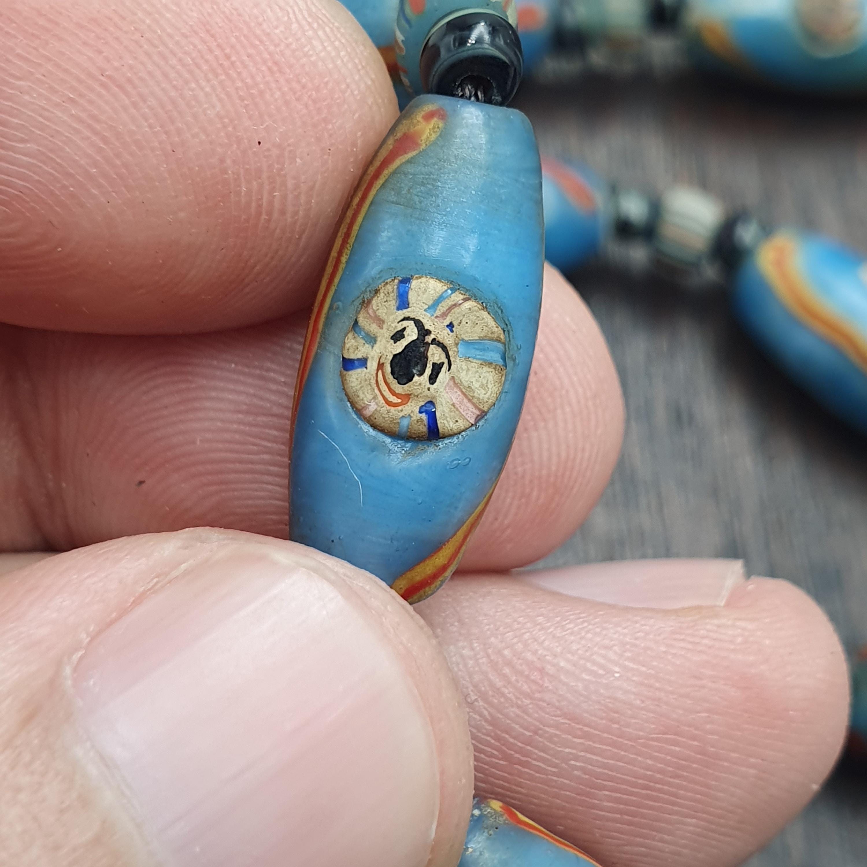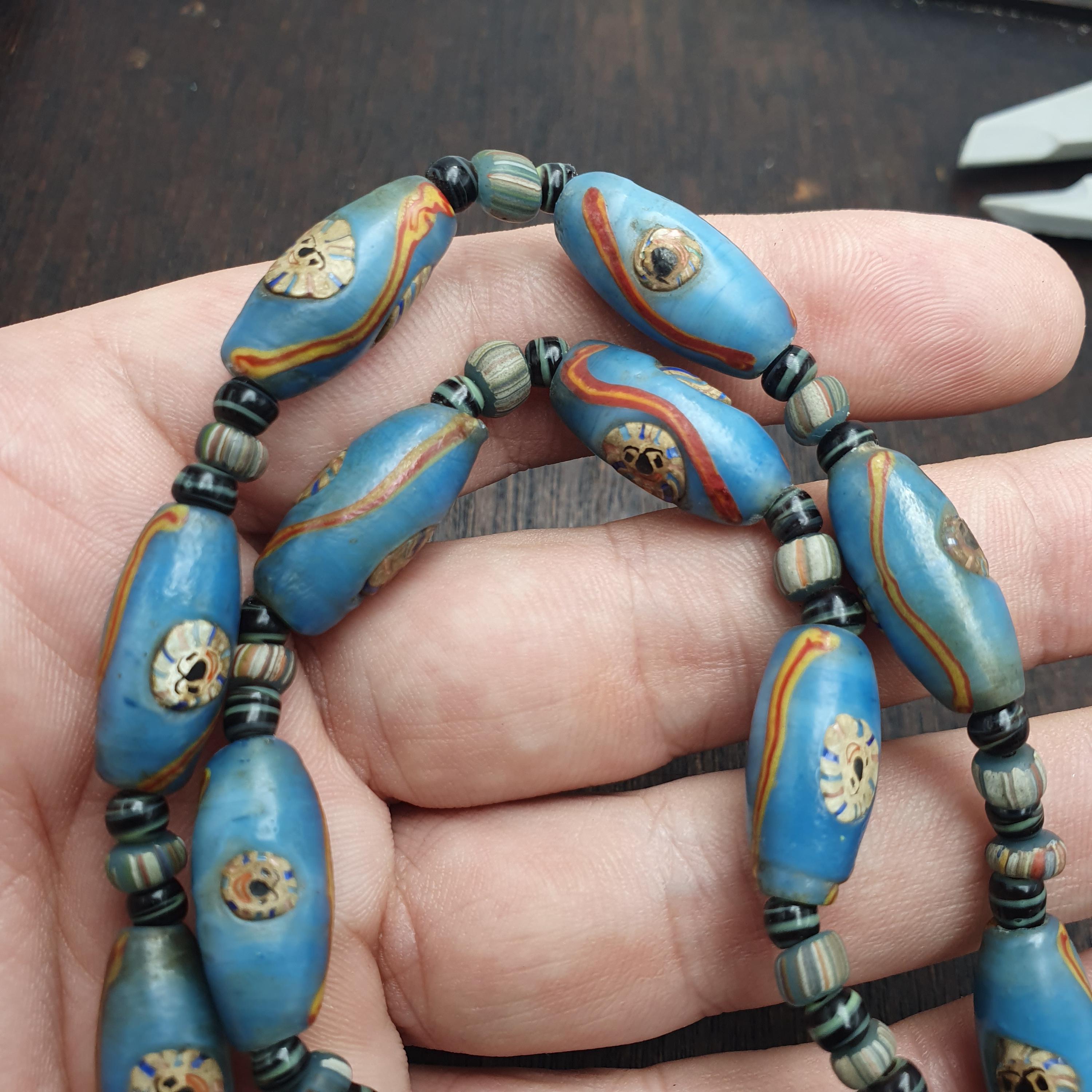- Striking blue Millefiori mosaic glass trade beads