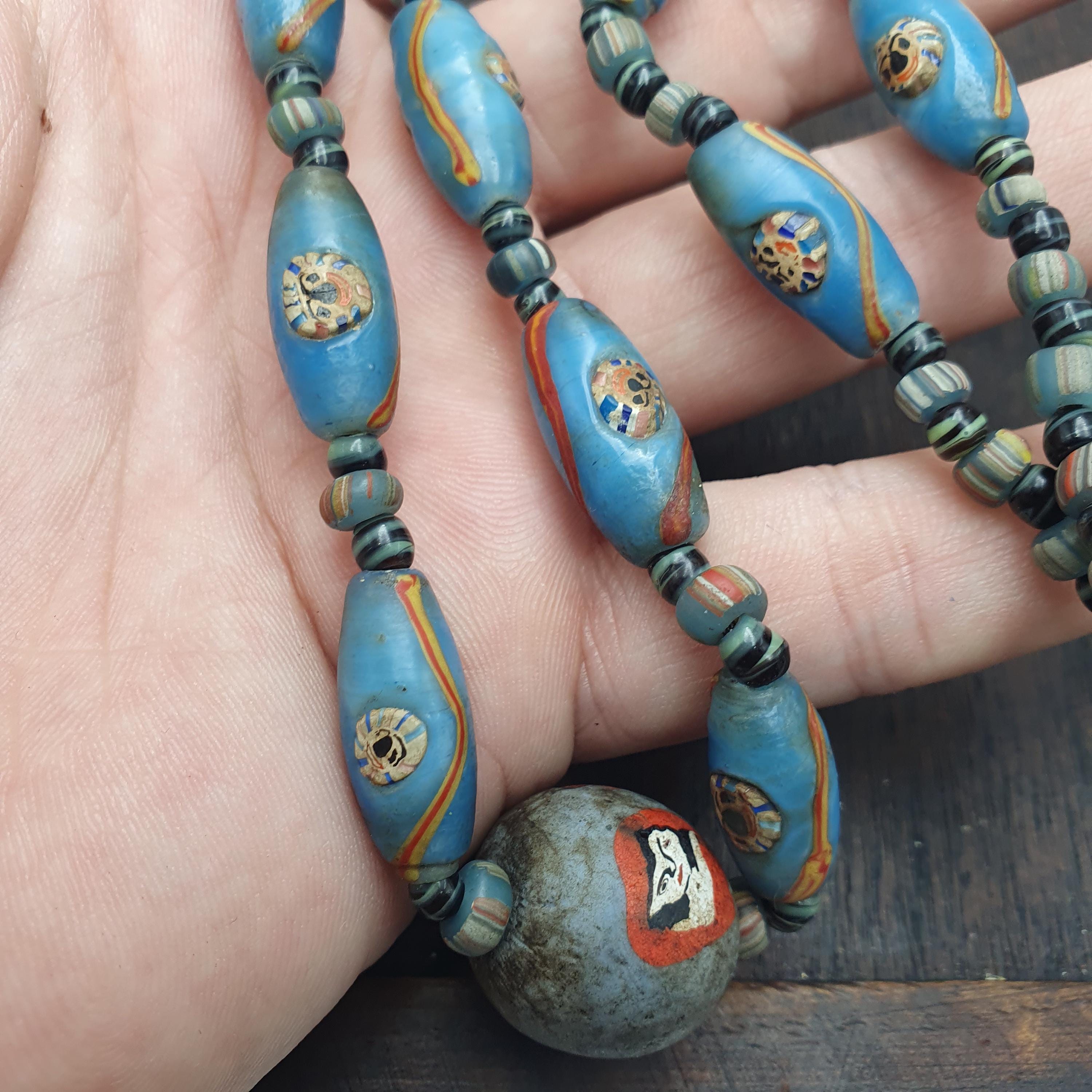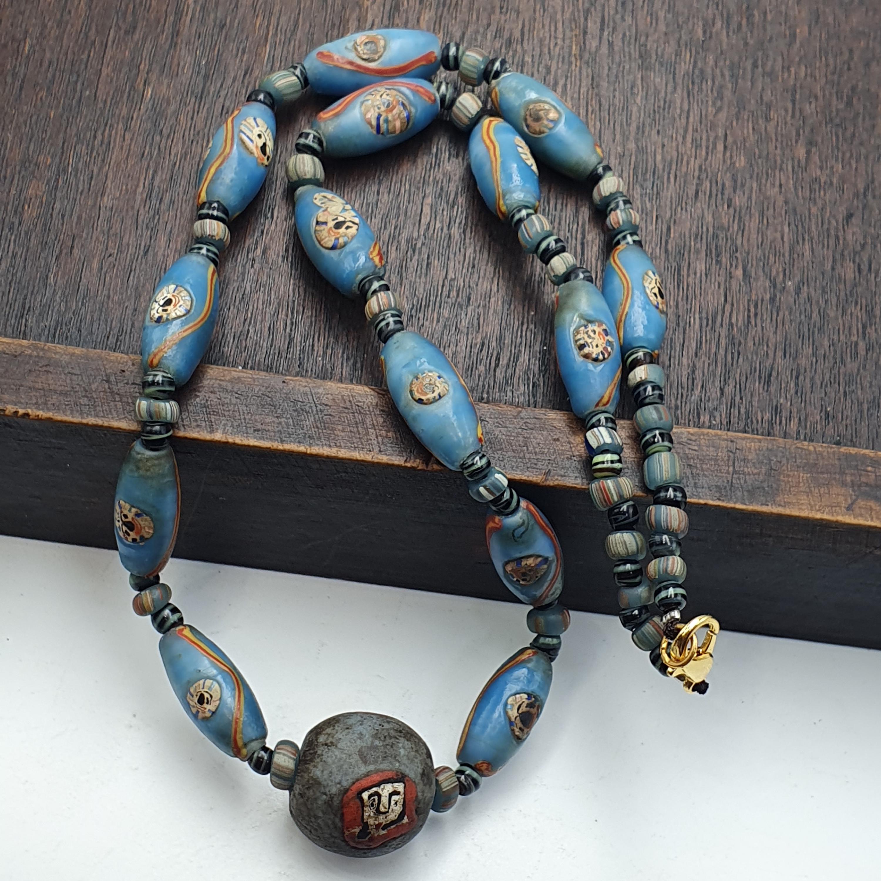 Add a touch of artistic elegance and history to your jewelry collection with this one-of-a-kind Venetian style face bead necklace. Perfect for gifting or as a personal keepsake, it embodies the beauty of handmade, vintage-inspired jewelry.