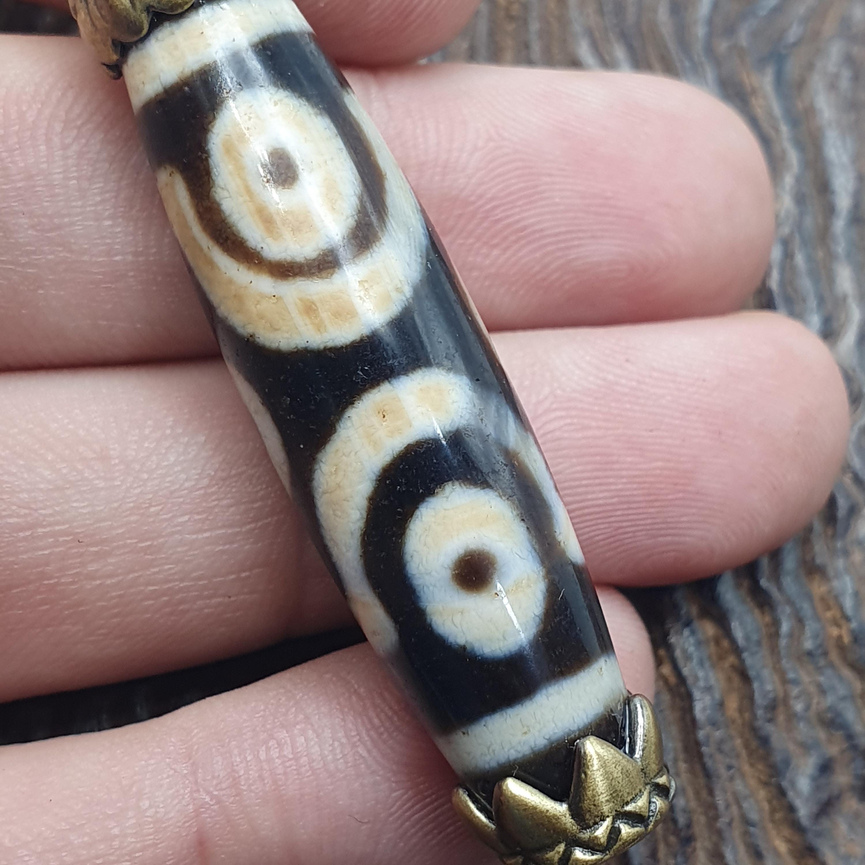 - Authentic Tibetan Dzi bead with unique six-eye pattern