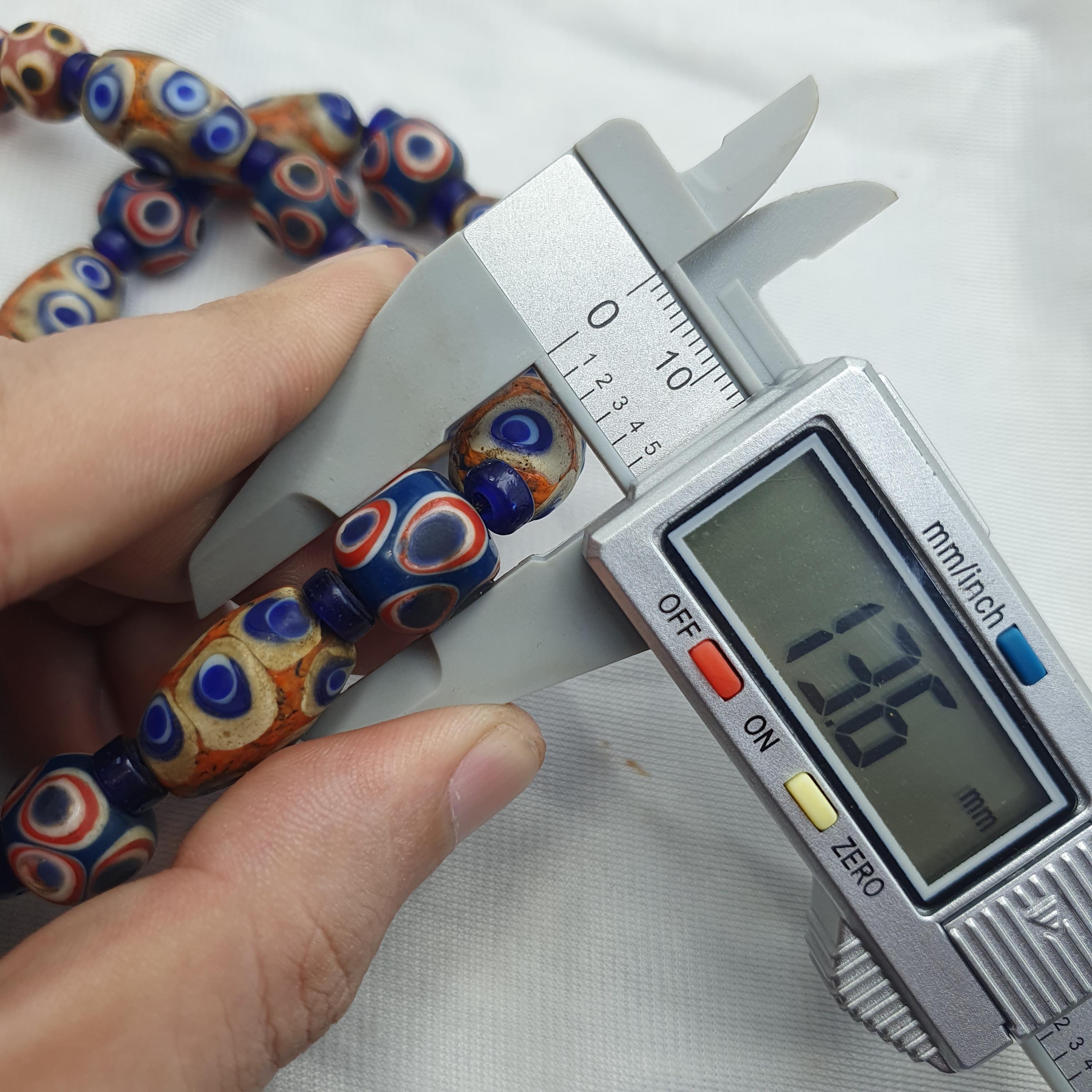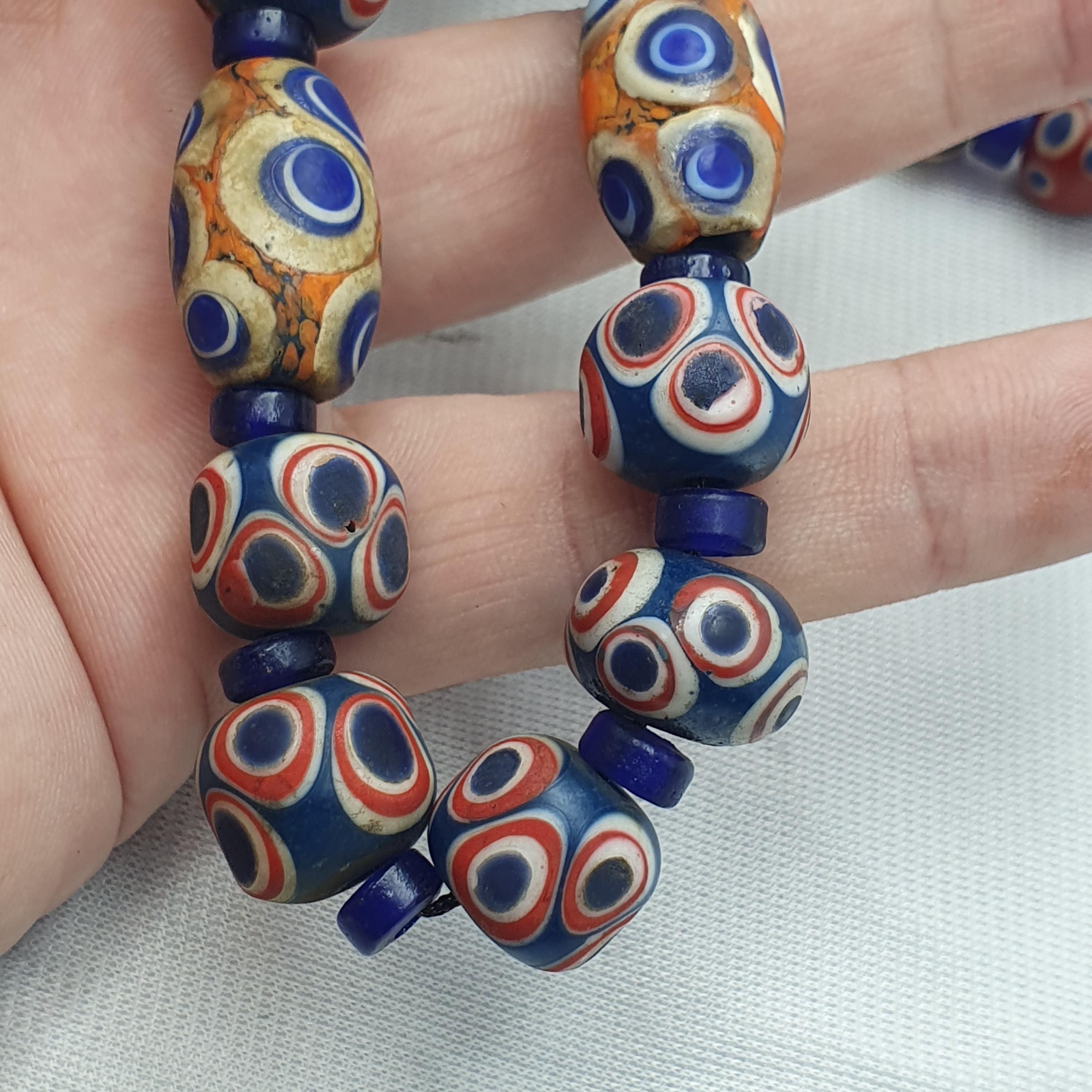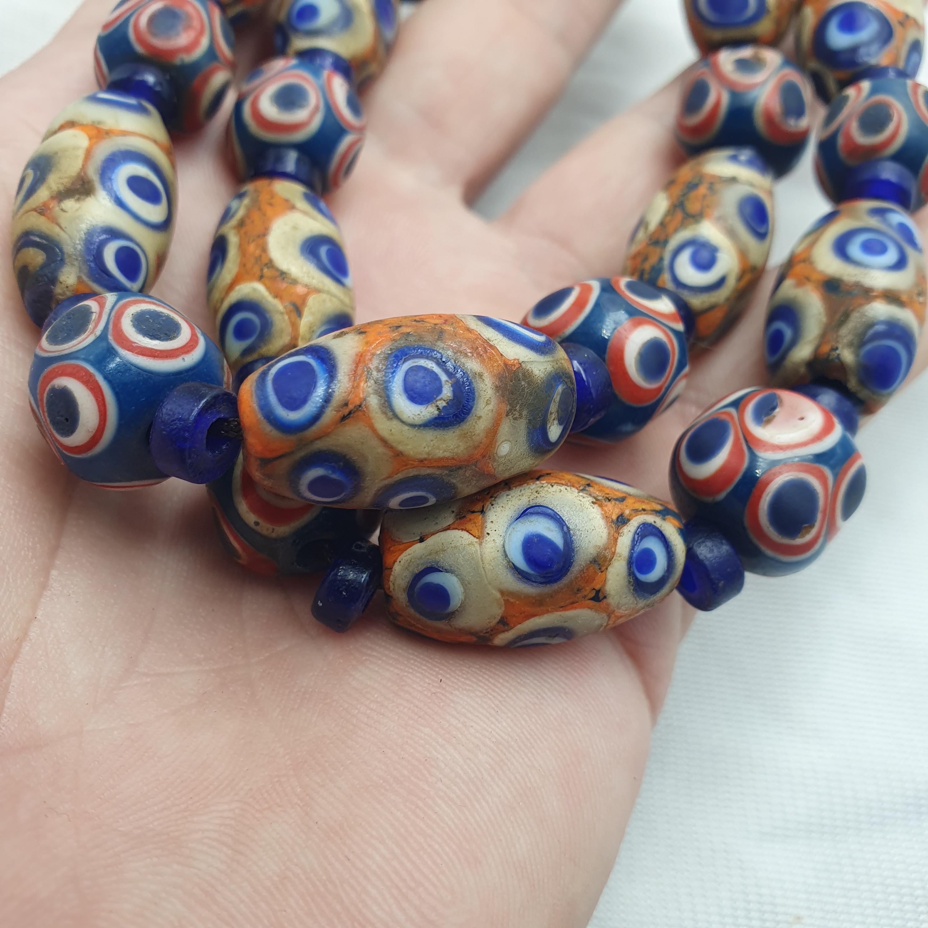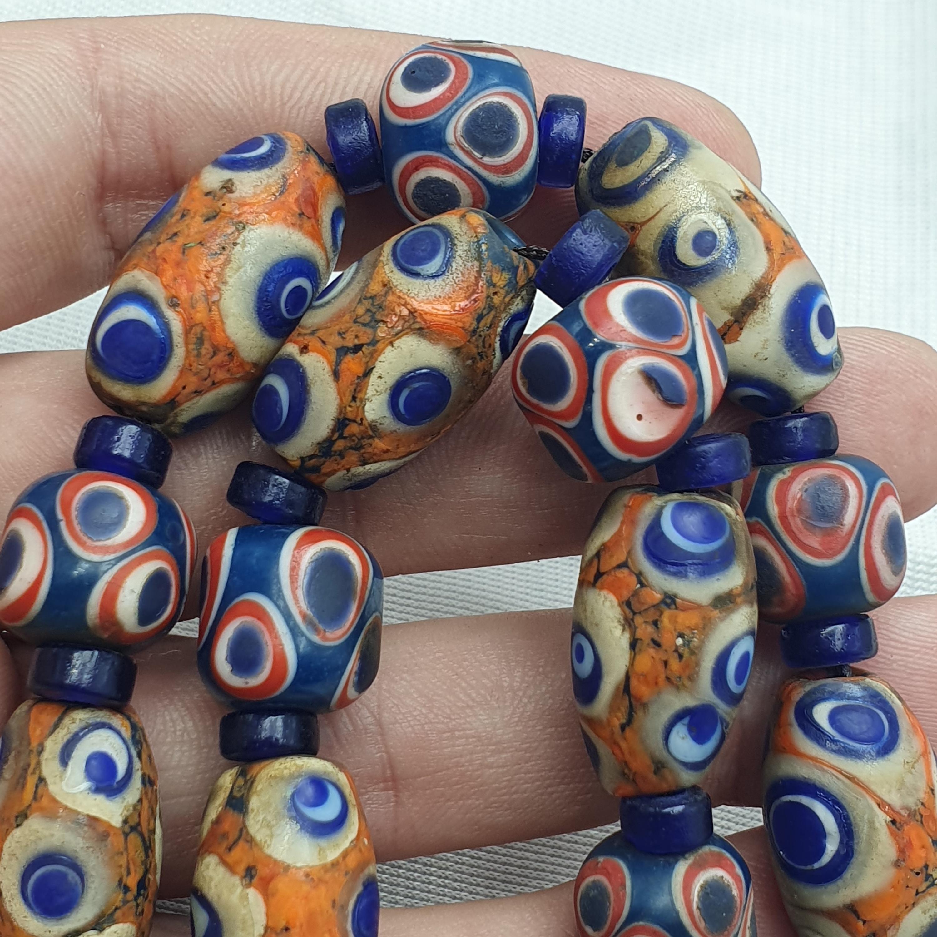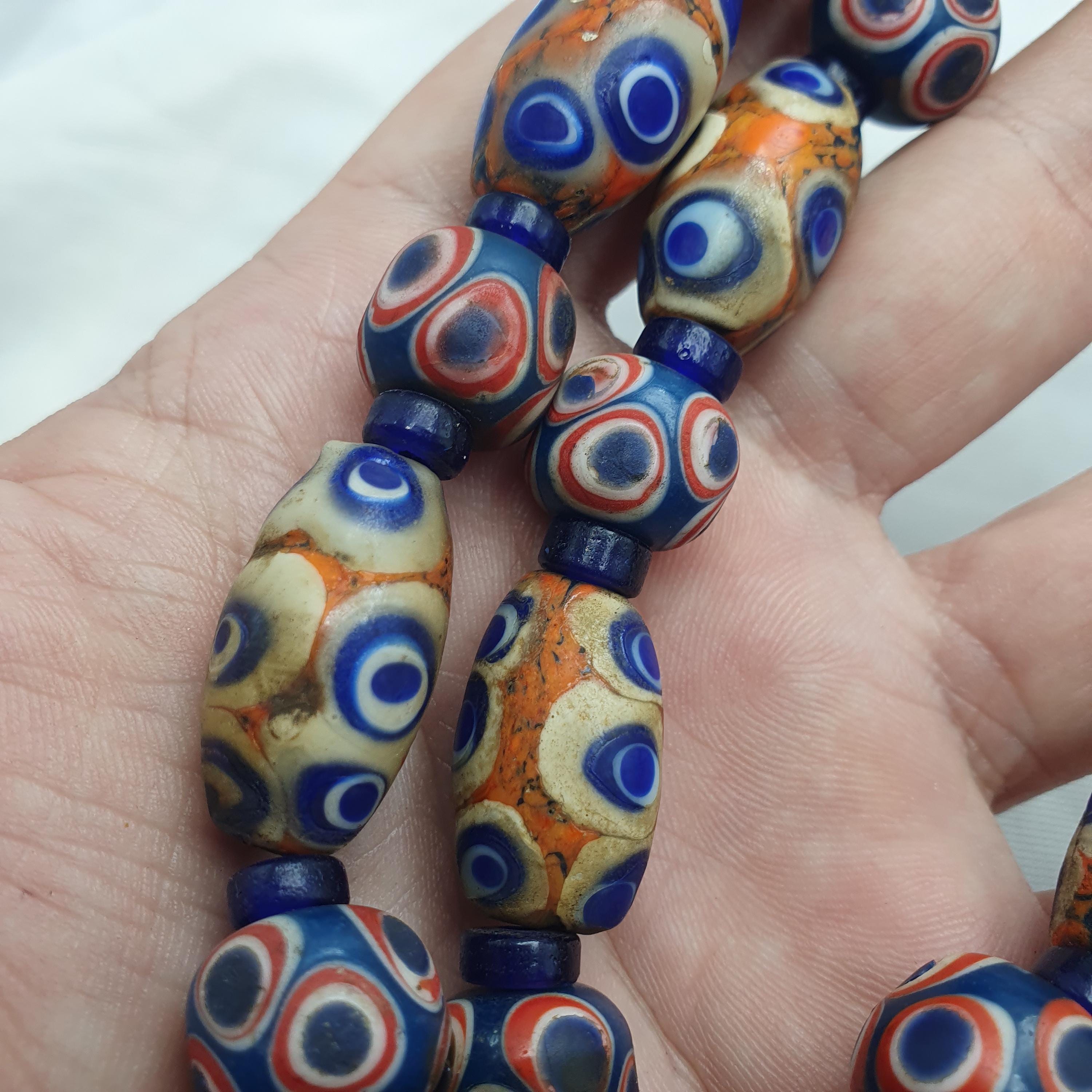 Discover the timeless elegance of our Venetian Style Hundred Eyes Skunk Beads Necklace, a stunning statement piece measuring 22 inches long with 10mm beads that beautifully showcase intricate craftsmanship. Crafted from vibrant glass, this vintage-inspired necklace features distinctive black skunk trade beads, also known as hundred eyes skunk beads, renowned for their unique dot pattern resembling tiny eyes — a true collector’s delight!