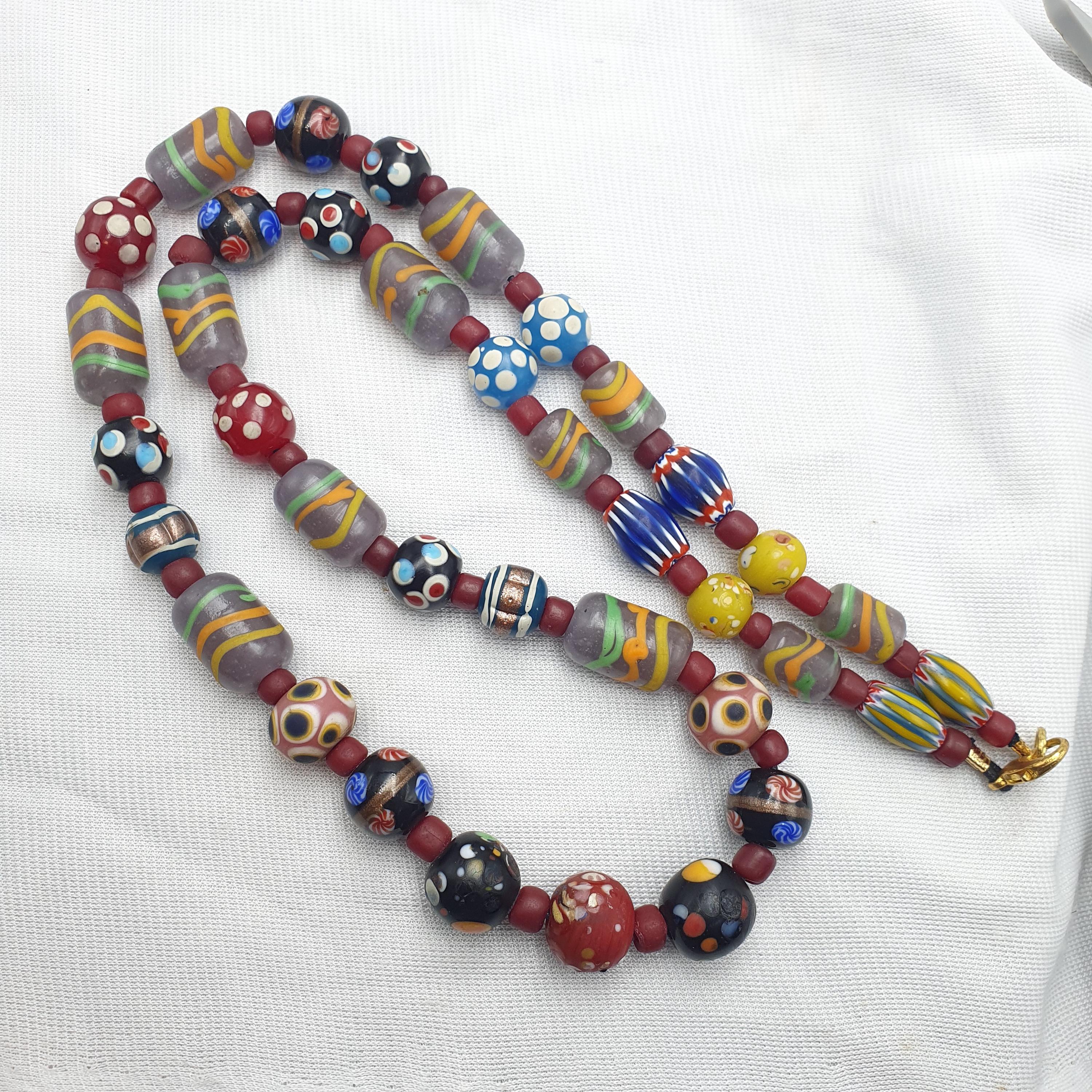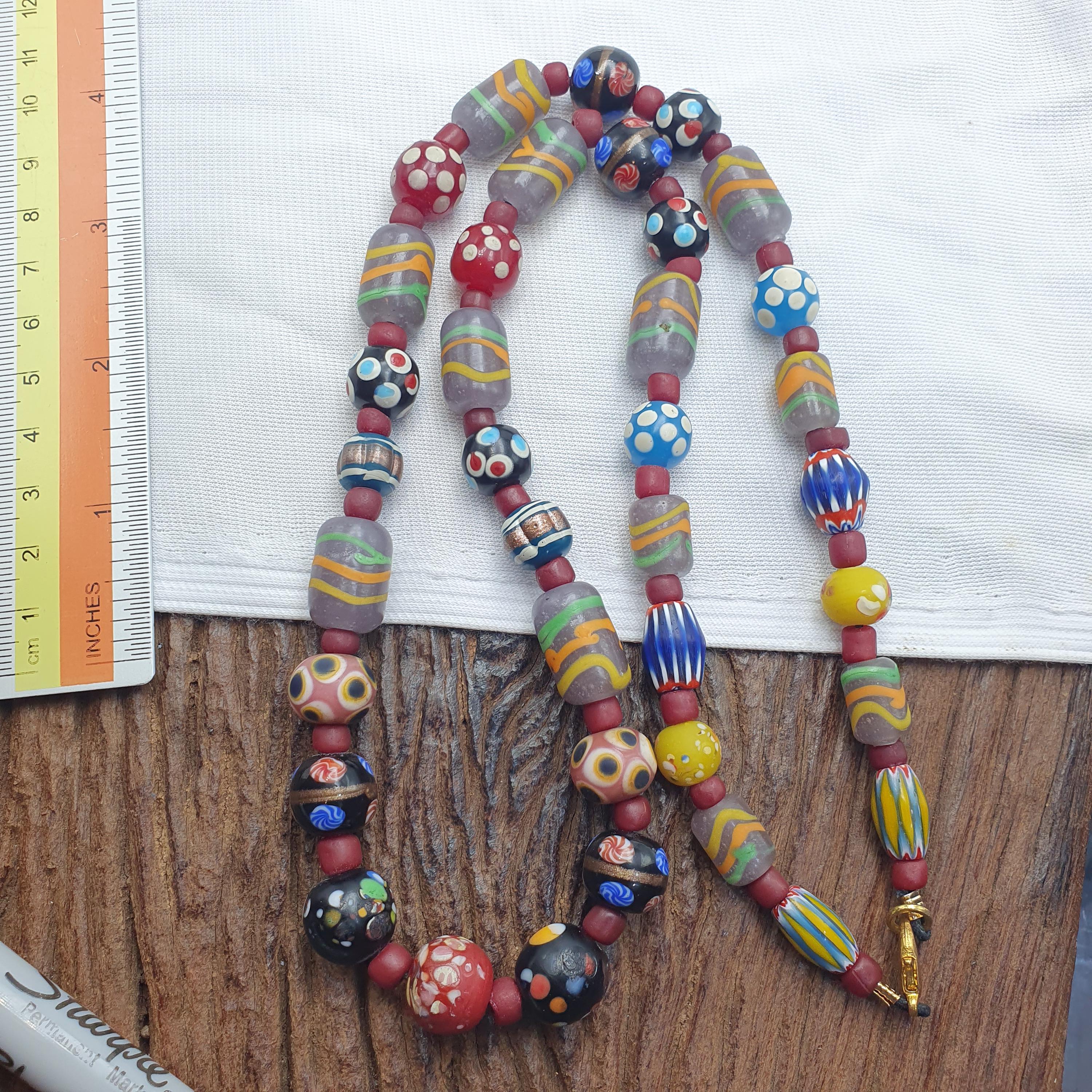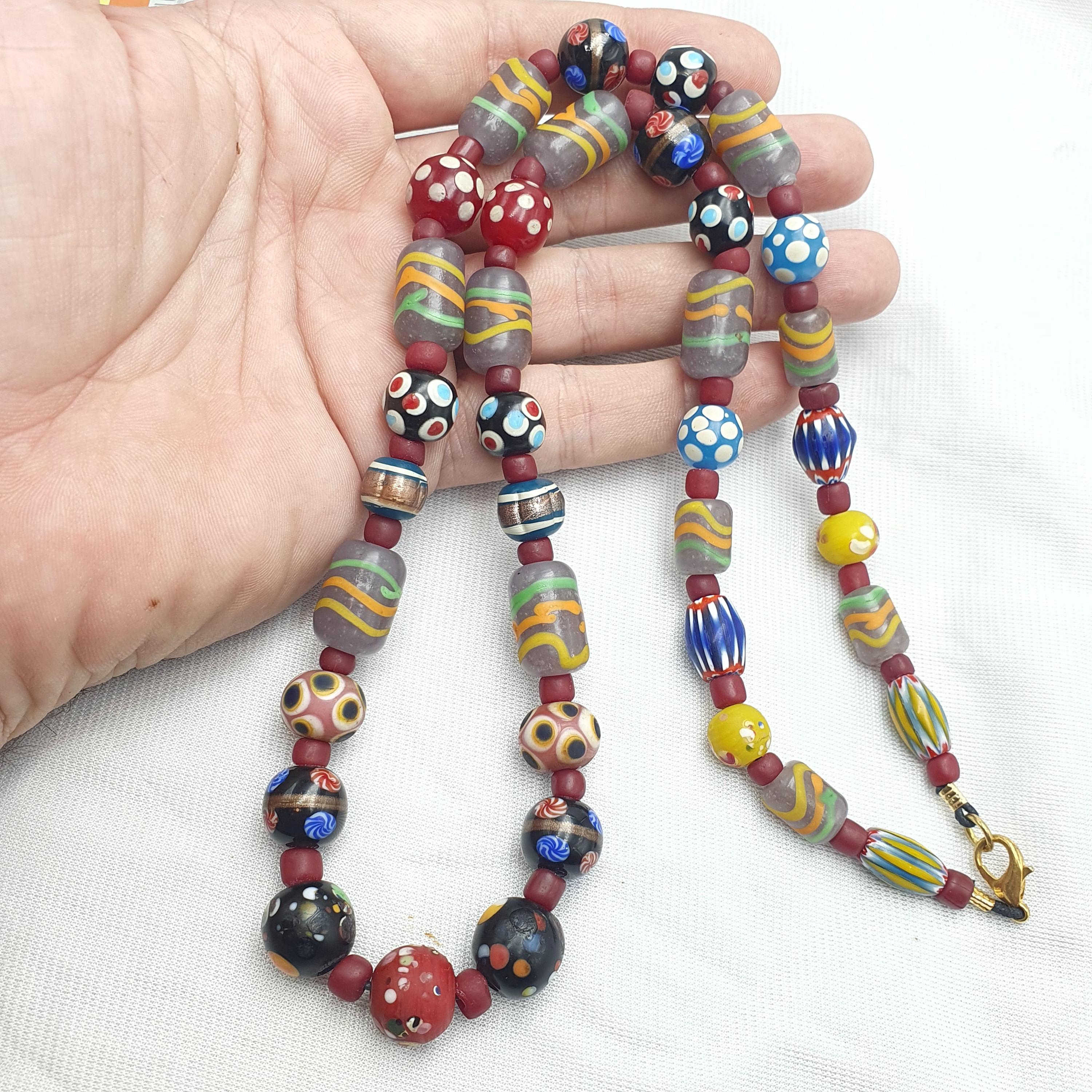 Add a touch of vintage elegance and bold personality to your jewelry collection today with this one-of-a-kind Venetian style bead necklace!