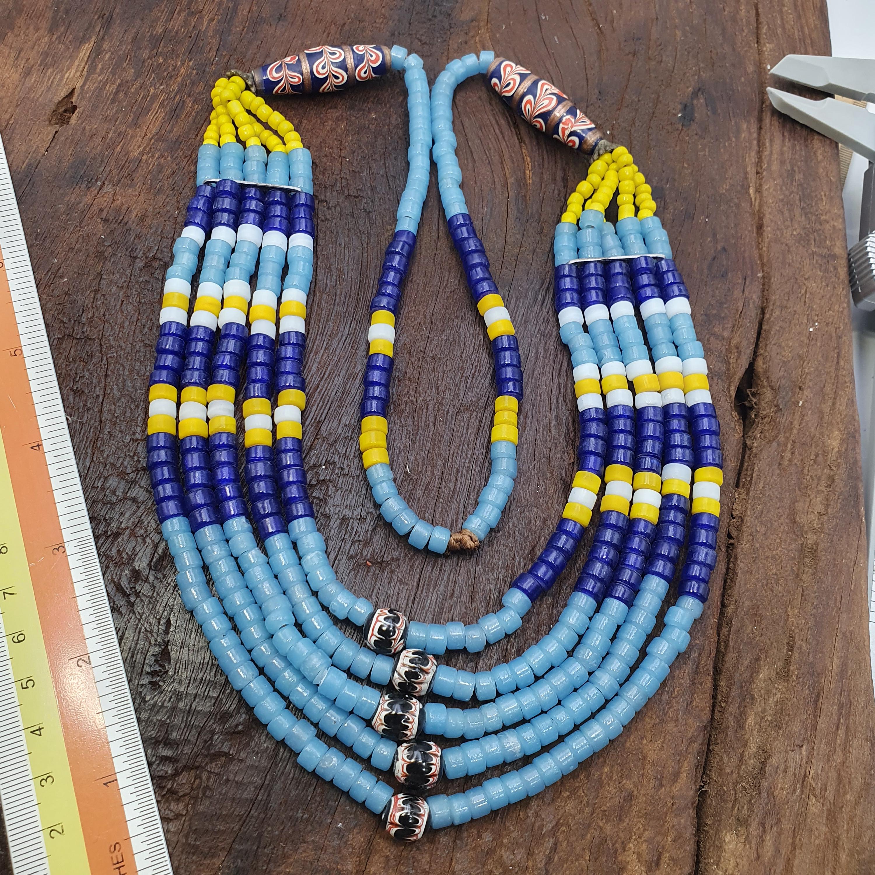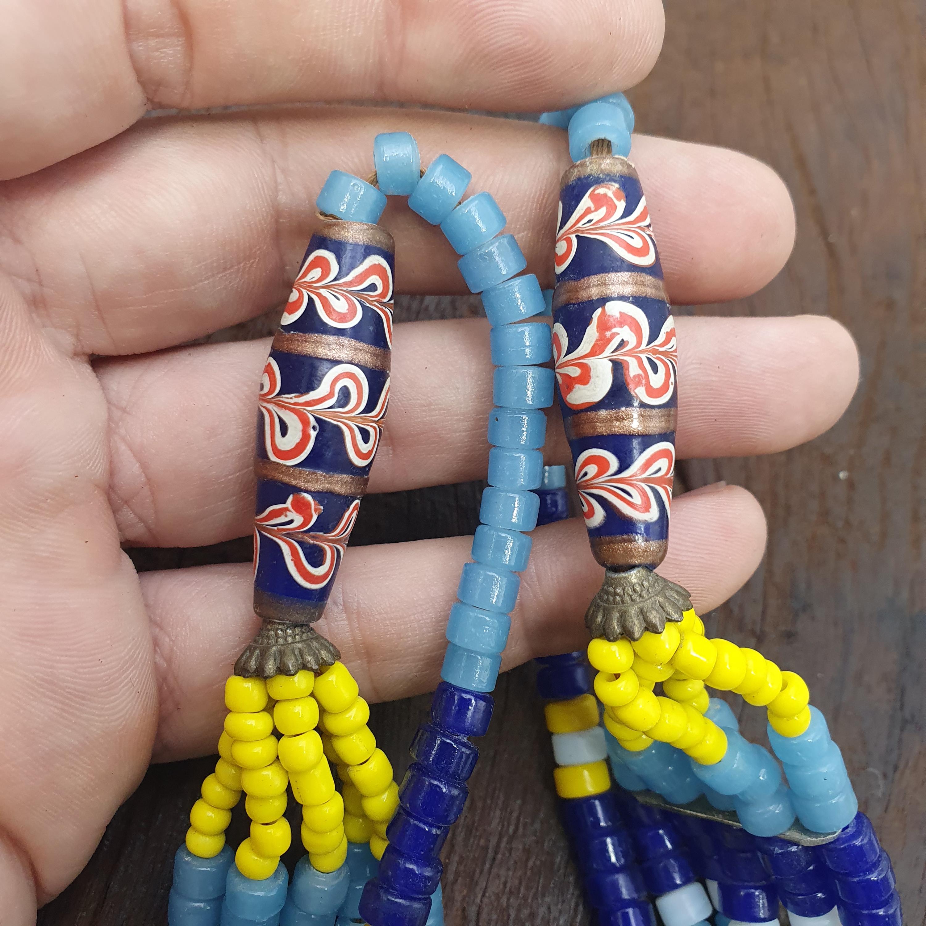 This vintage jewelry piece is not only a beautiful accessory but also a piece of art that embodies cultural history. It ships prepaid with tariffs included for customers in the United States, ensuring a hassle-free shopping experience. Embrace the retro allure and ethnic inspiration of this unique chevron beads necklace—perfect for elevating your boho wardrobe or adding a touch of timeless elegance to any outfit.