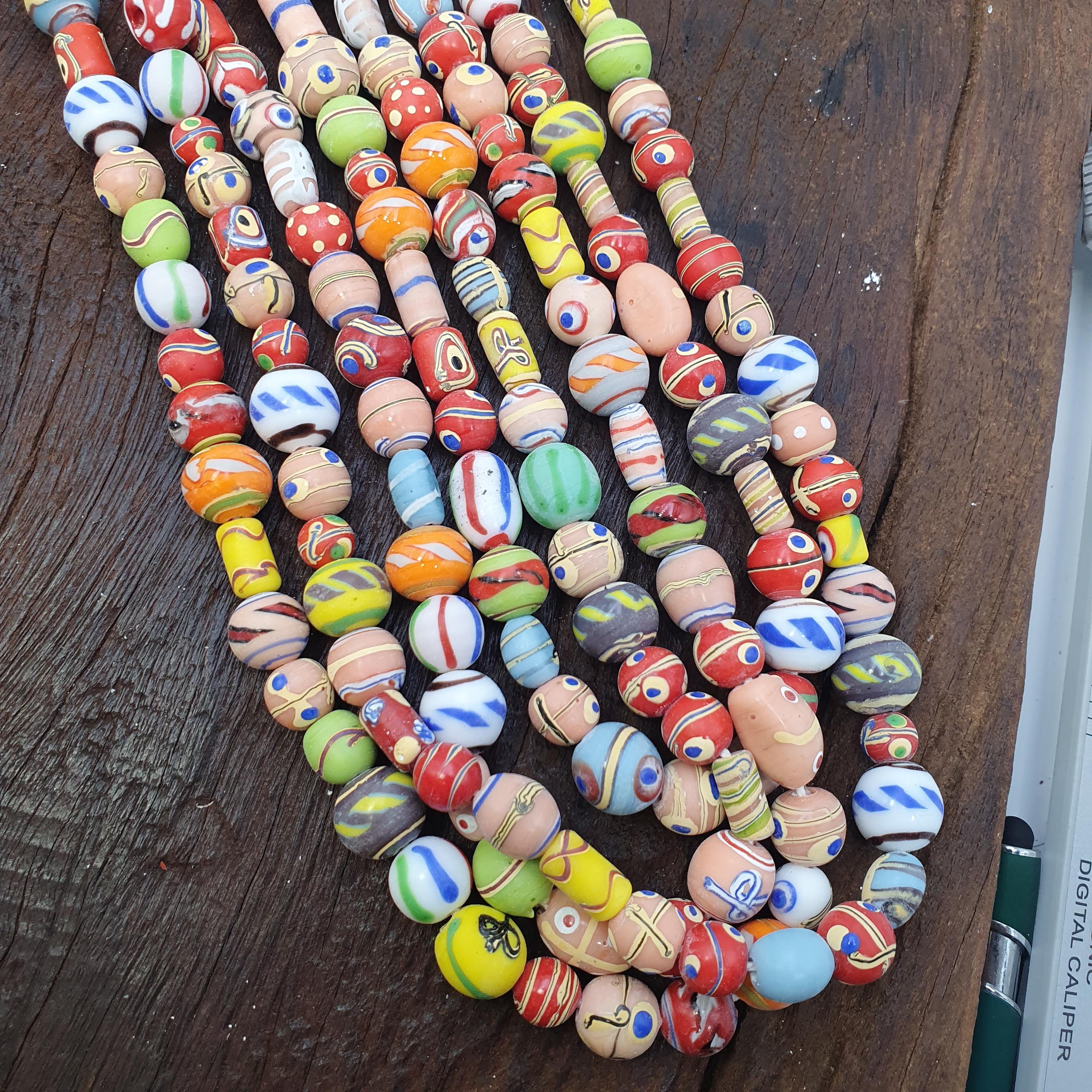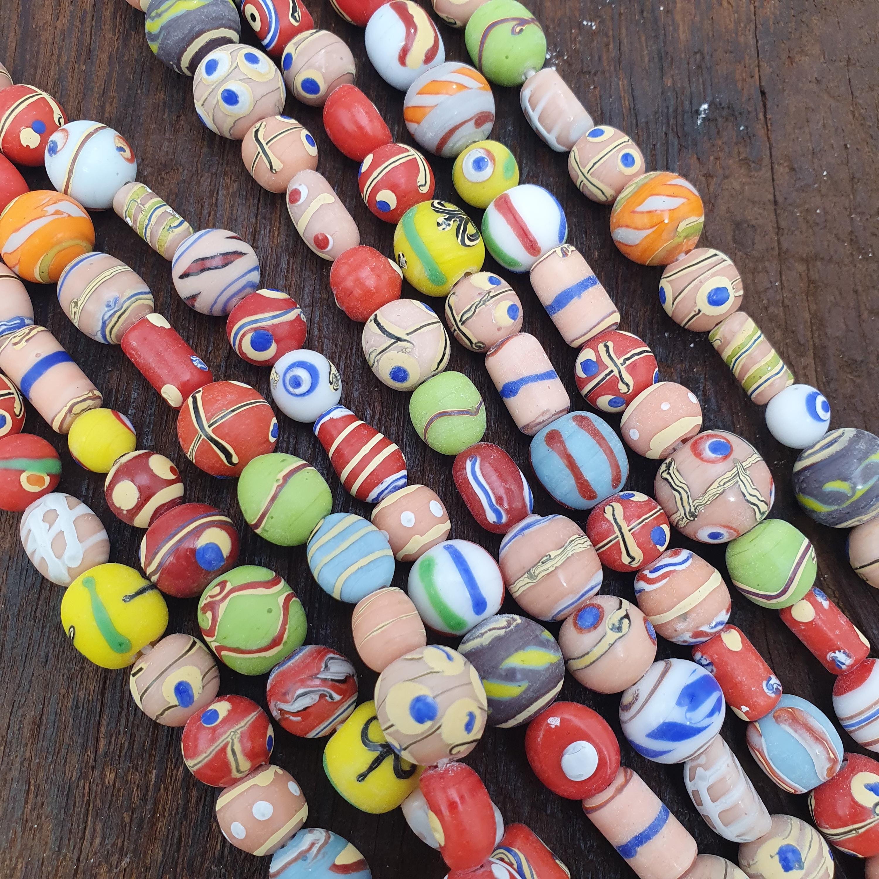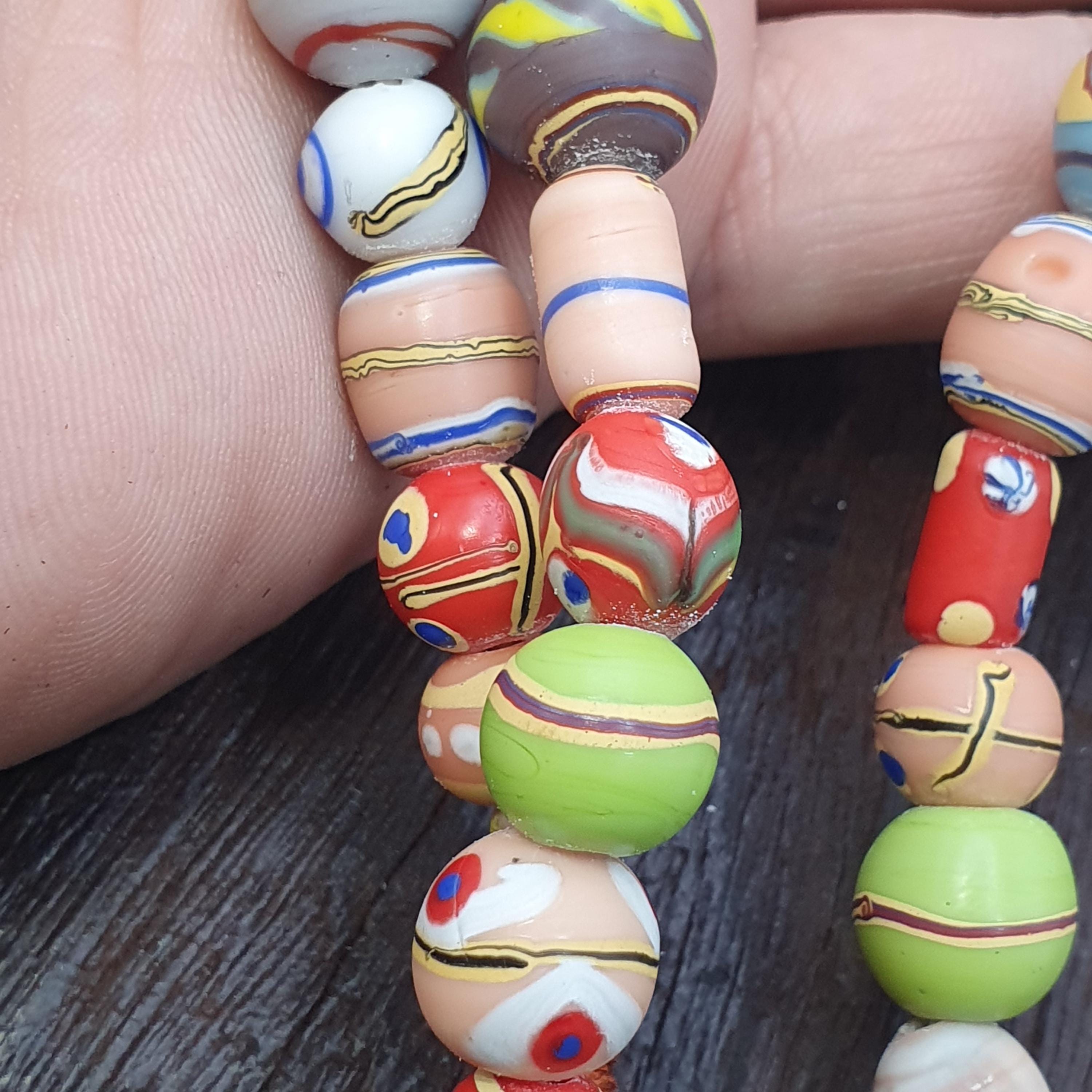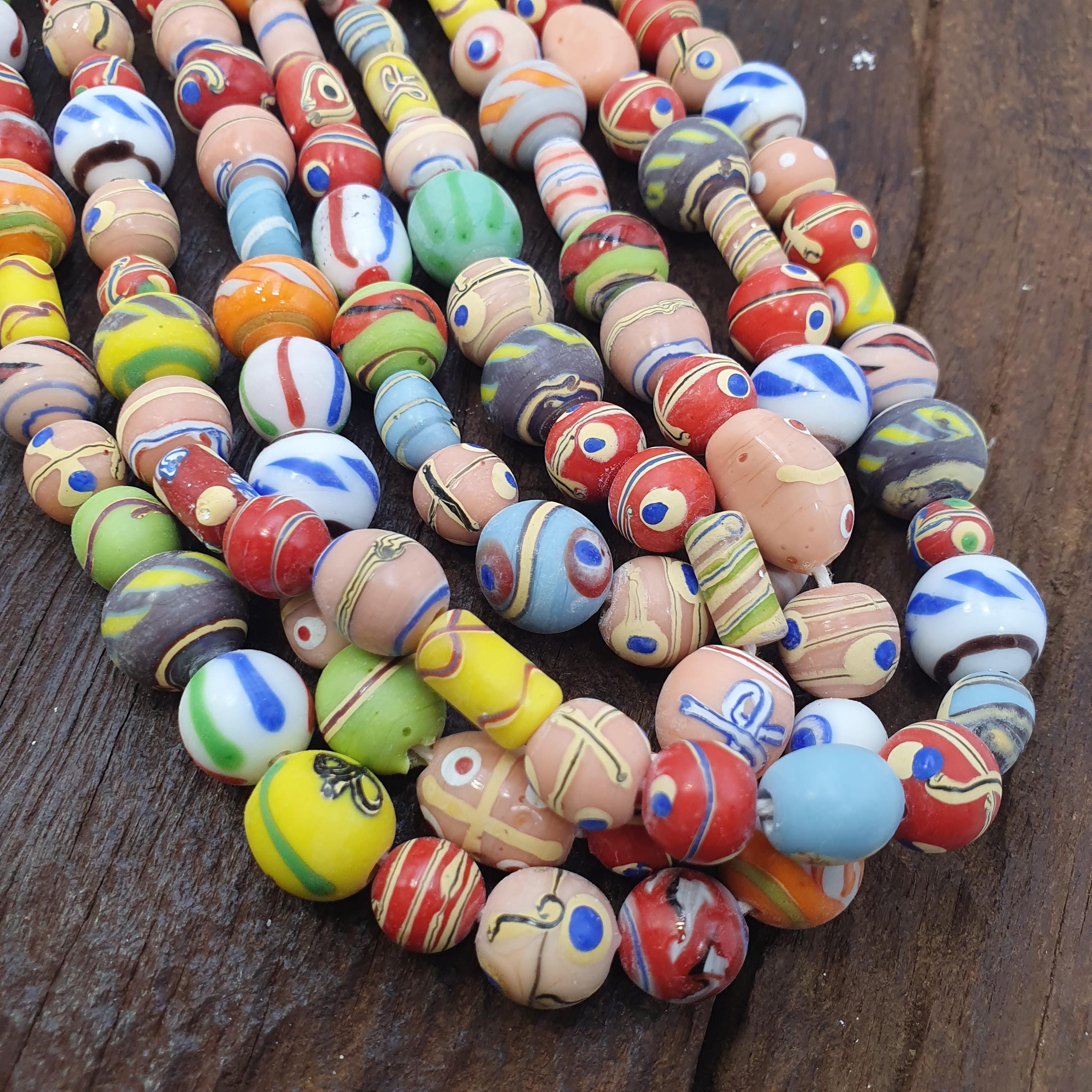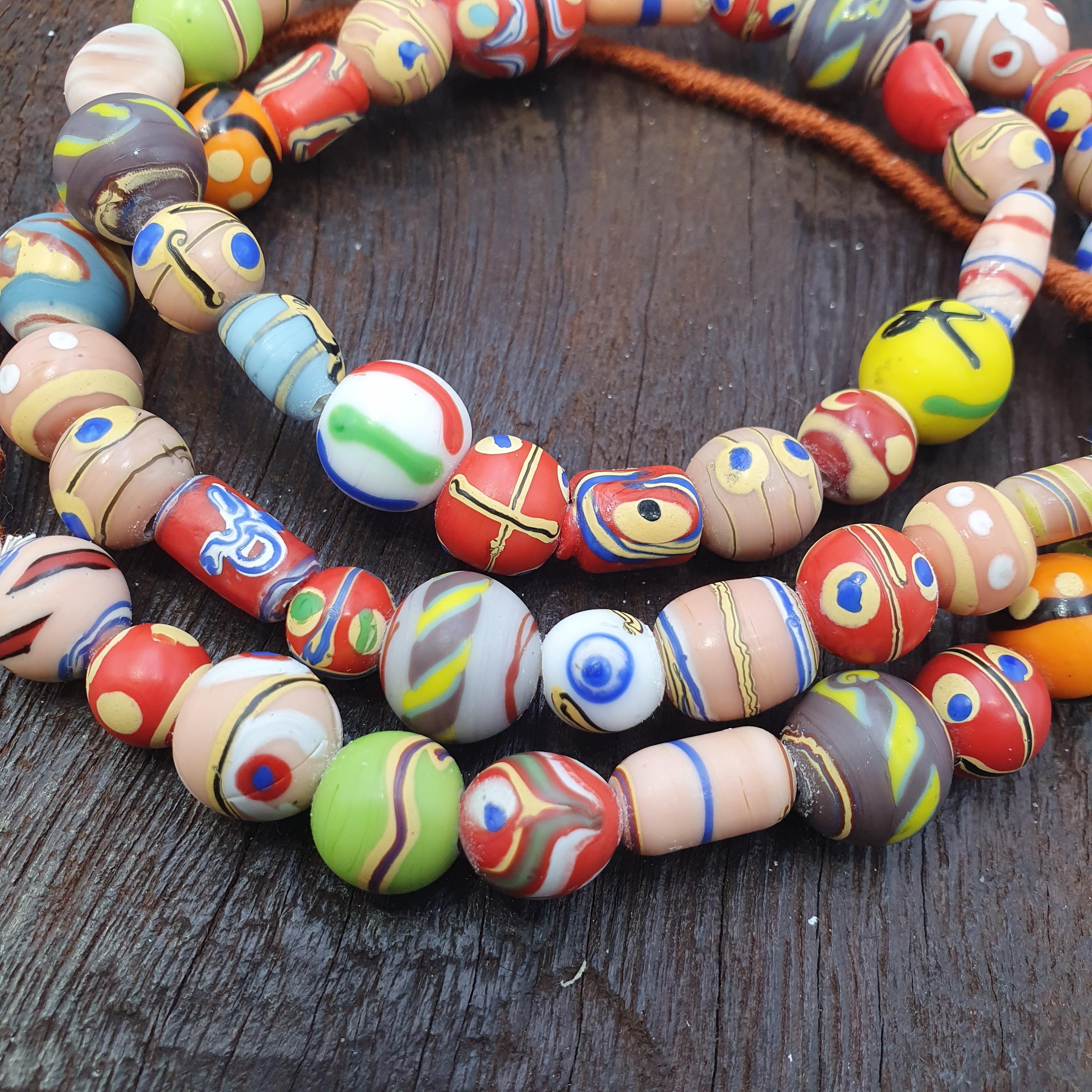 - Handcrafted vintage beads with vibrant millefiori patterns