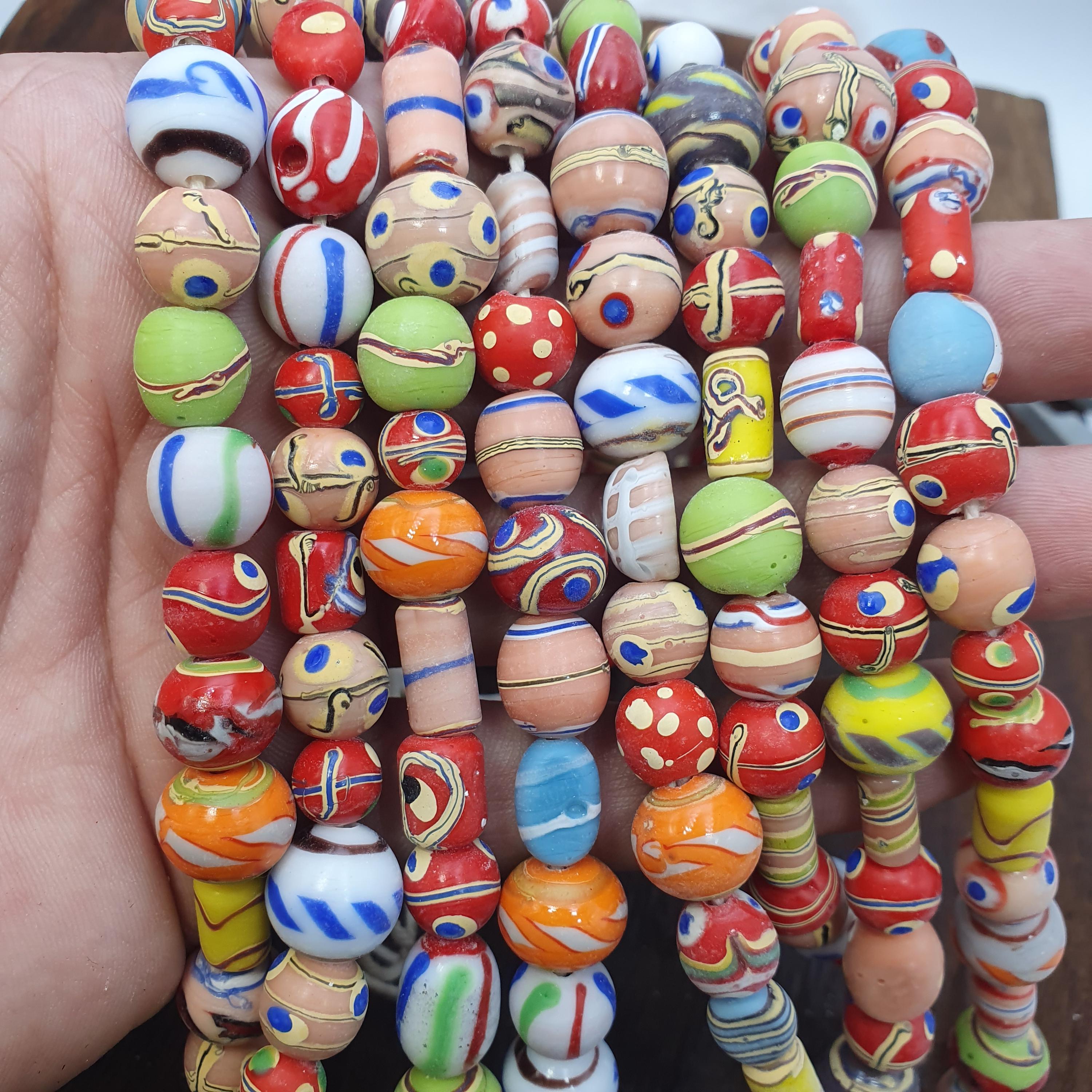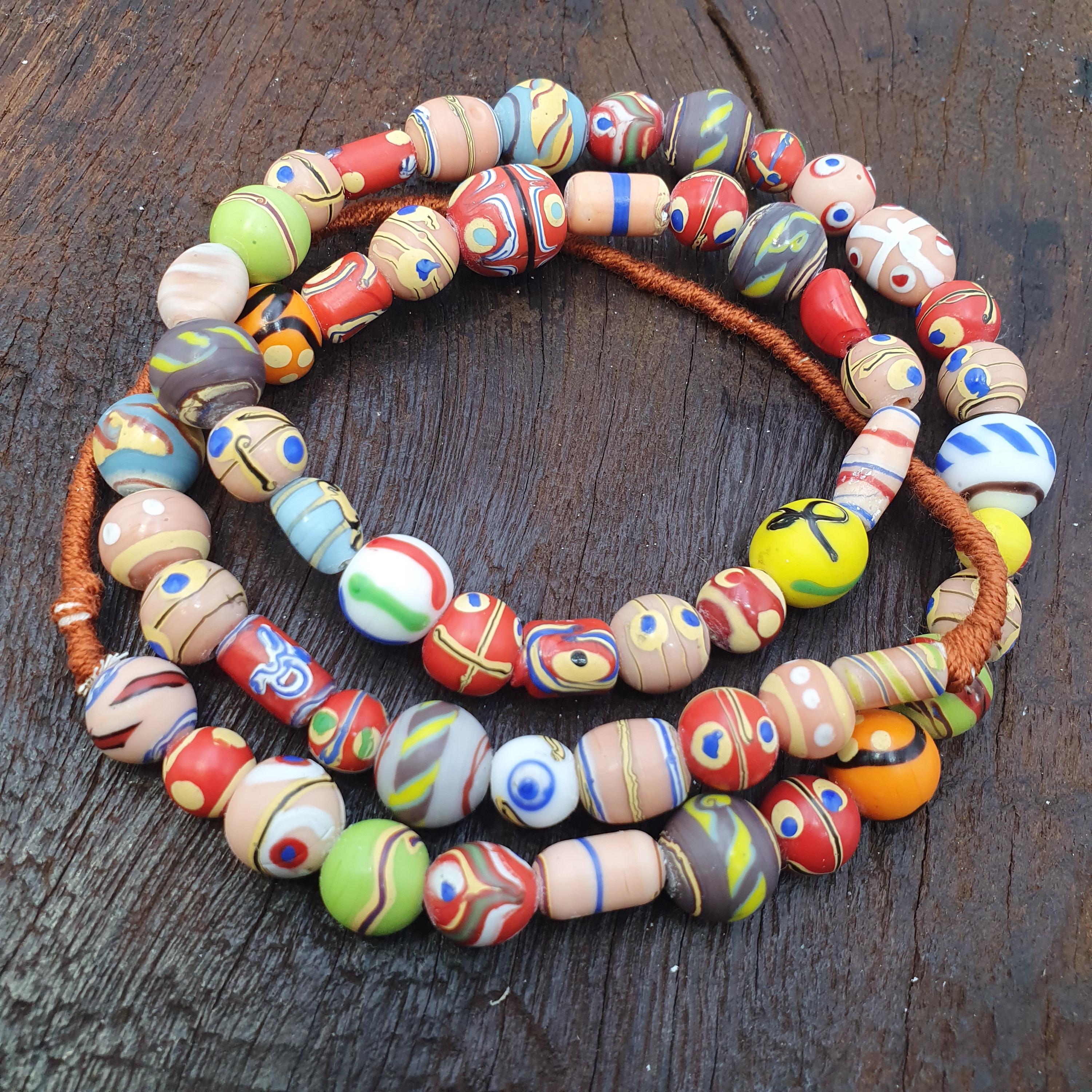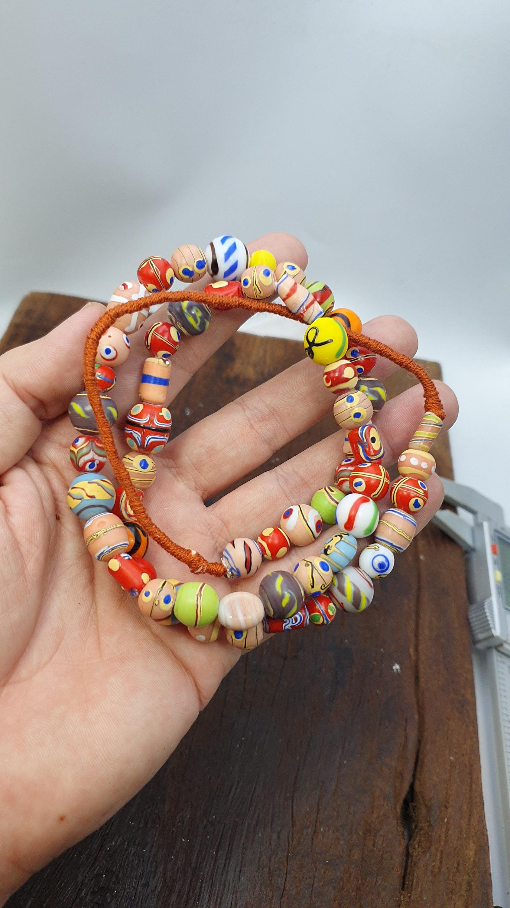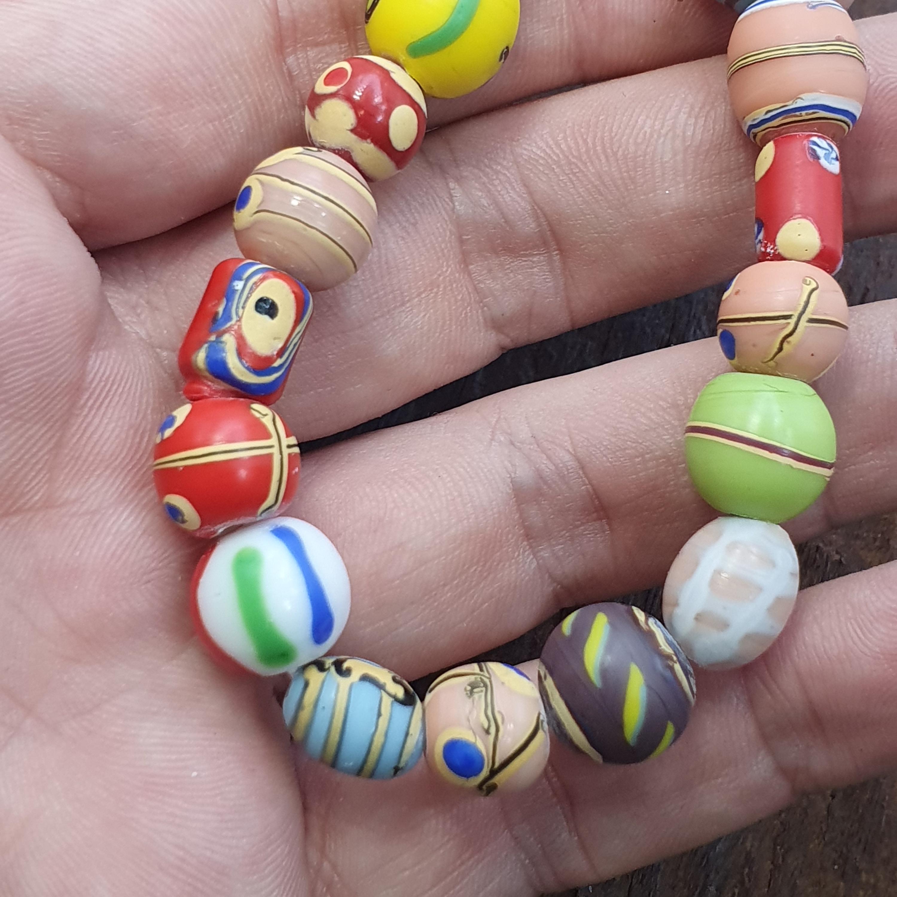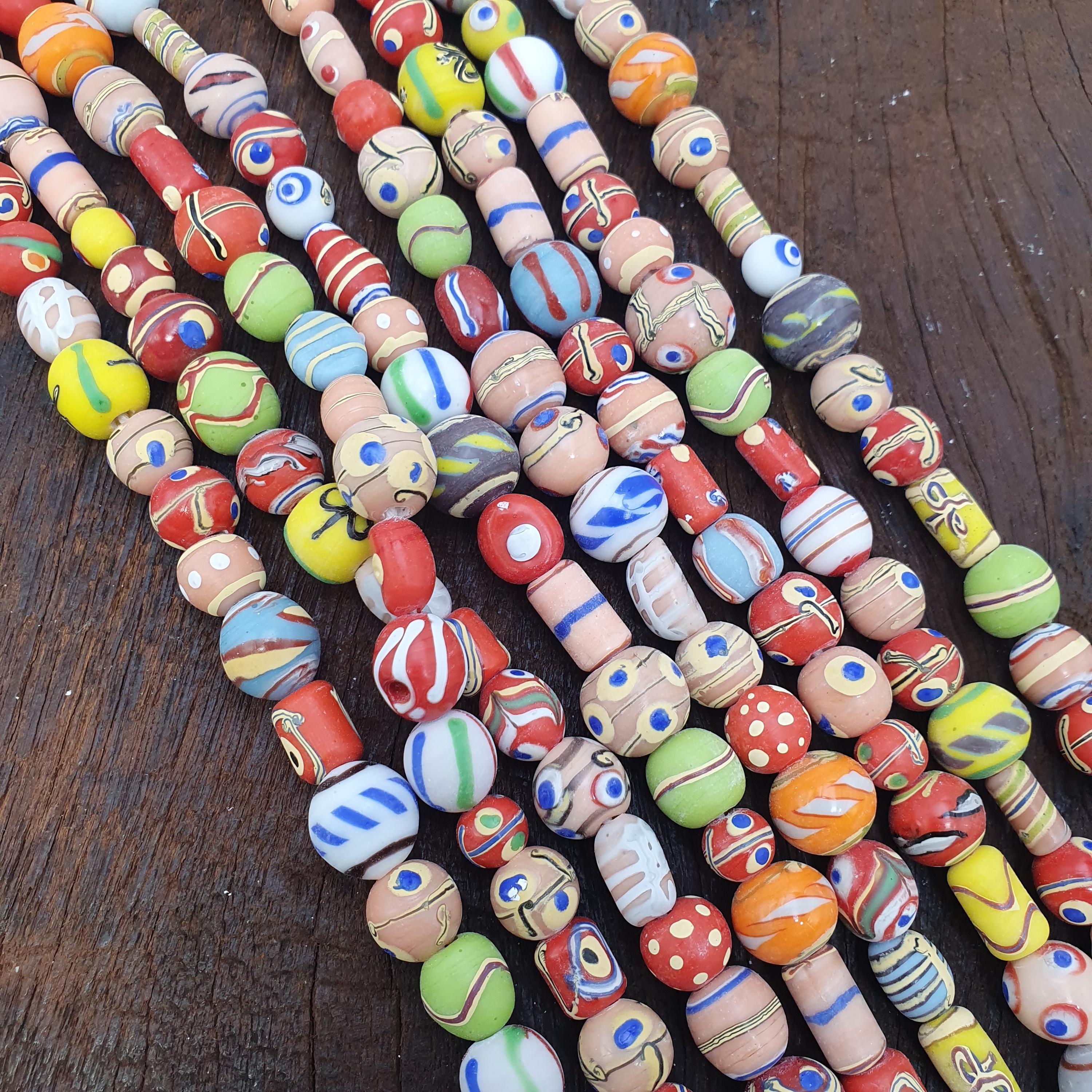 - Handcrafted vintage beads with vibrant millefiori patterns