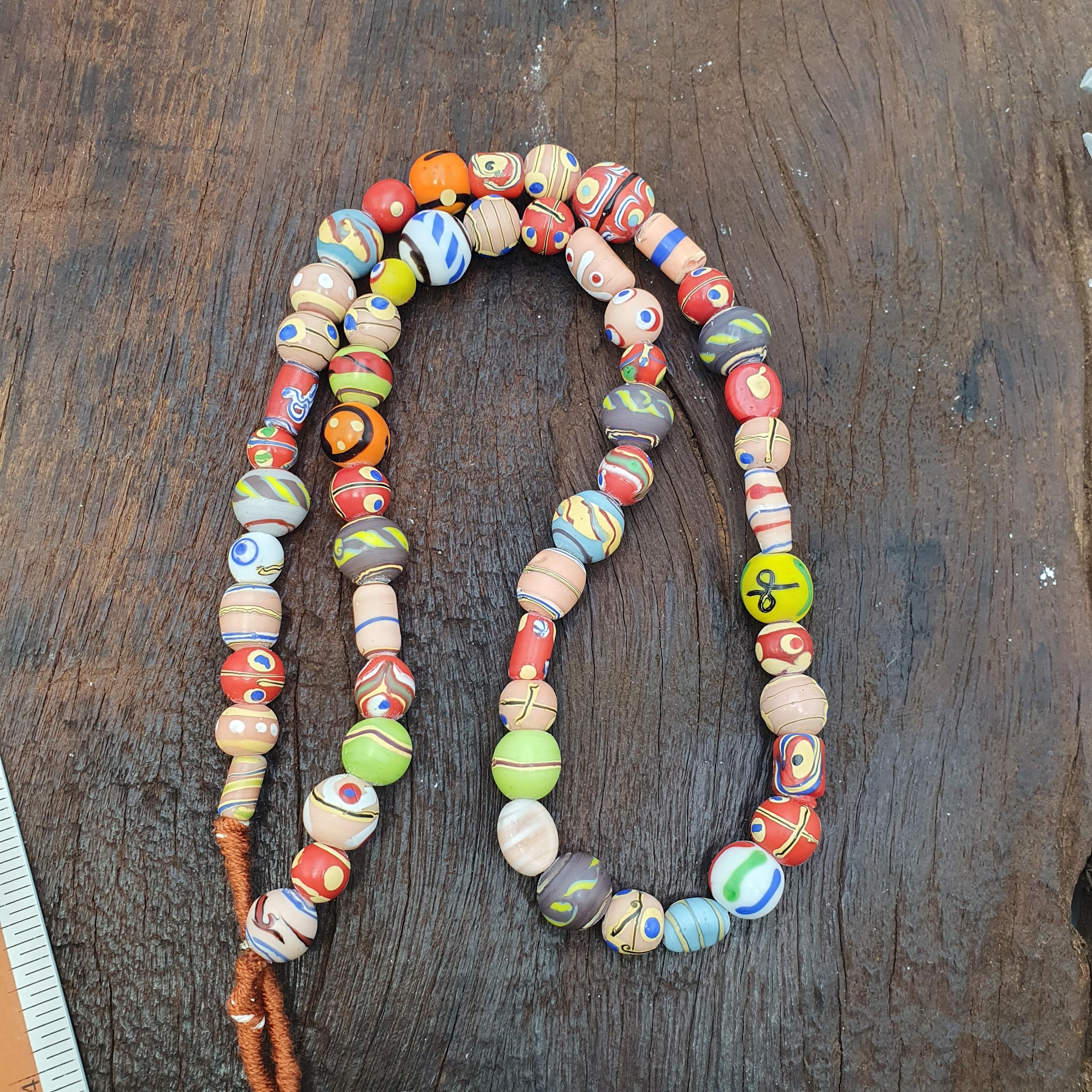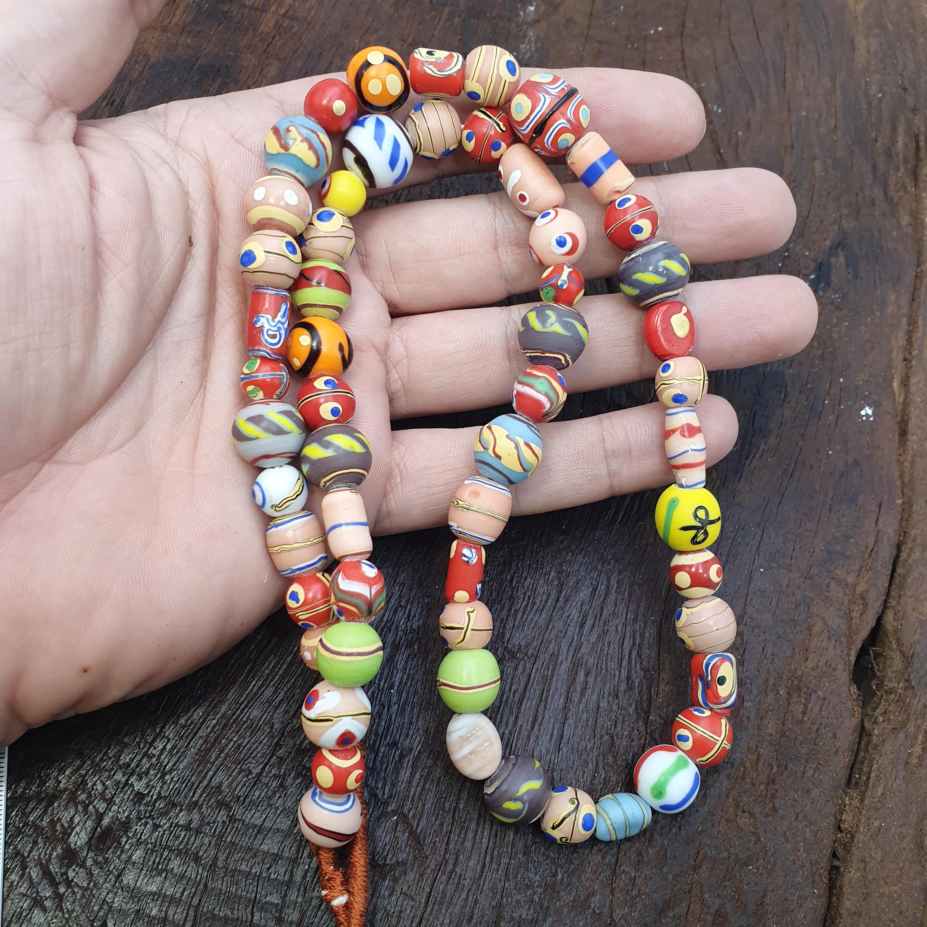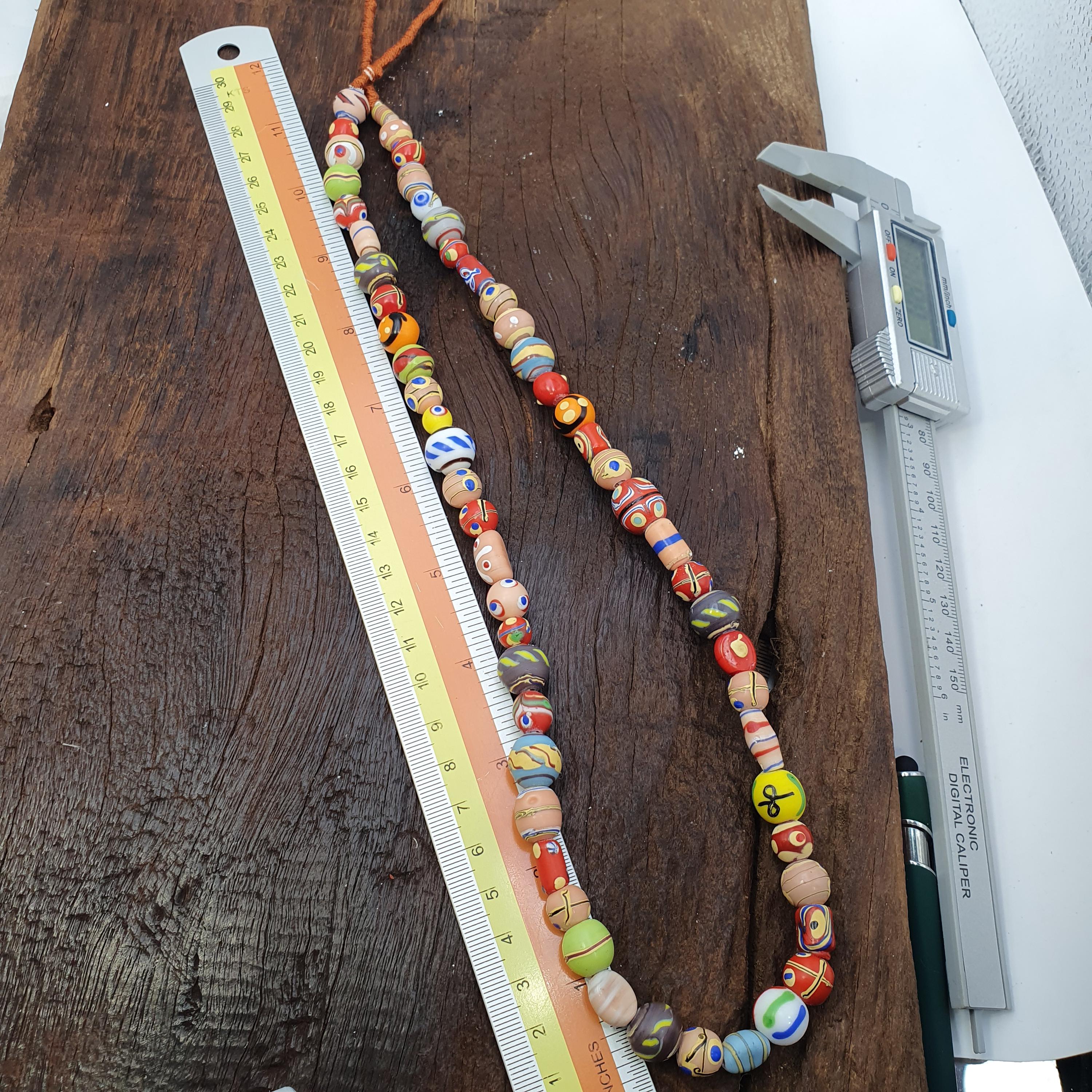 Each bead is meticulously handcrafted, showcasing artisanal design and timeless beauty rooted in African and Venetian-inspired traditions. The lively hues and intricate patterns evoke a sense of history and cultural richness, transforming this piece into more than just jewelry—it's a wearable work of art with a story to tell. Whether you're layering it with other vintage jewelry or wearing it solo for a bold, ethnic-inspired look, this necklace is sure to turn heads.
