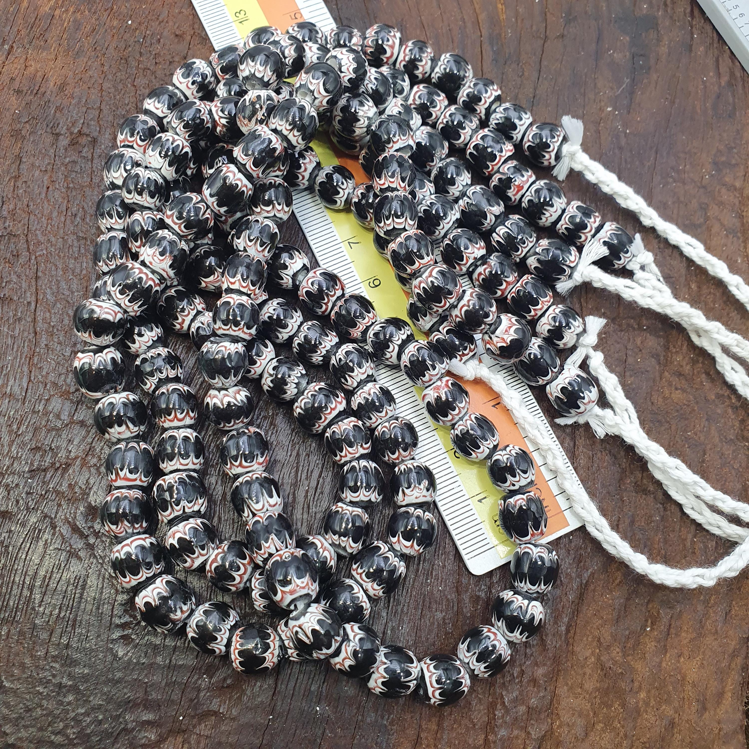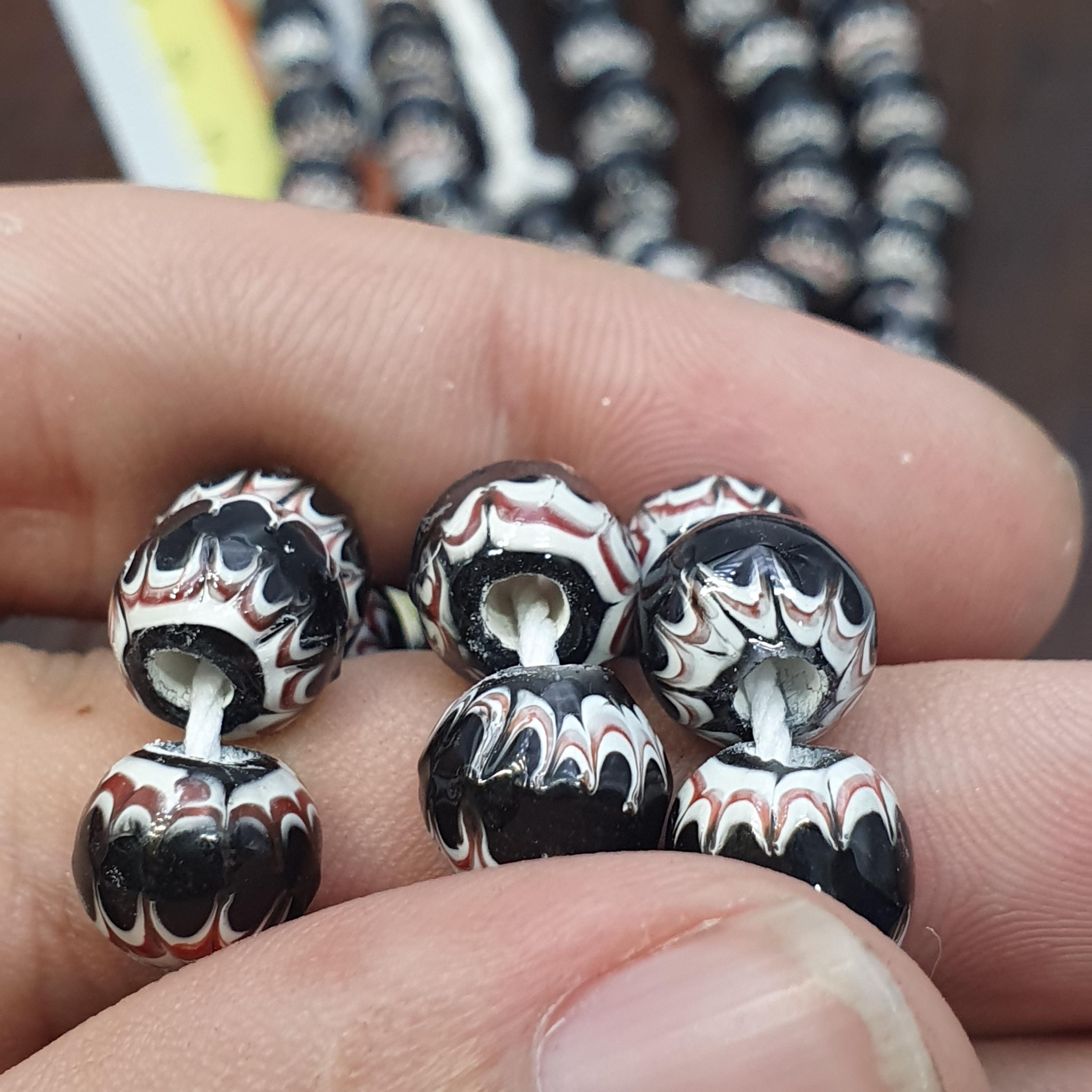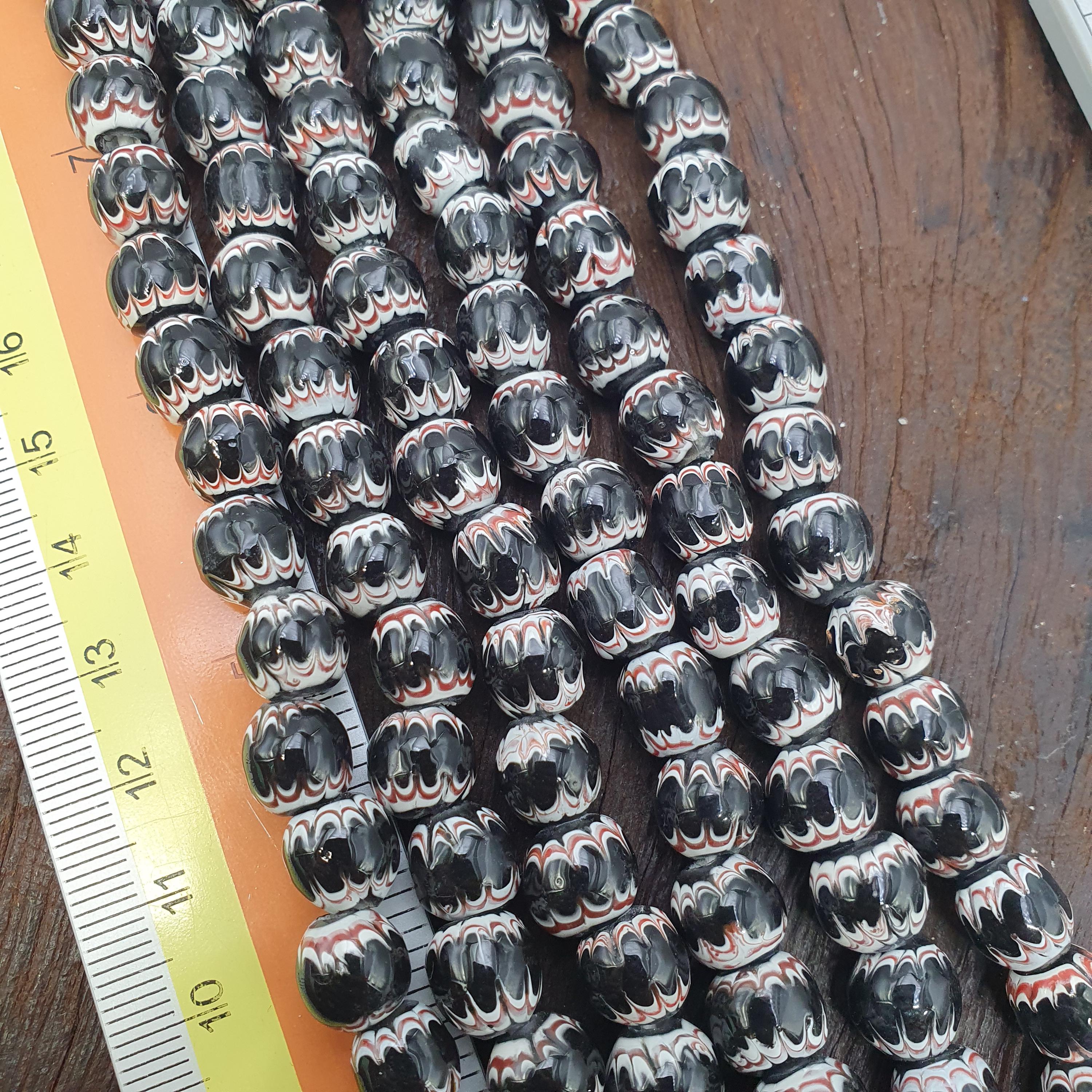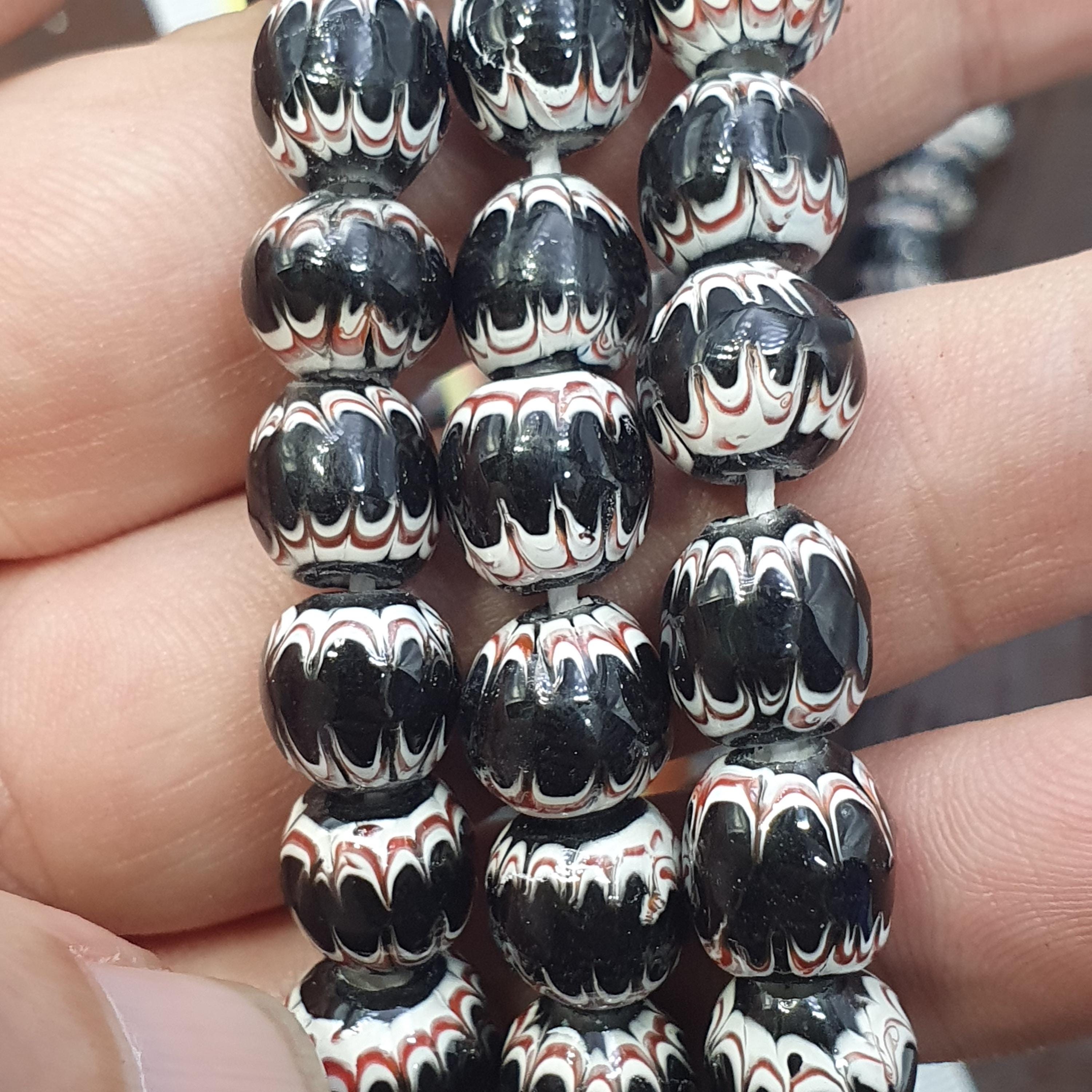 Discover the beauty of traditional African craftsmanship with this stunning Black White Feathered African Style Round Glass Chevron Pattern Beaded Necklace. Crafted with vibrant multicolor glass beads, each strand showcases a rich heritage and timeless elegance. Perfect for collectors, jewelry makers, or anyone looking to add a touch of cultural flair to their accessories collection.