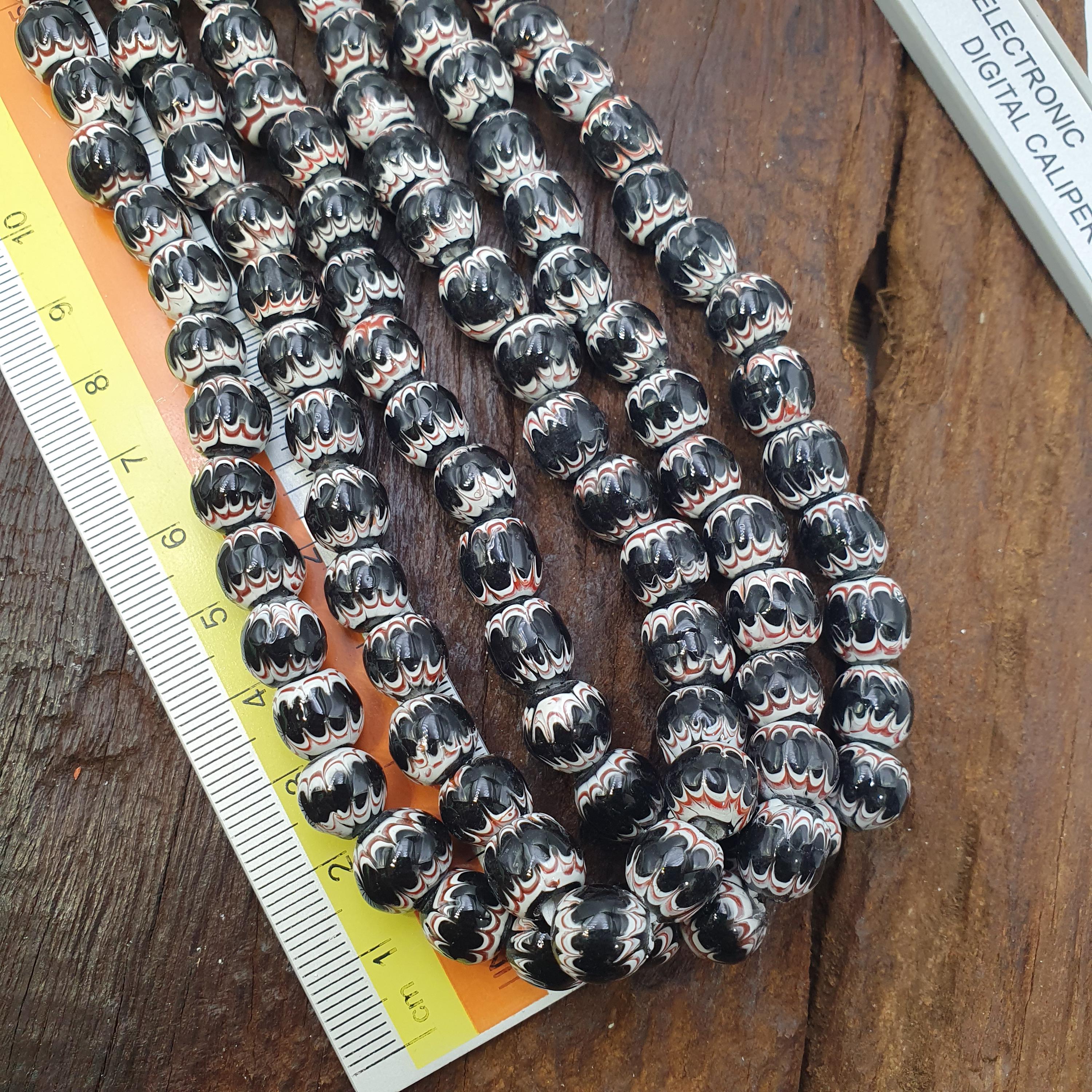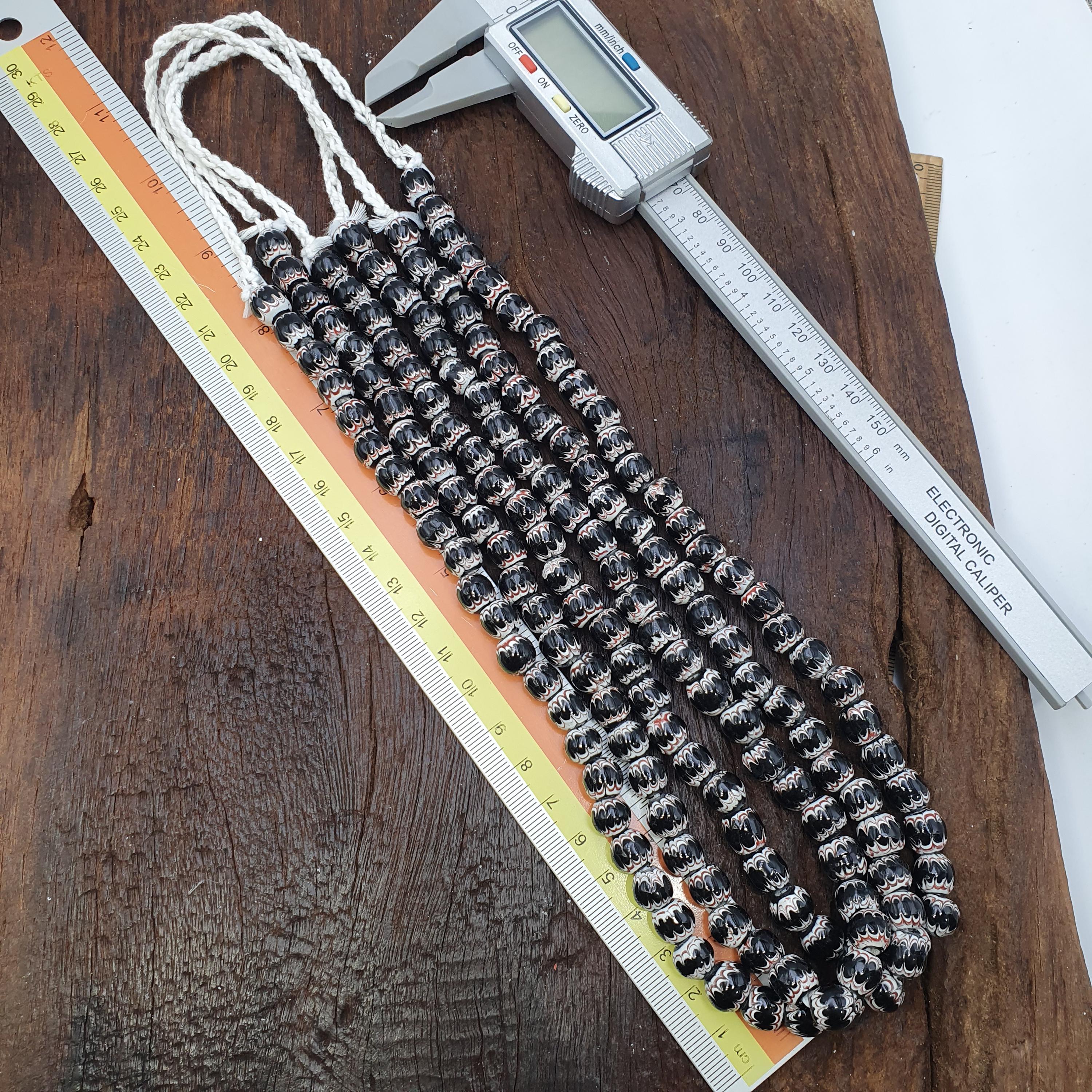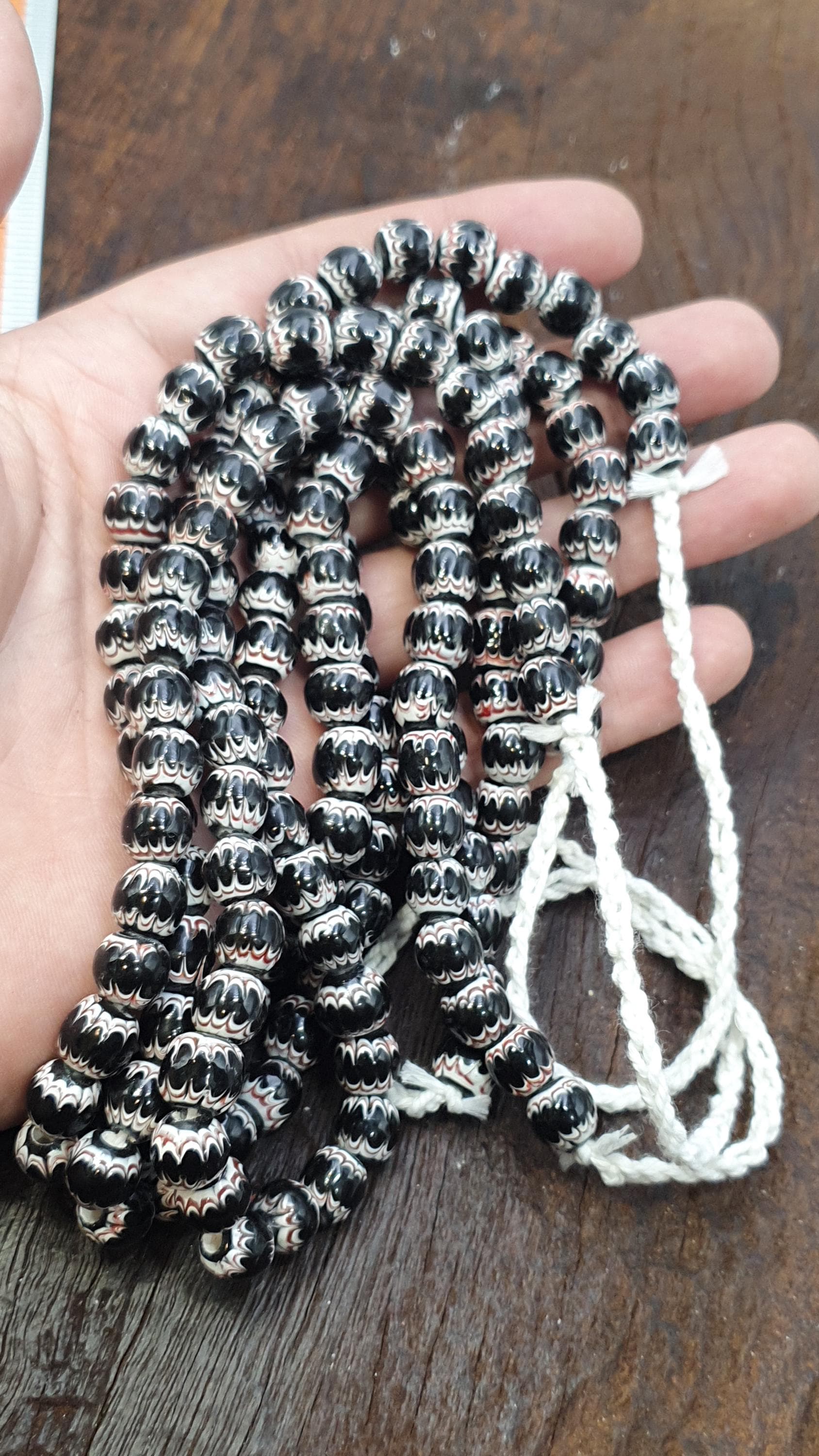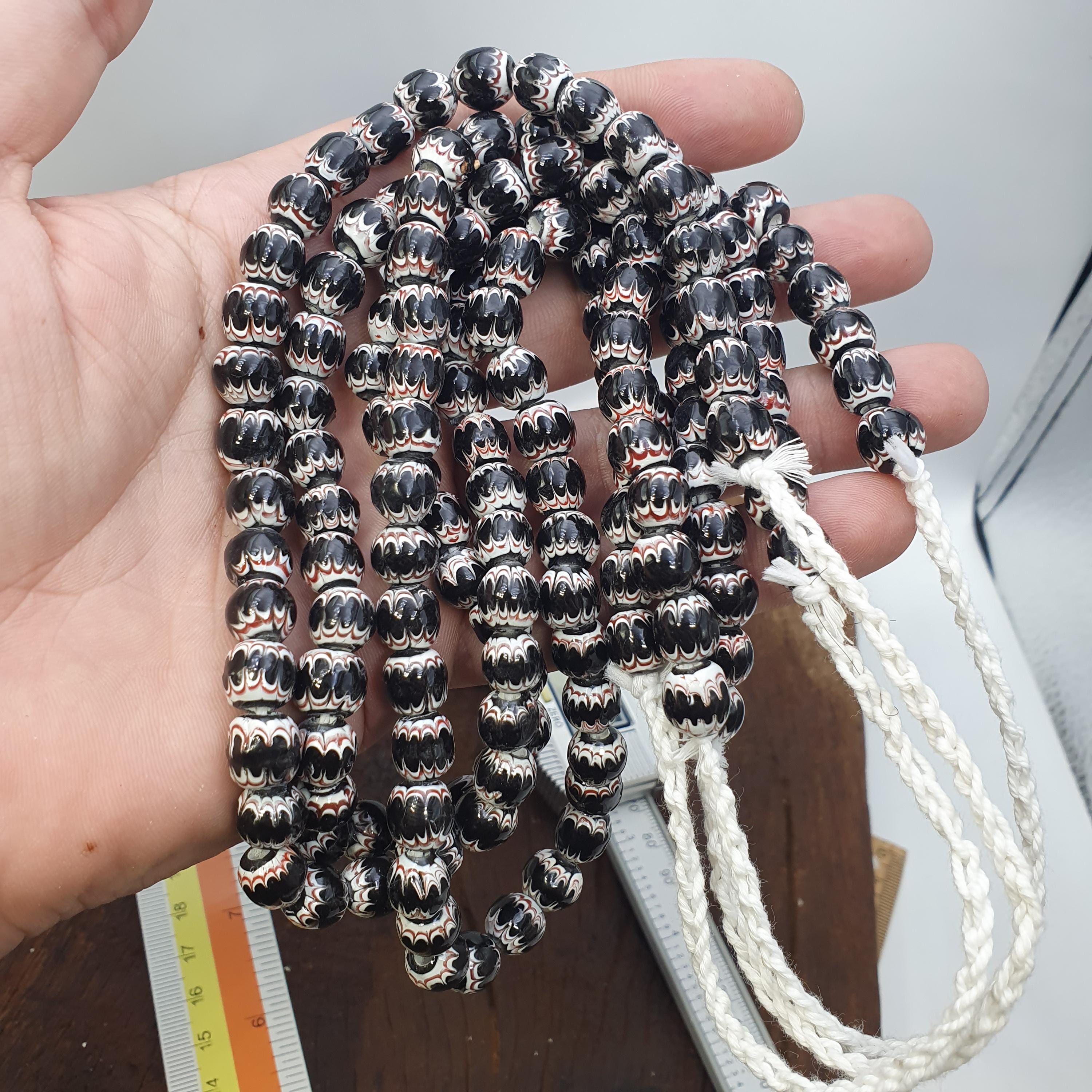 Discover the beauty of traditional African craftsmanship with this stunning Black White Feathered African Style Round Glass Chevron Pattern Beaded Necklace. Crafted with vibrant multicolor glass beads, each strand showcases a rich heritage and timeless elegance. Perfect for collectors, jewelry makers, or anyone looking to add a touch of cultural flair to their accessories collection.