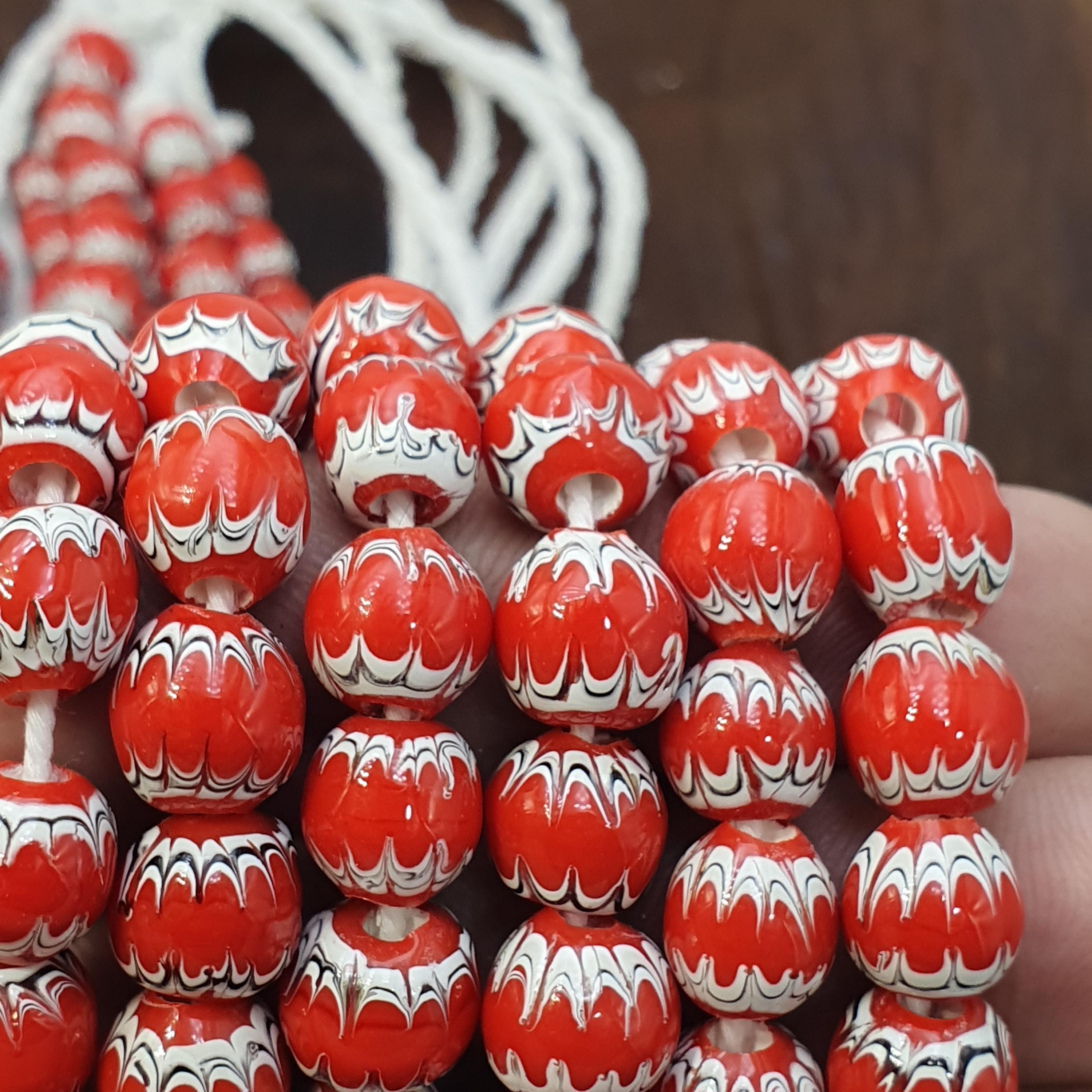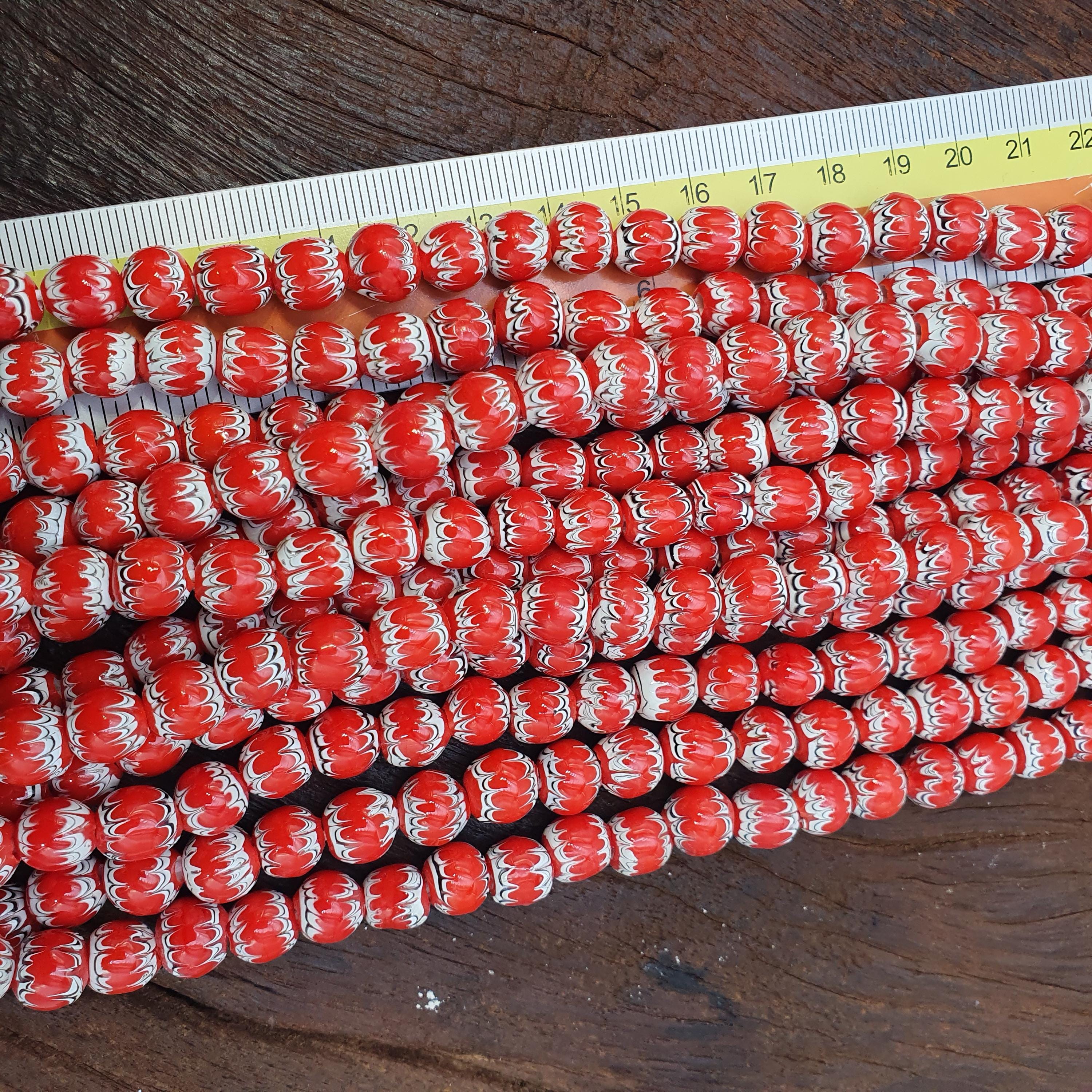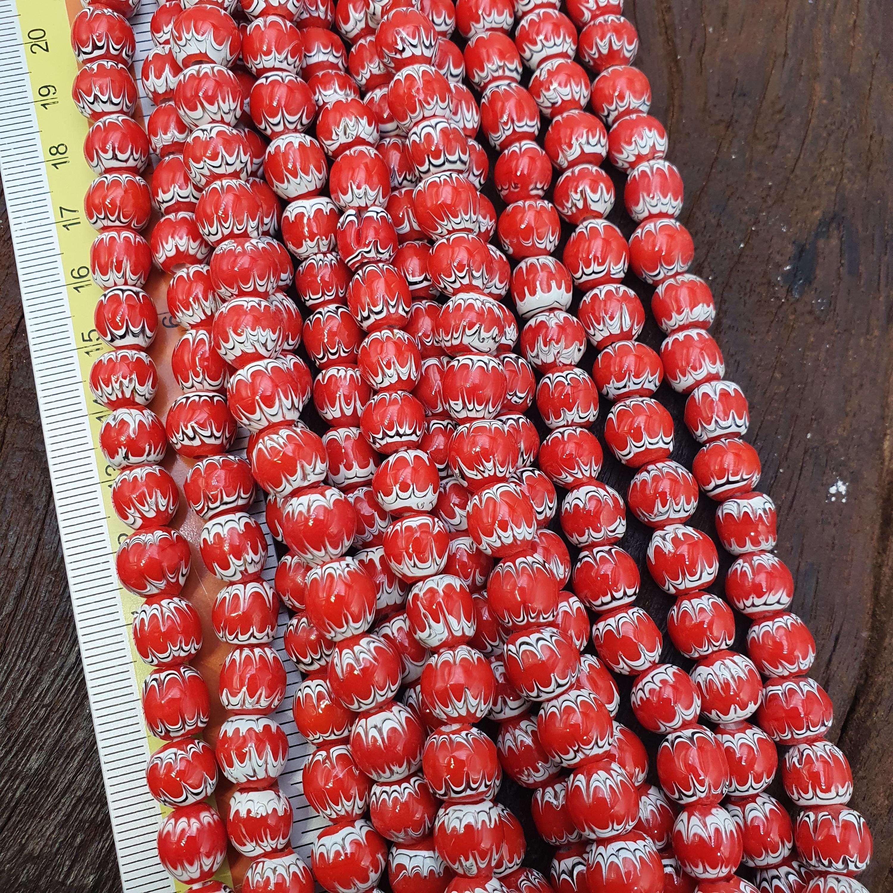 Discover the vibrant beauty of traditional African craftsmanship with this stunning Red White Feathered African Style Round Glass Chevron Pattern Beads Strand. Perfect for jewelry makers, collectors, or anyone seeking a bold cultural statement, this bead strand combines timeless elegance with rich heritage.