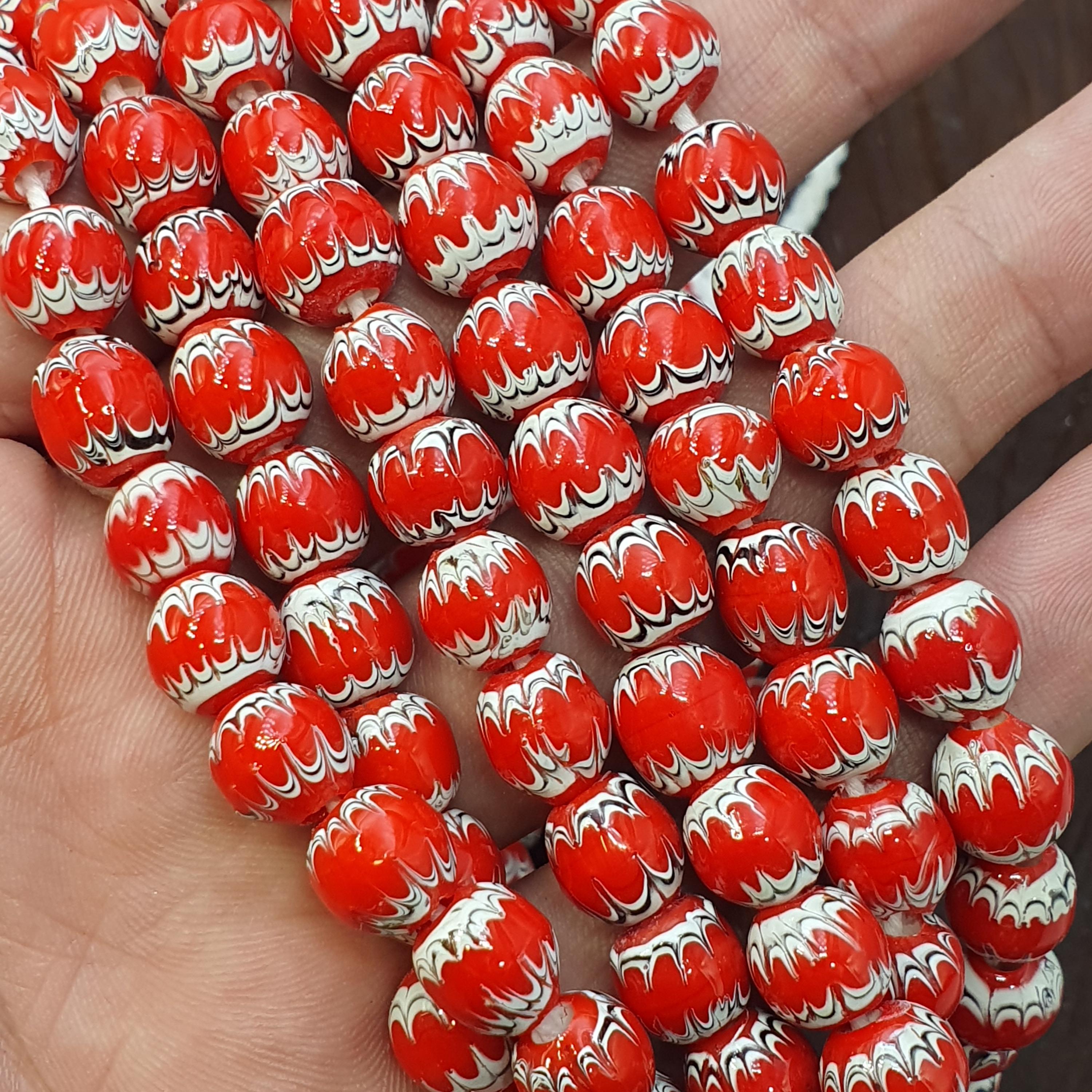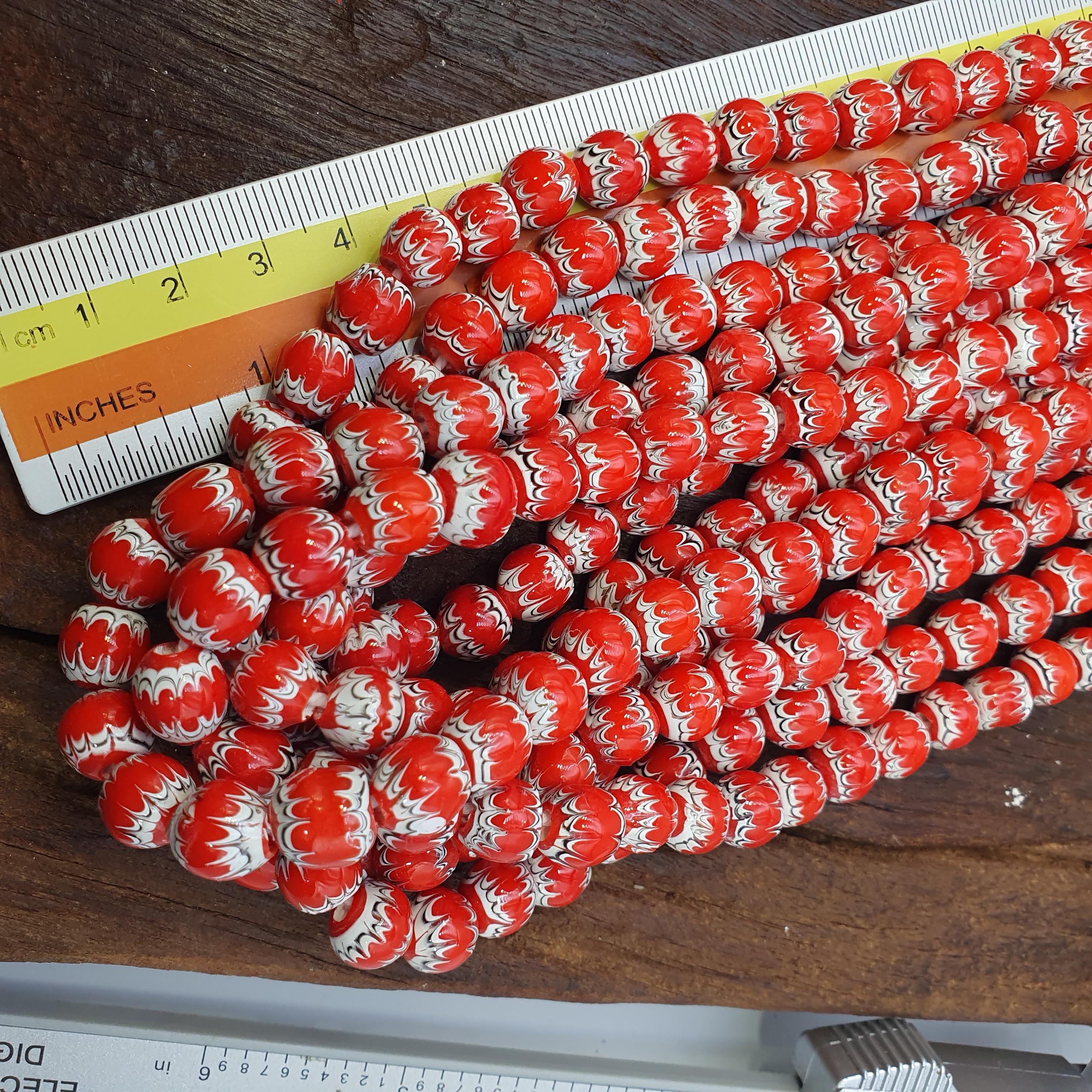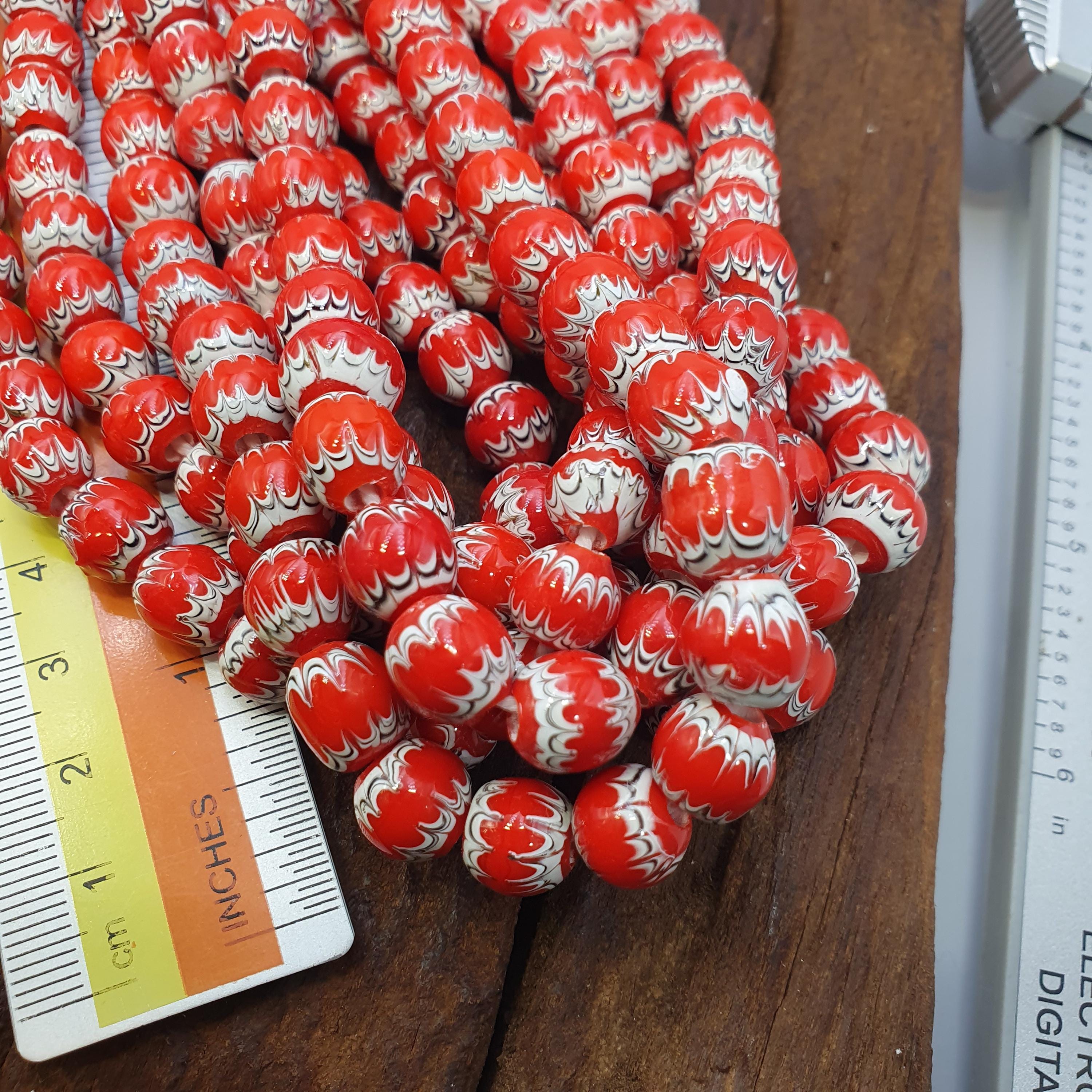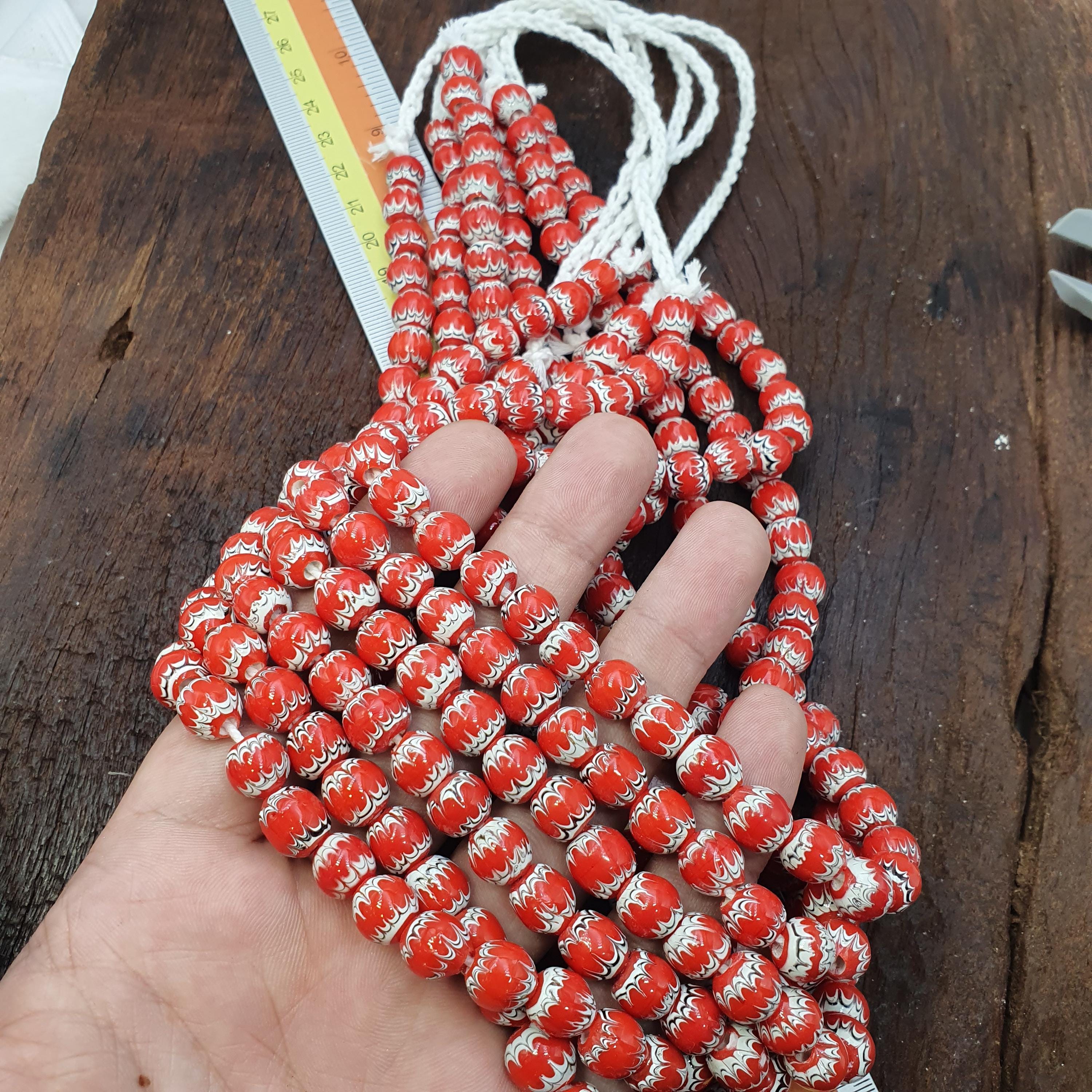 Discover the vibrant beauty of traditional African craftsmanship with this stunning Red White Feathered African Style Round Glass Chevron Pattern Beads Strand. Perfect for jewelry makers, collectors, or anyone seeking a bold cultural statement, this bead strand combines timeless elegance with rich heritage.
