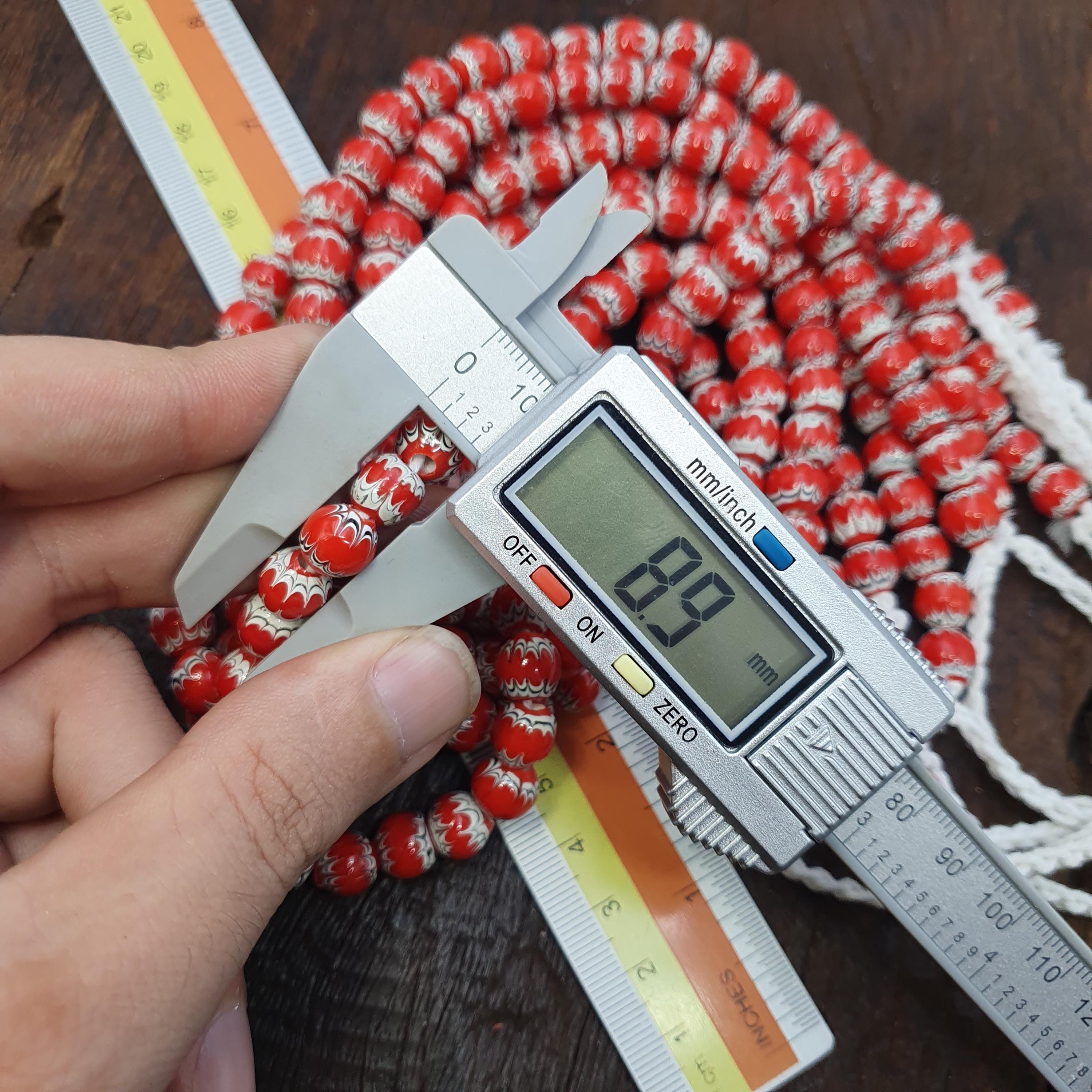 Whether you're creating a statement necklace, bracelet, or adding a touch of cultural flair to your designs, these beads are versatile and eye-catching. Ideal for vintage bead enthusiasts, beaders, or those looking for a meaningful gift, this glass bead strand embodies both beauty and tradition.