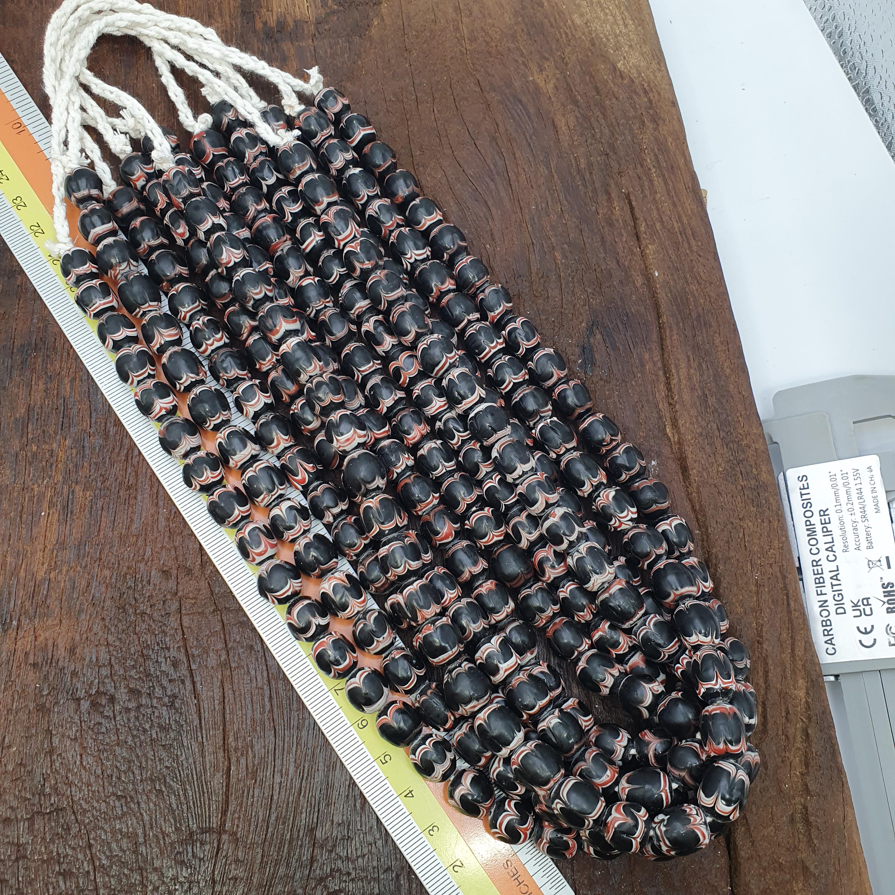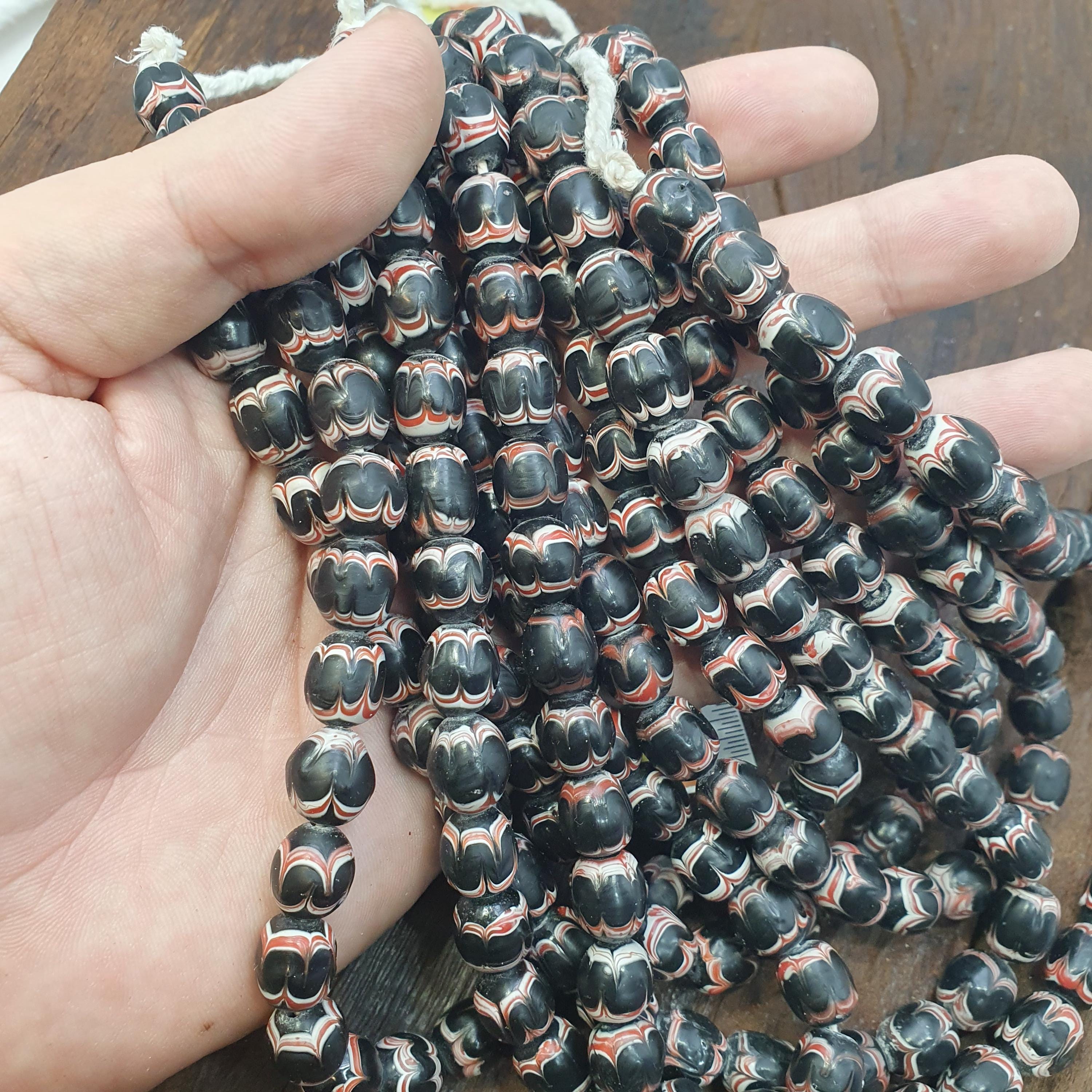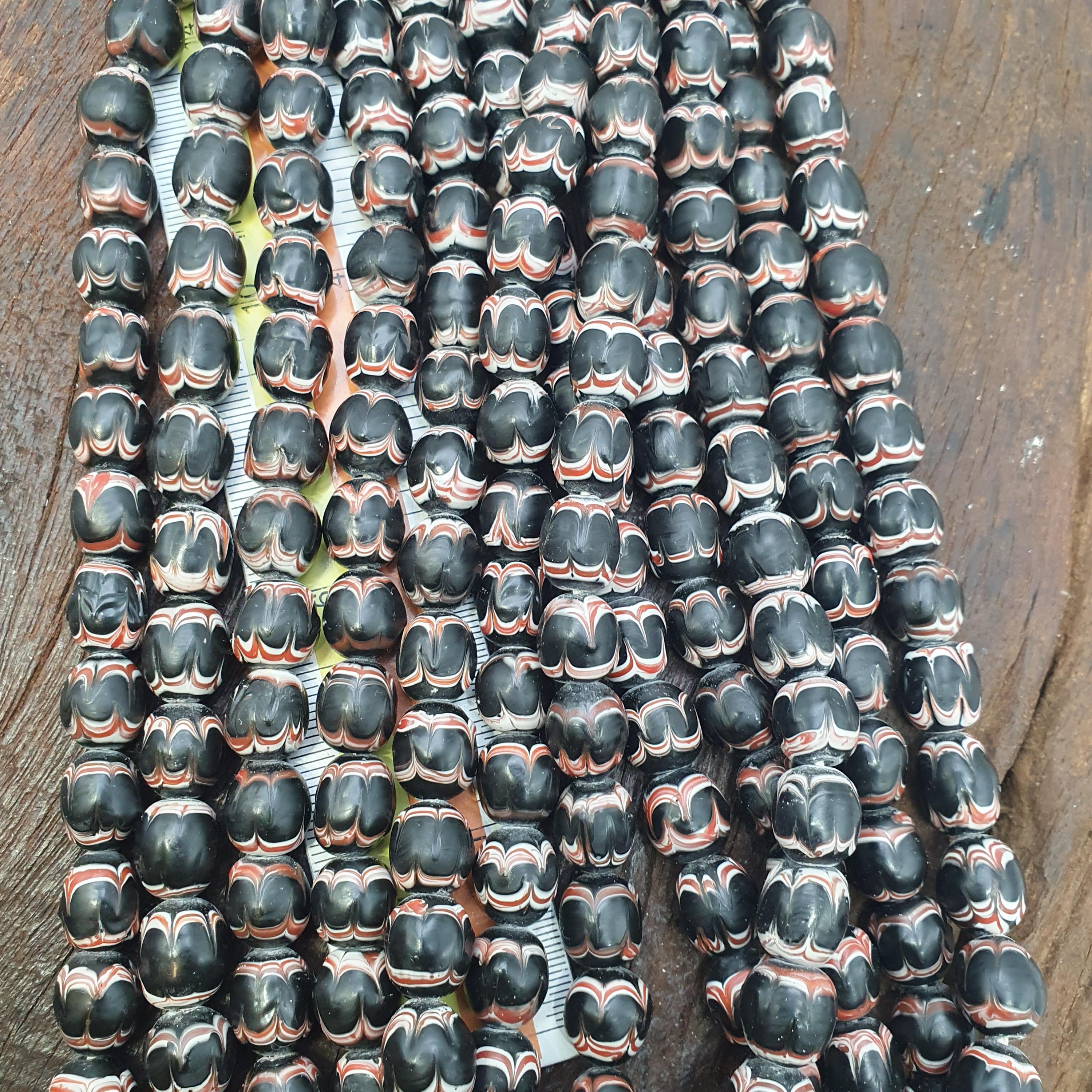 Discover the beauty of traditional African craftsmanship with this stunning Black White Feathered African Style Round Glass Chevron Pattern Beaded Necklace. Crafted with vibrant multicolor glass beads, each strand showcases a rich heritage and timeless elegance. Perfect for collectors, jewelry makers, or anyone looking to add a touch of cultural flair to their accessories collection.