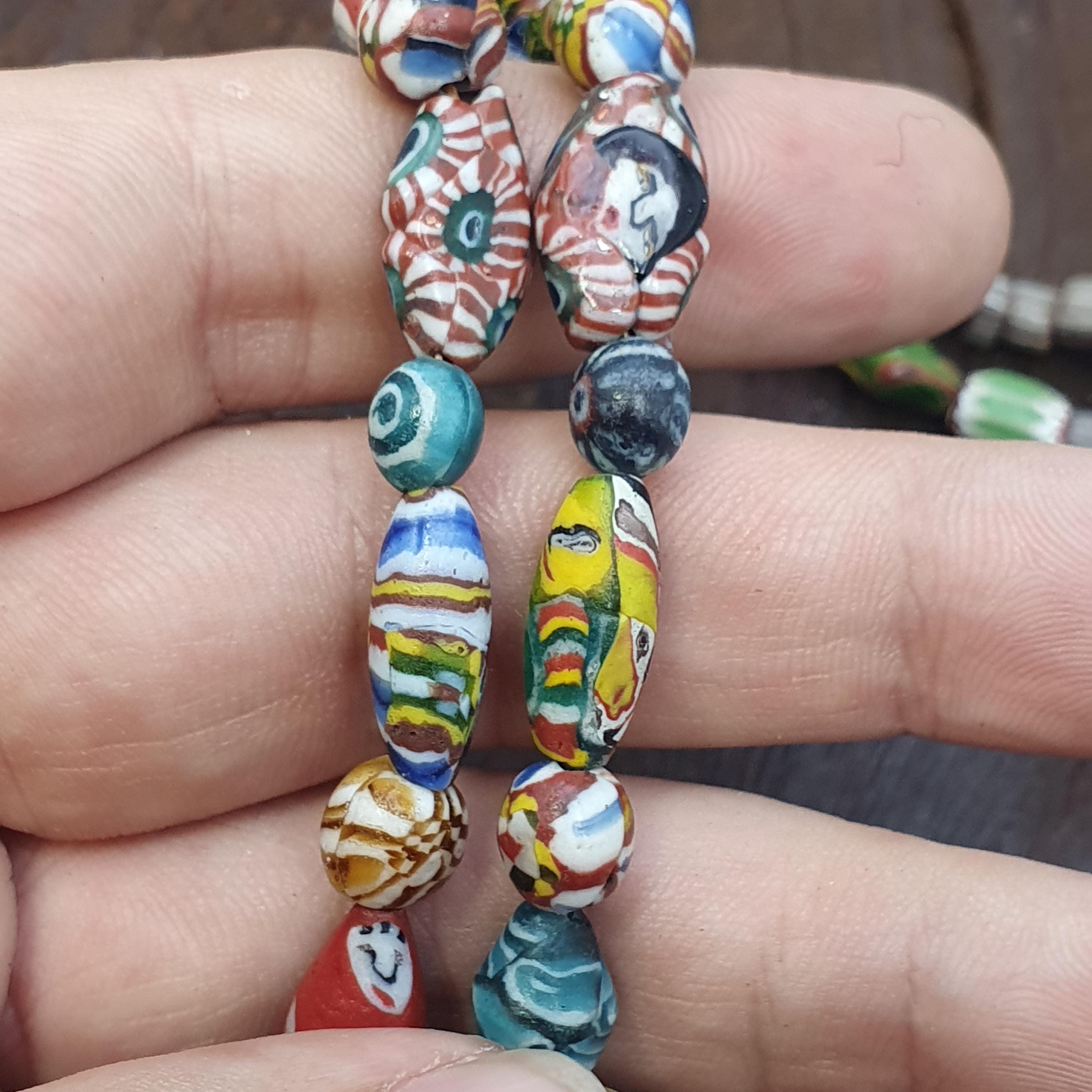 Discover the timeless elegance of our Rare Venetian Style Face Bead Necklace, a stunning piece of handmade artisan jewelry featuring vibrant Millefiori mosaic glass beads. This 26-inch beaded necklace showcases intricate vintage-inspired portrait Murrine designs, each meticulously crafted by skilled artisans to evoke the rich artistry of traditional Venetian glasswork. Perfect for adding a touch of historical charm and artistic sophistication to any outfit, this necklace makes a truly unique statement piece.