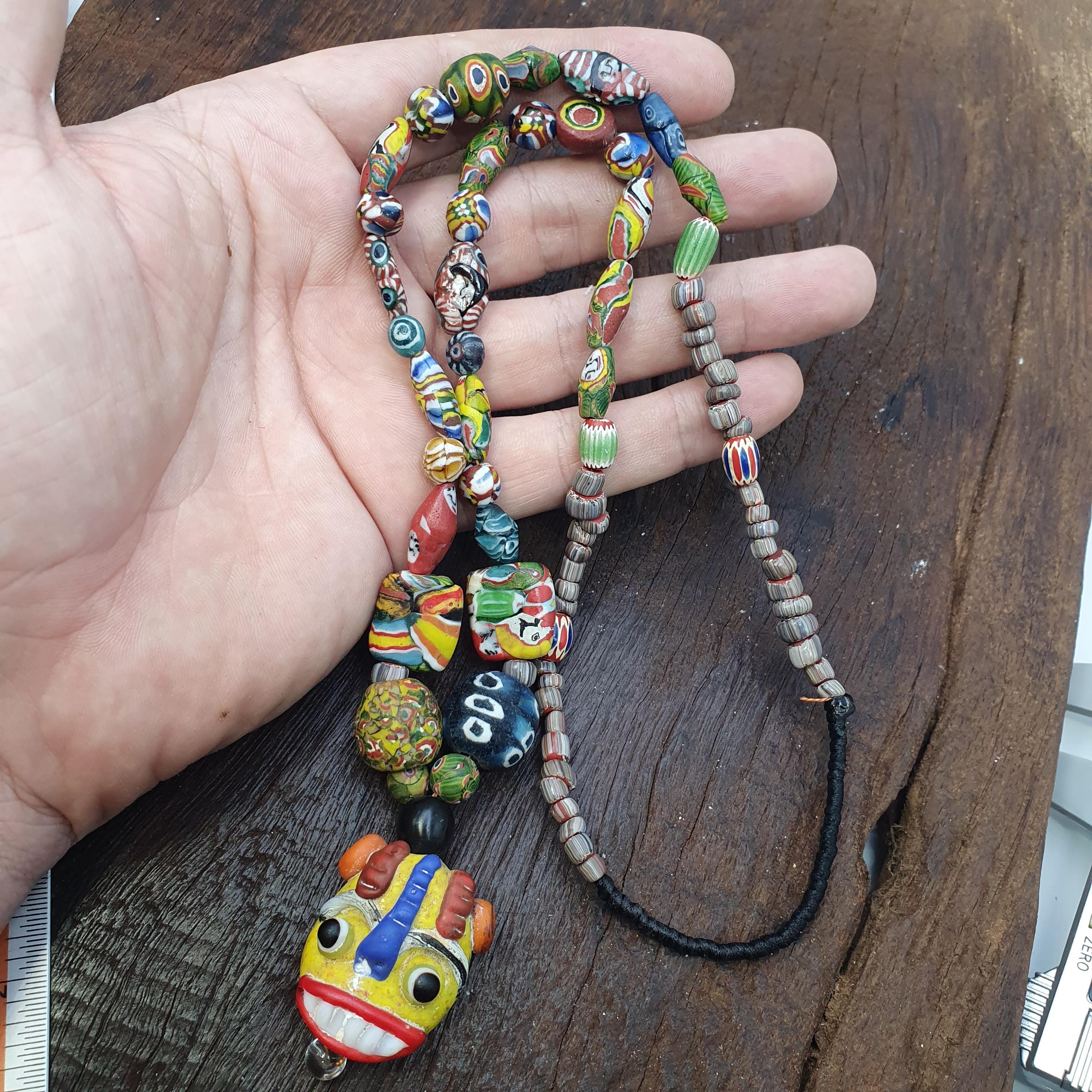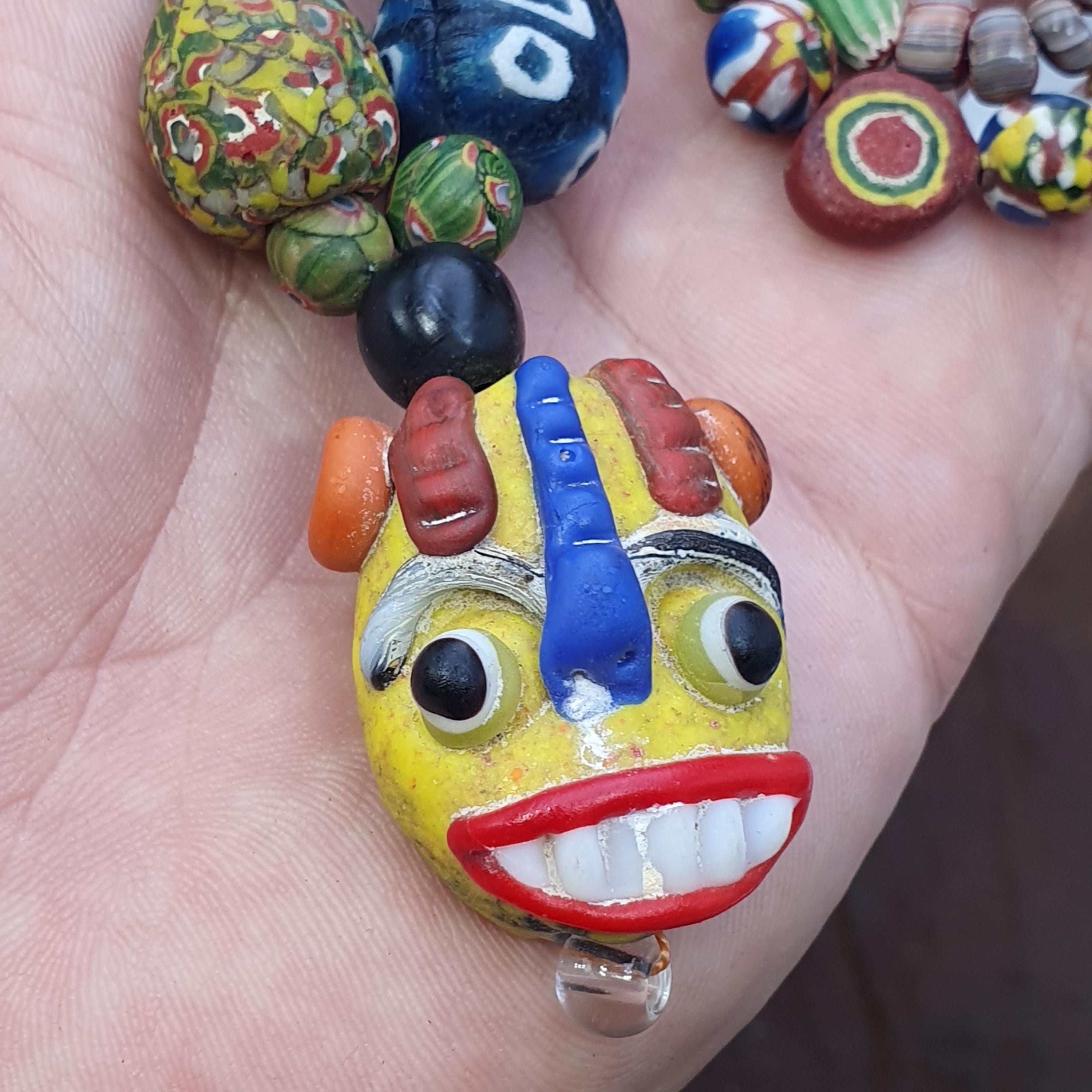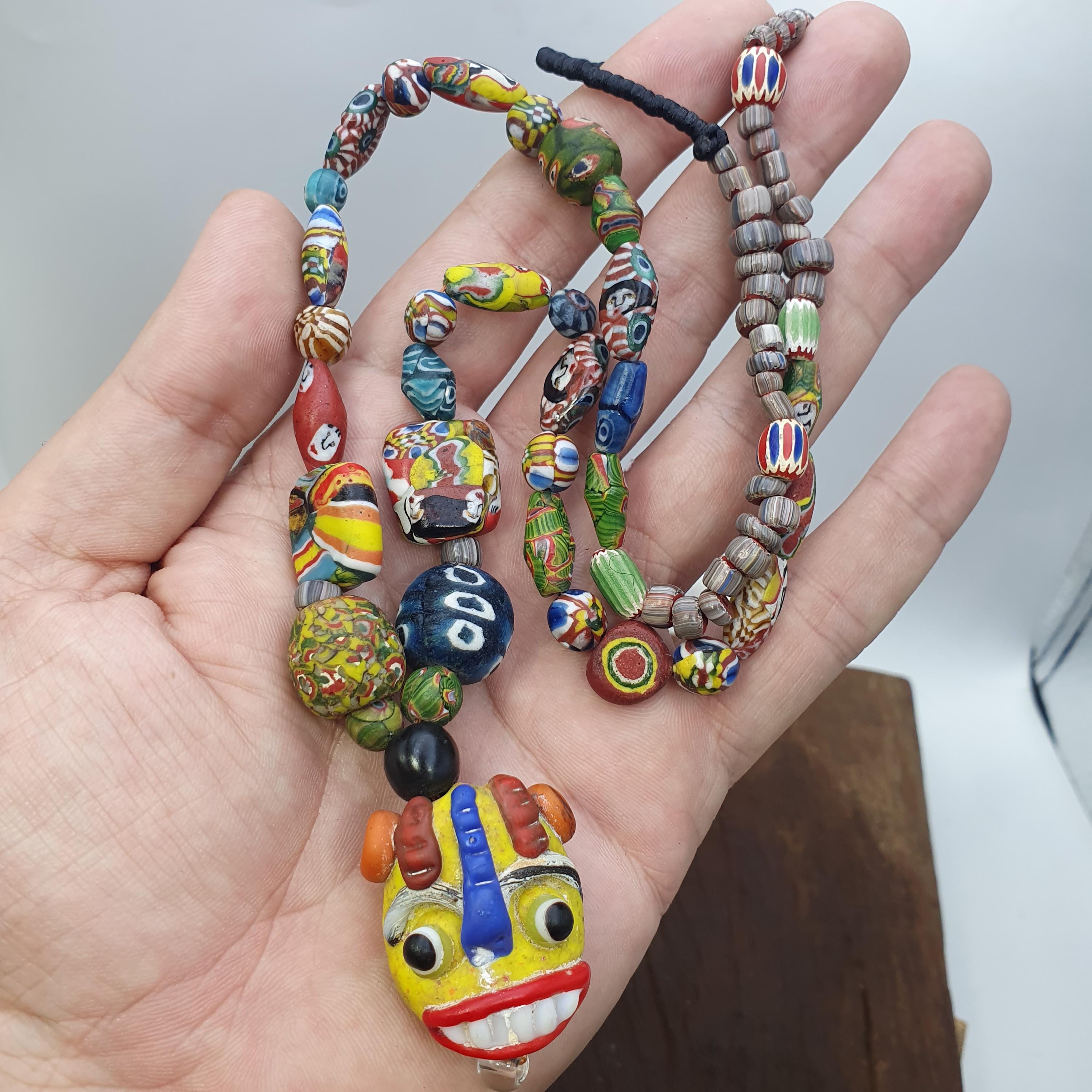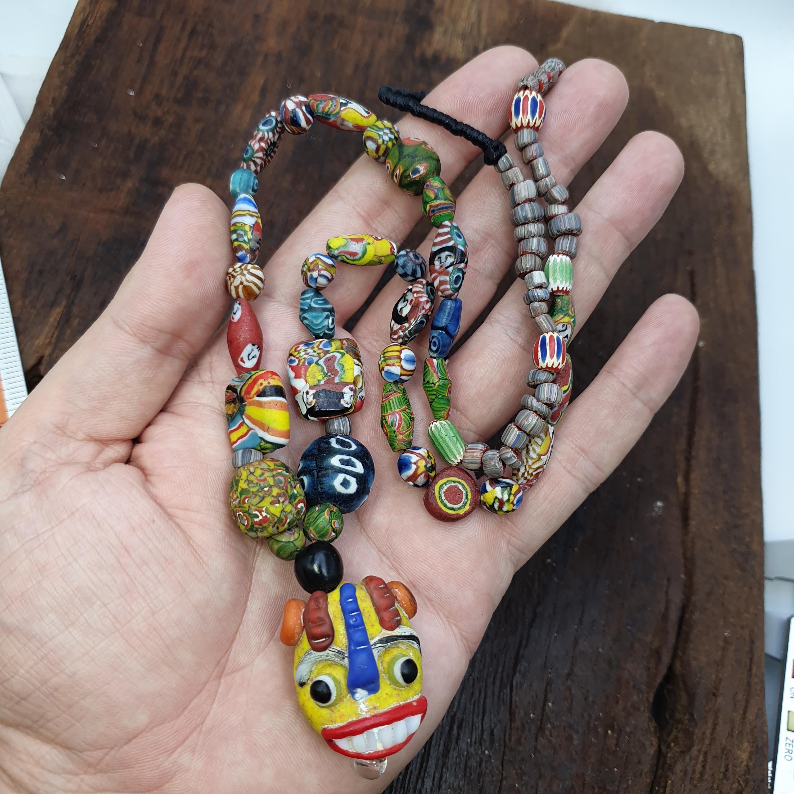 Designed with a focus on craftsmanship and individuality, every bead tells a story through its colorful patterns and detailed facial portraits. Whether you're celebrating special moments or seeking a distinctive gift for a loved one, this necklace offers a blend of vintage allure and contemporary style. Its versatile length and eye-catching design make it ideal for both everyday wear and special occasions.