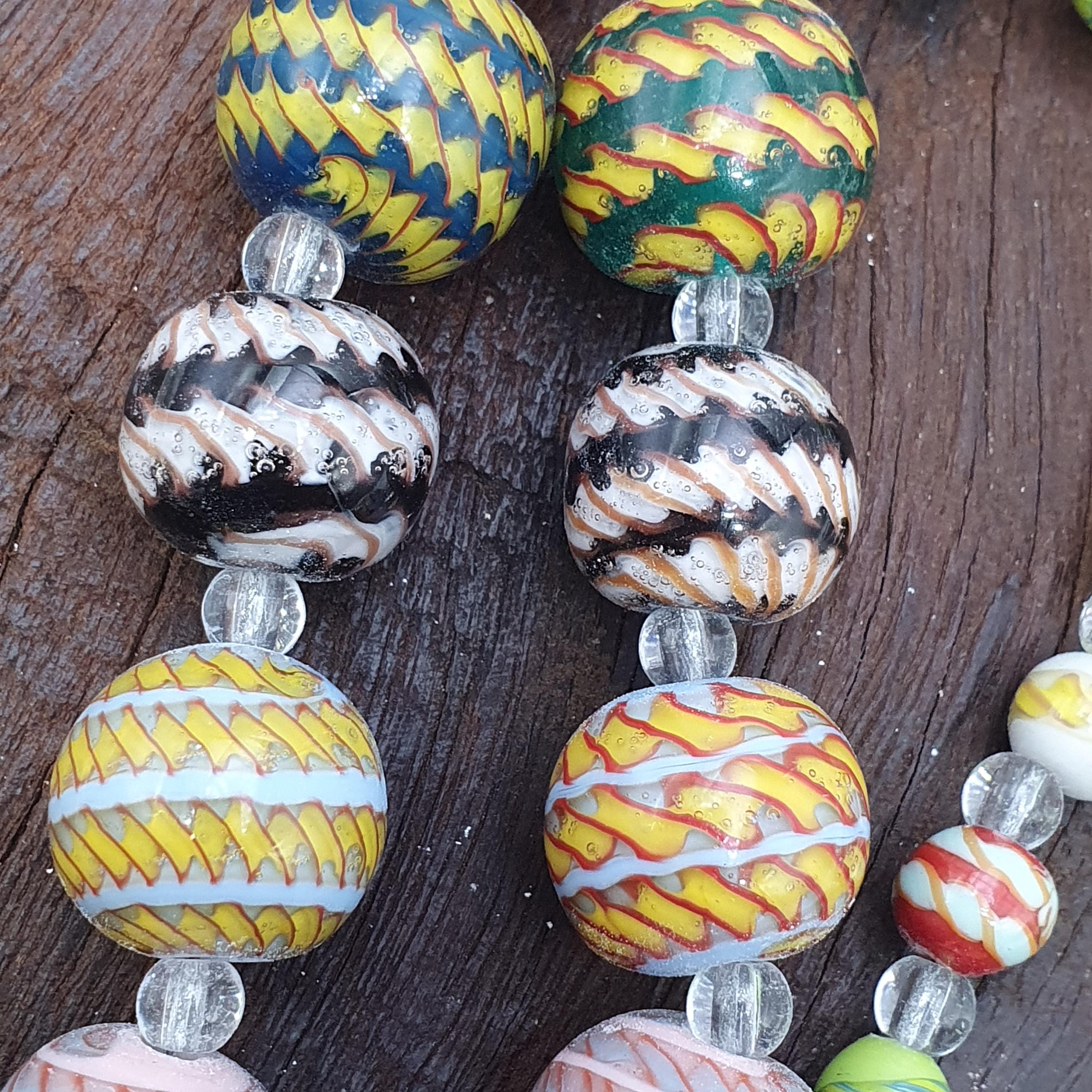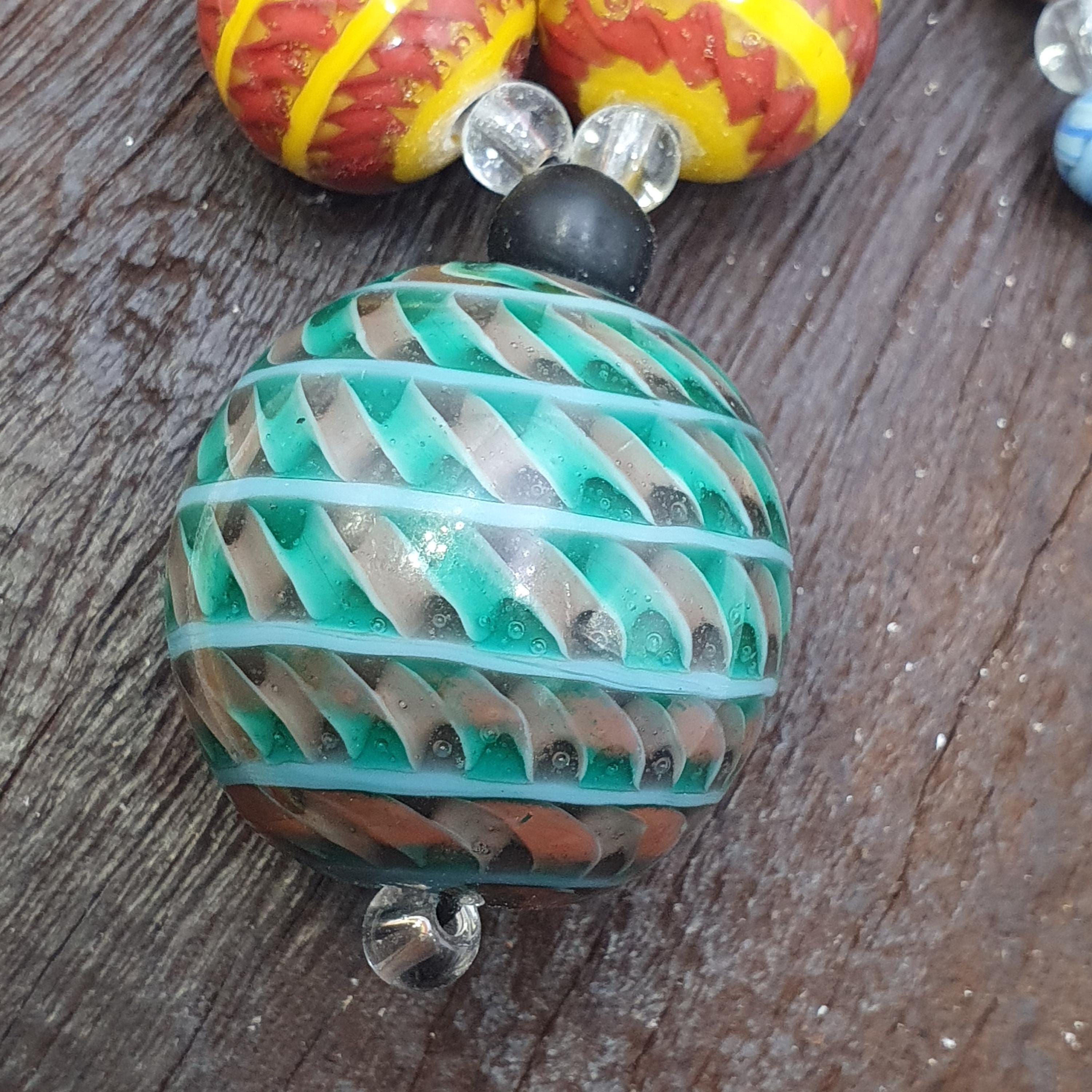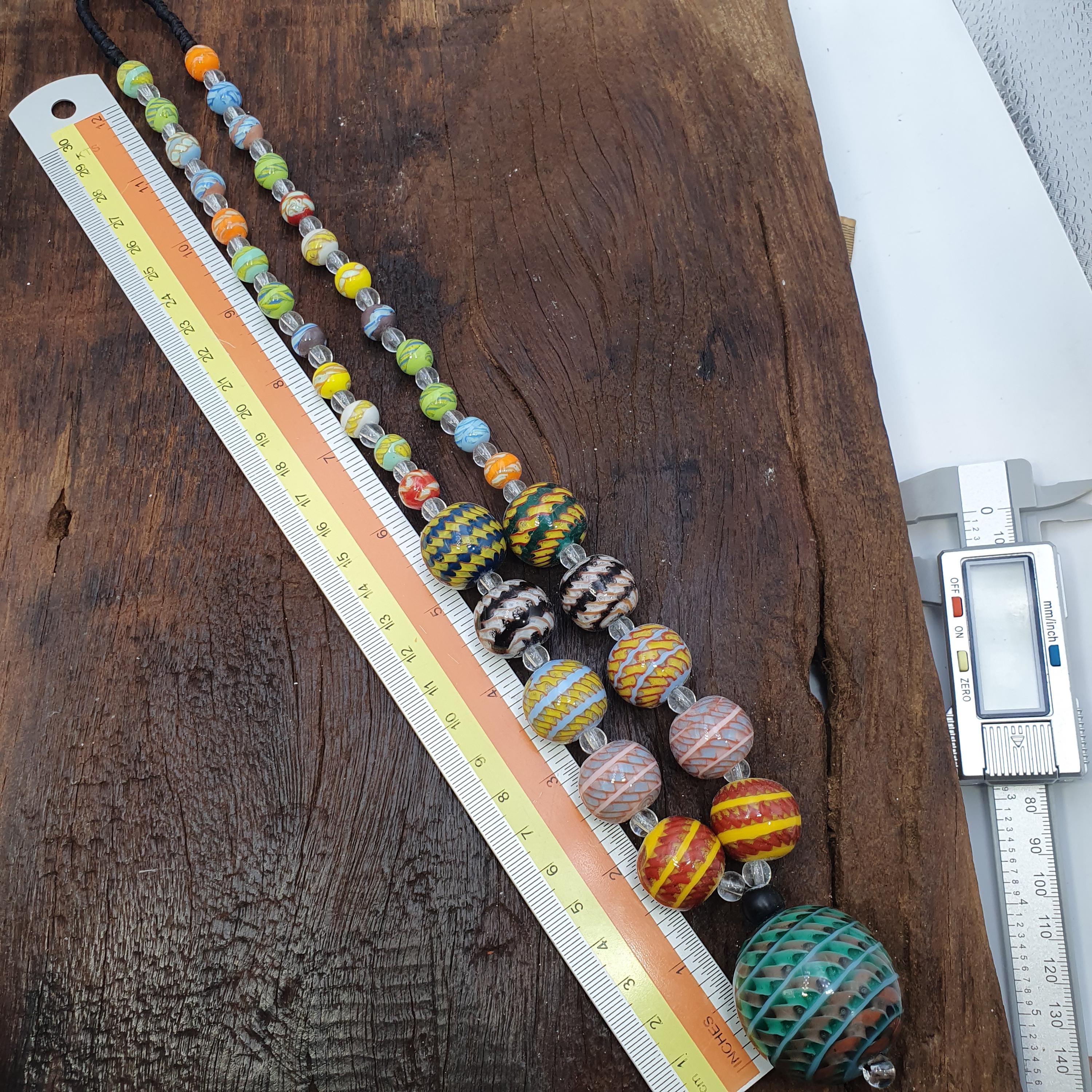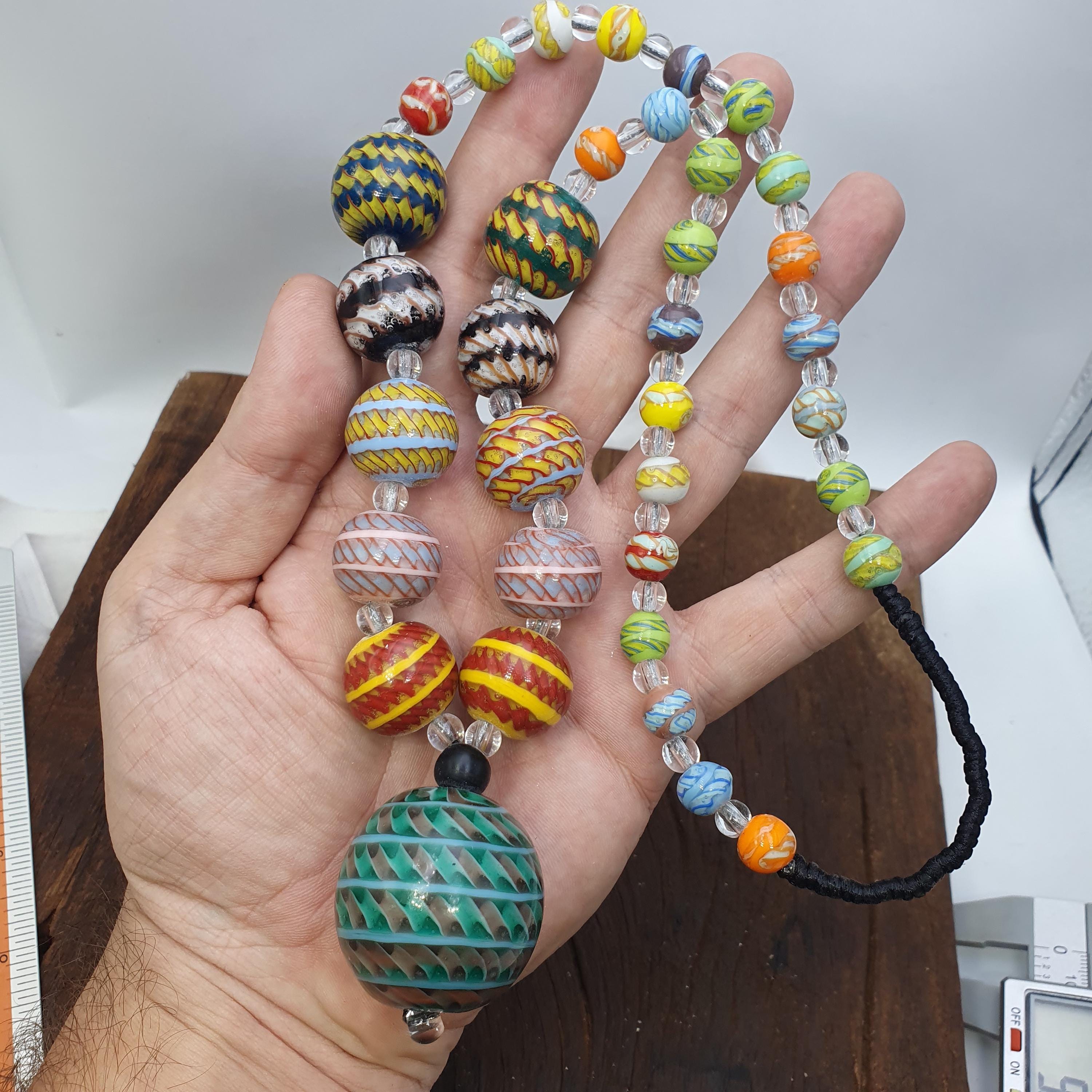 Discover the charm of our Handmade Venetian Style Glass Bead Necklace, featuring a striking large bead pendant and vibrant millefiori beads. This unique beaded necklace combines vintage elegance with artistic craftsmanship, making it a perfect accessory for any jewelry lover or a thoughtful gift for someone special.