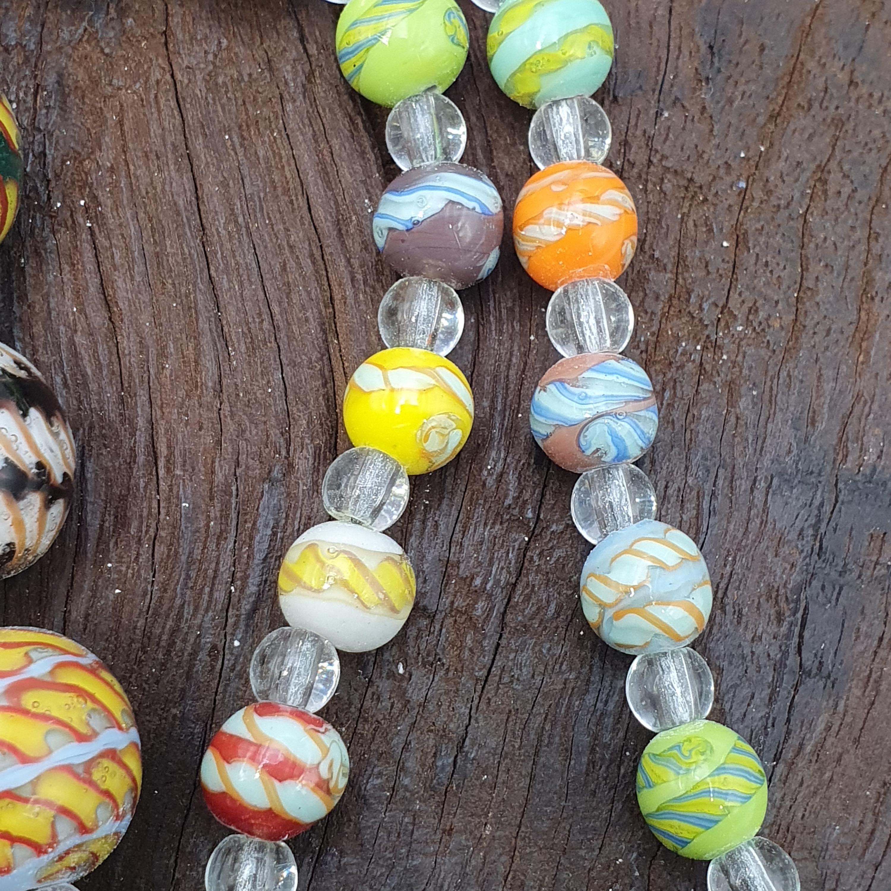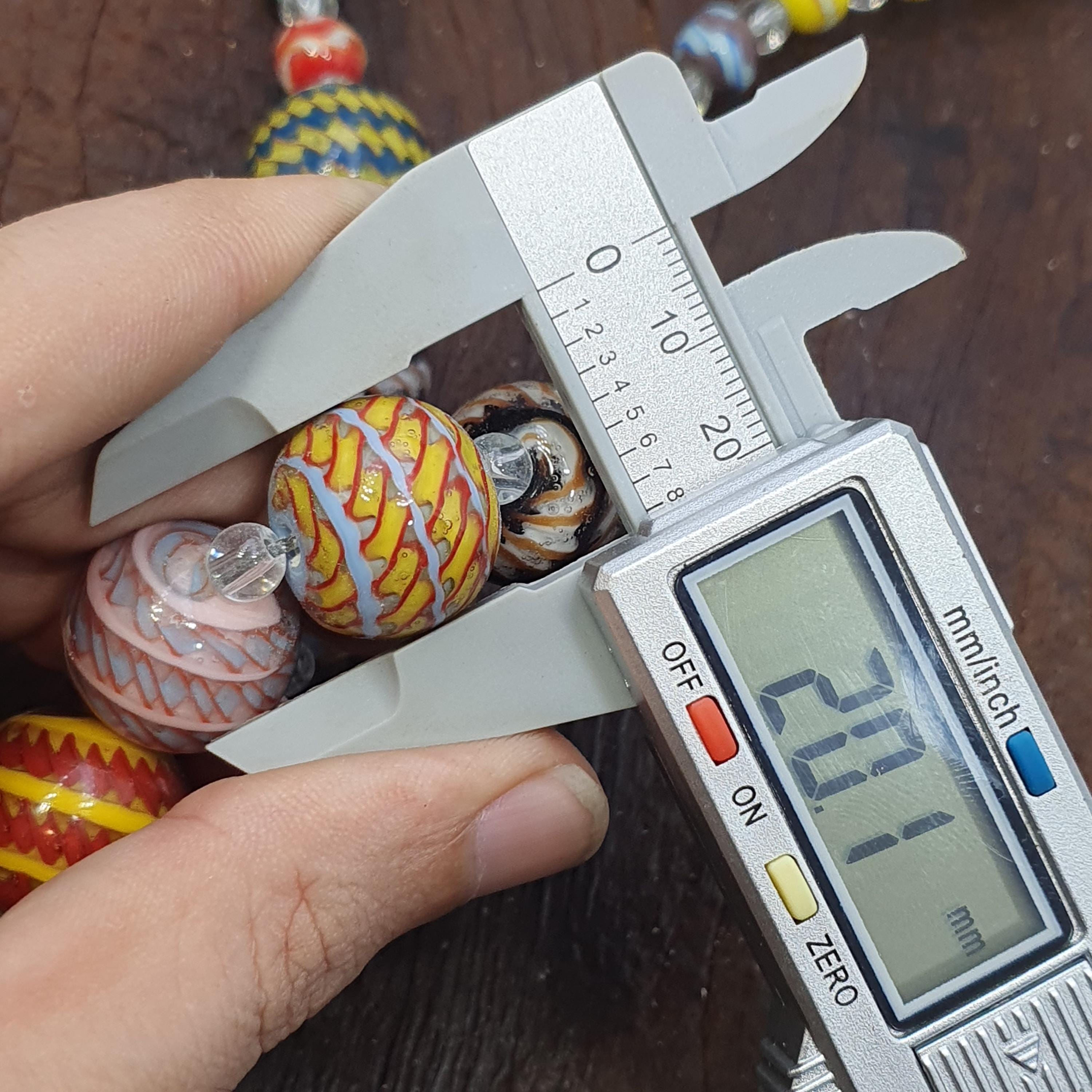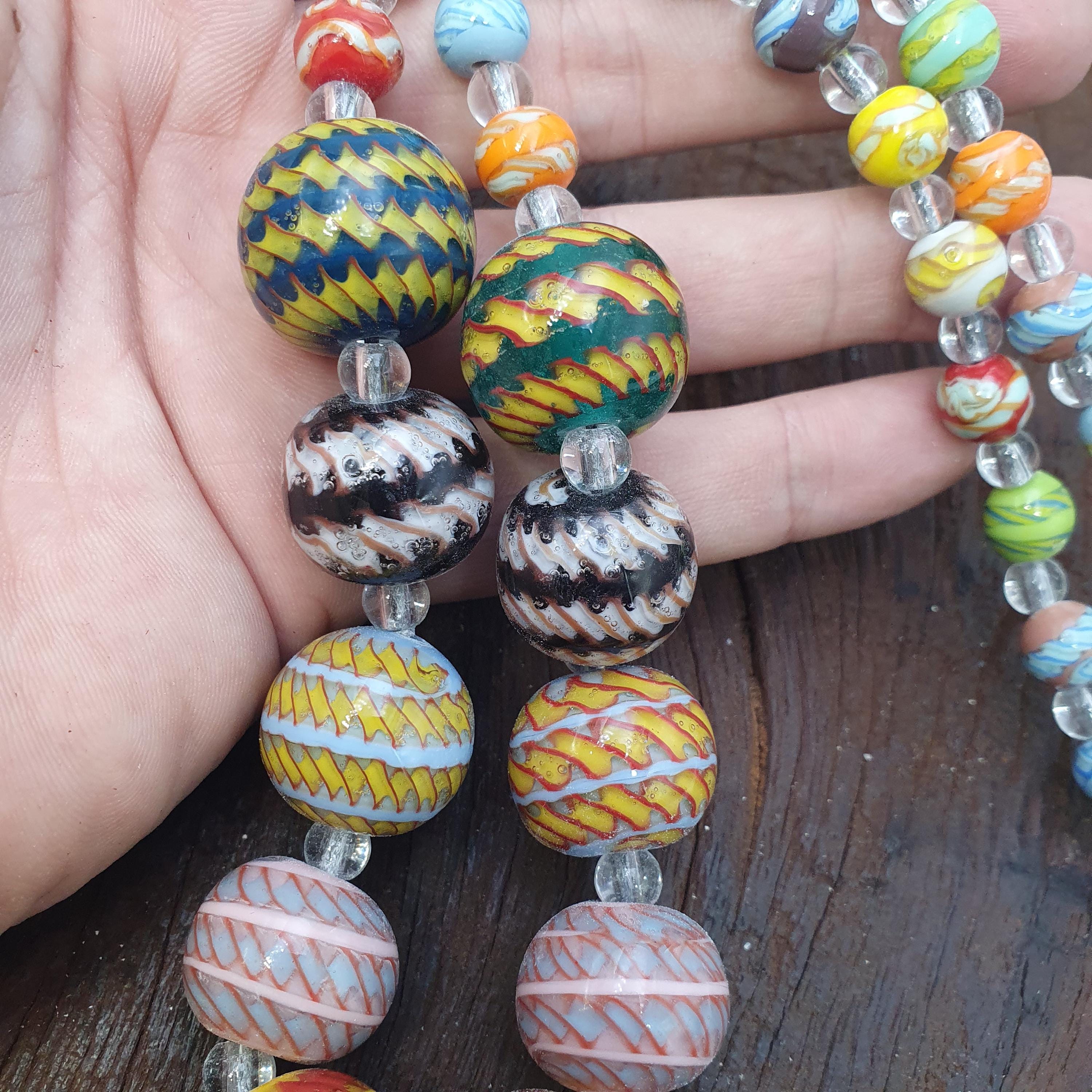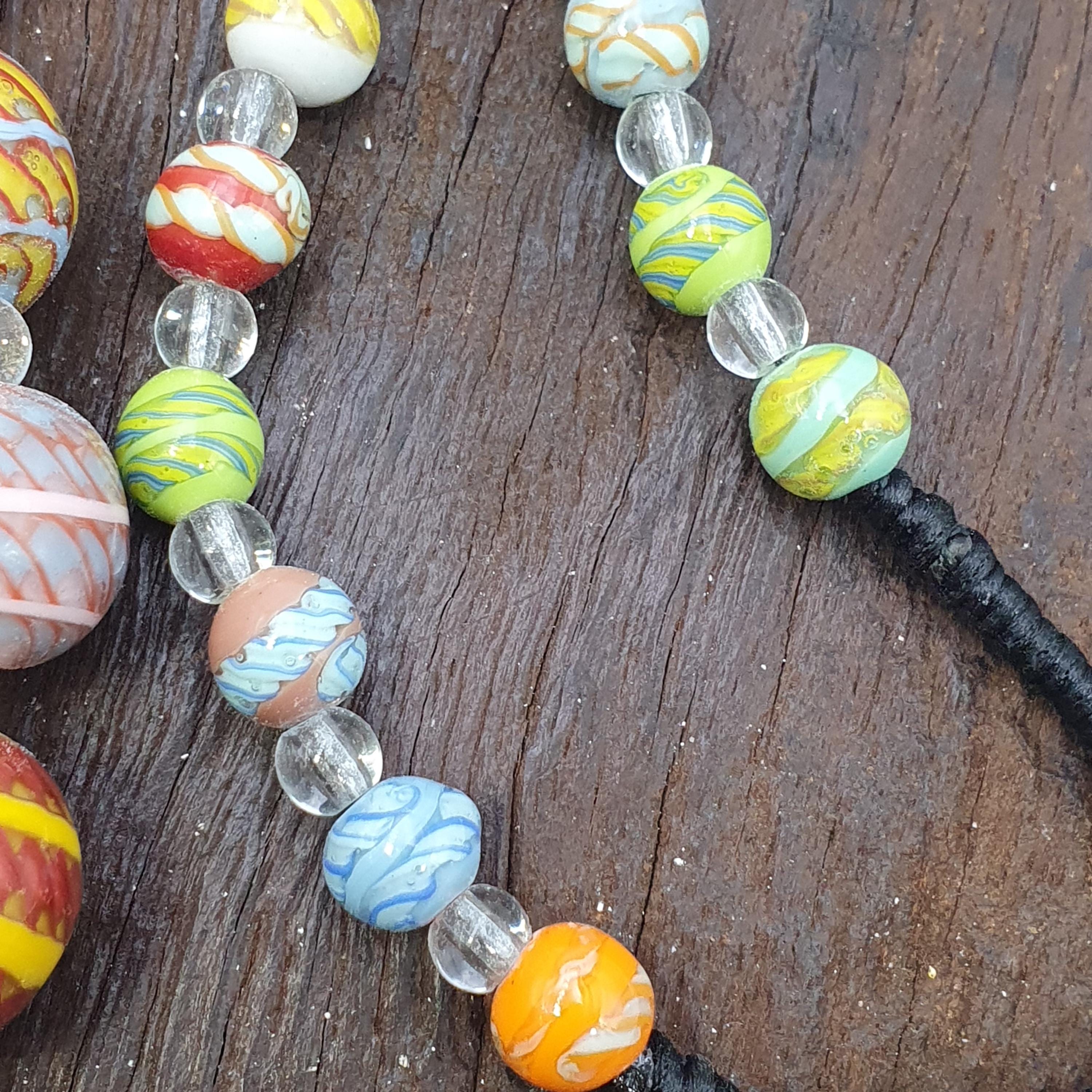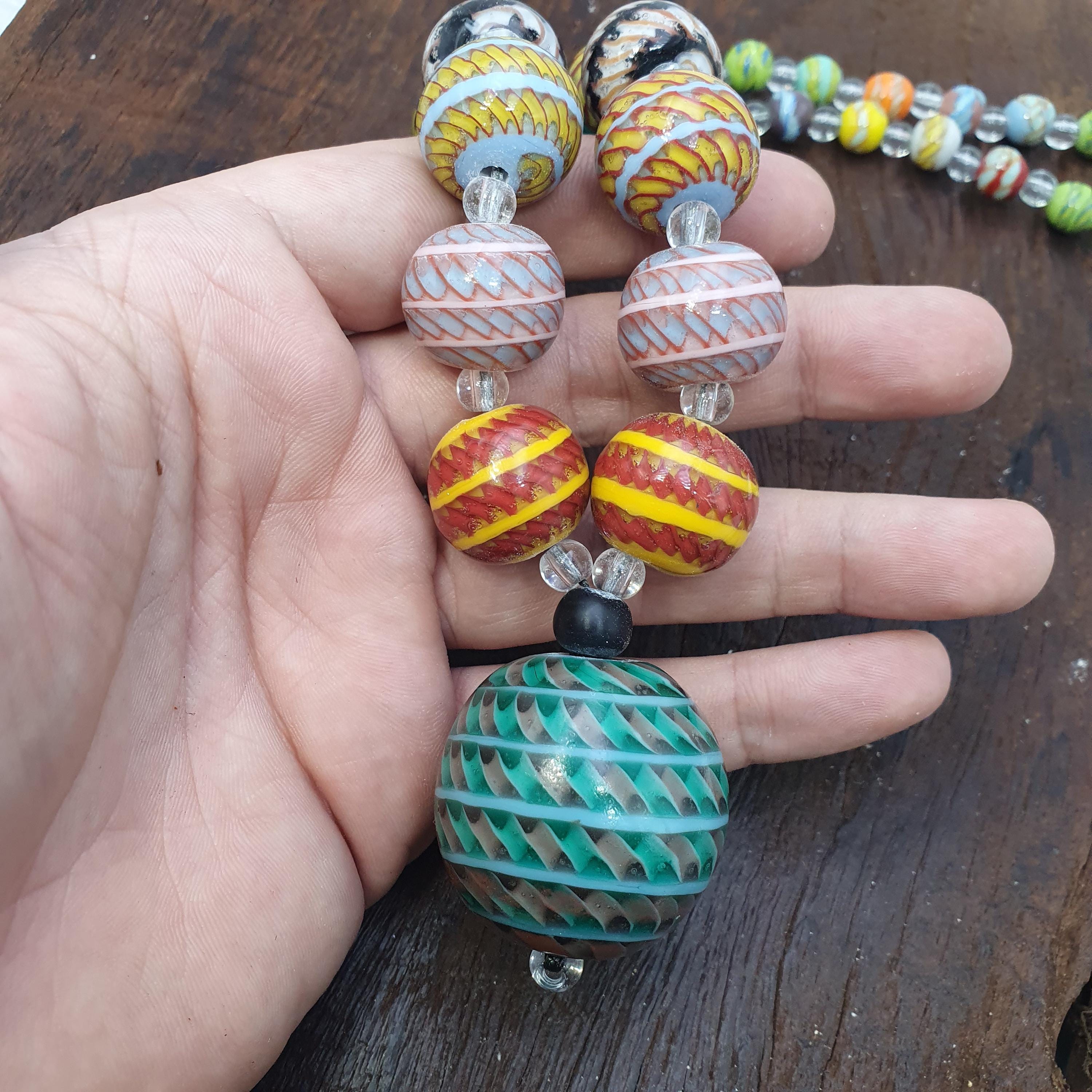 Crafted with attention to detail, each bead showcases colorful, intricate patterns reminiscent of traditional Venetian glass artistry. The standout large bead pendant adds a bold focal point, while the array of smaller, lively beads creates a playful yet sophisticated look. Whether you're dressing up for a special occasion or adding a touch of vintage flair to everyday wear, this necklace is a versatile choice.