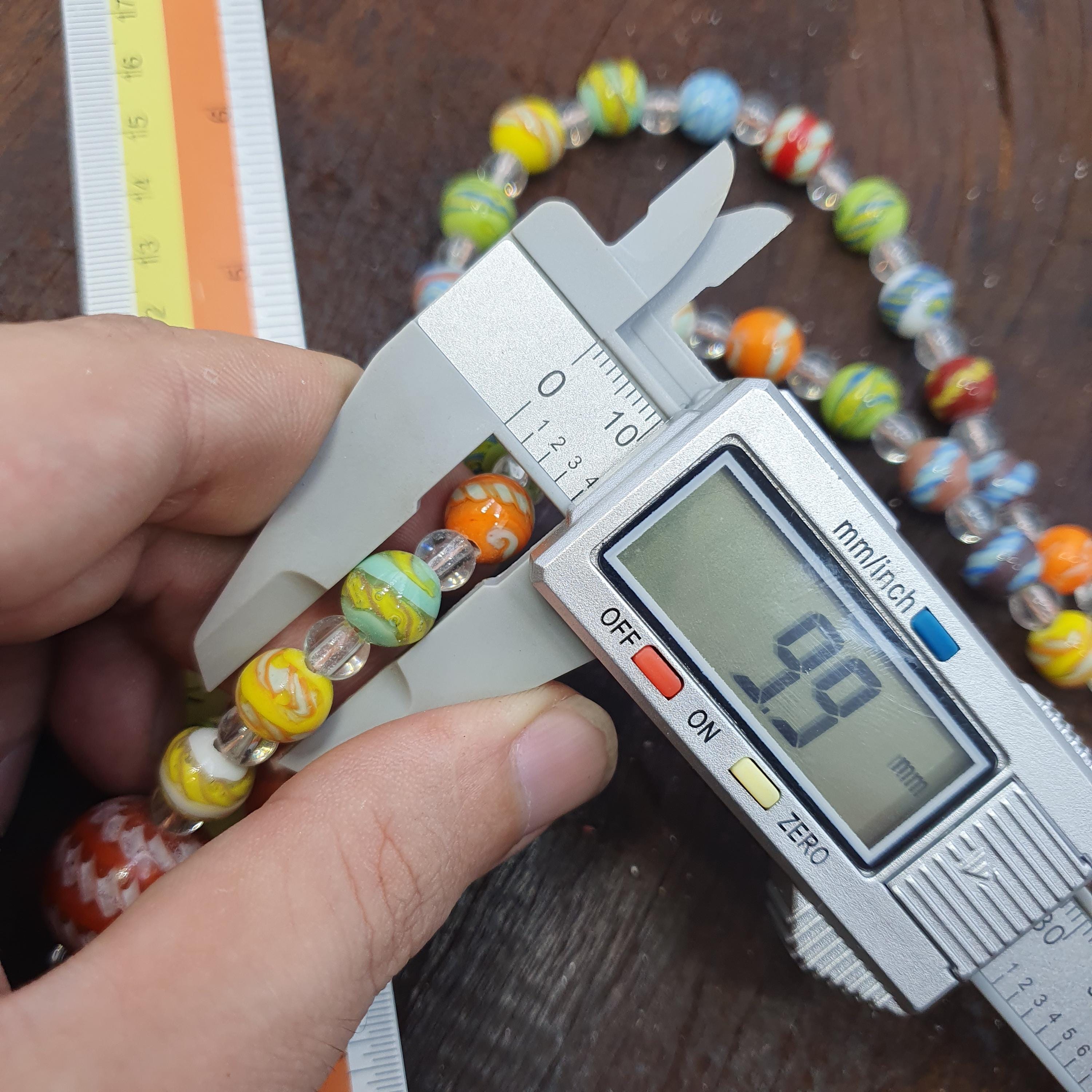 - Beads made from durable glass with colorful, intricate patterns