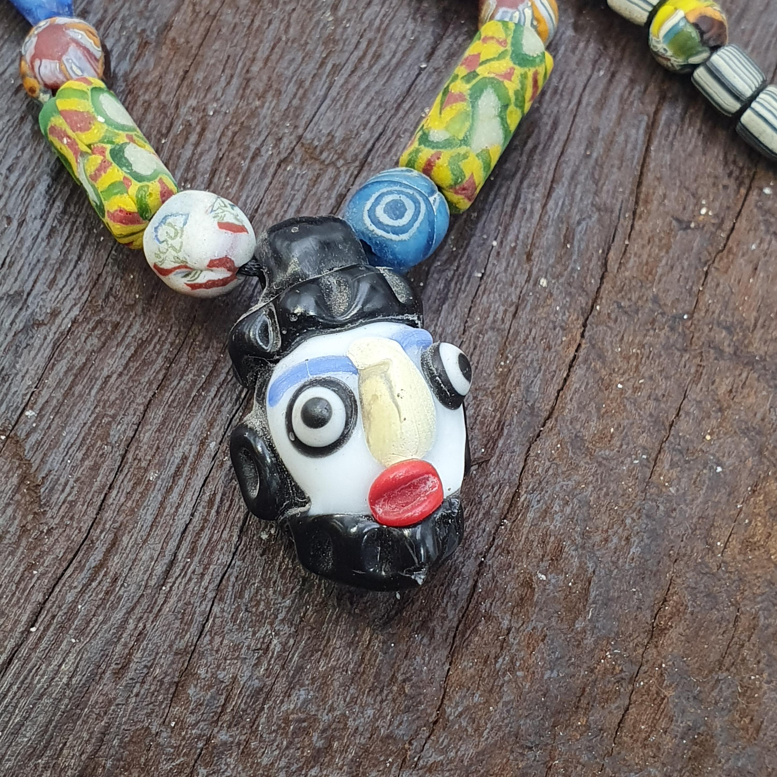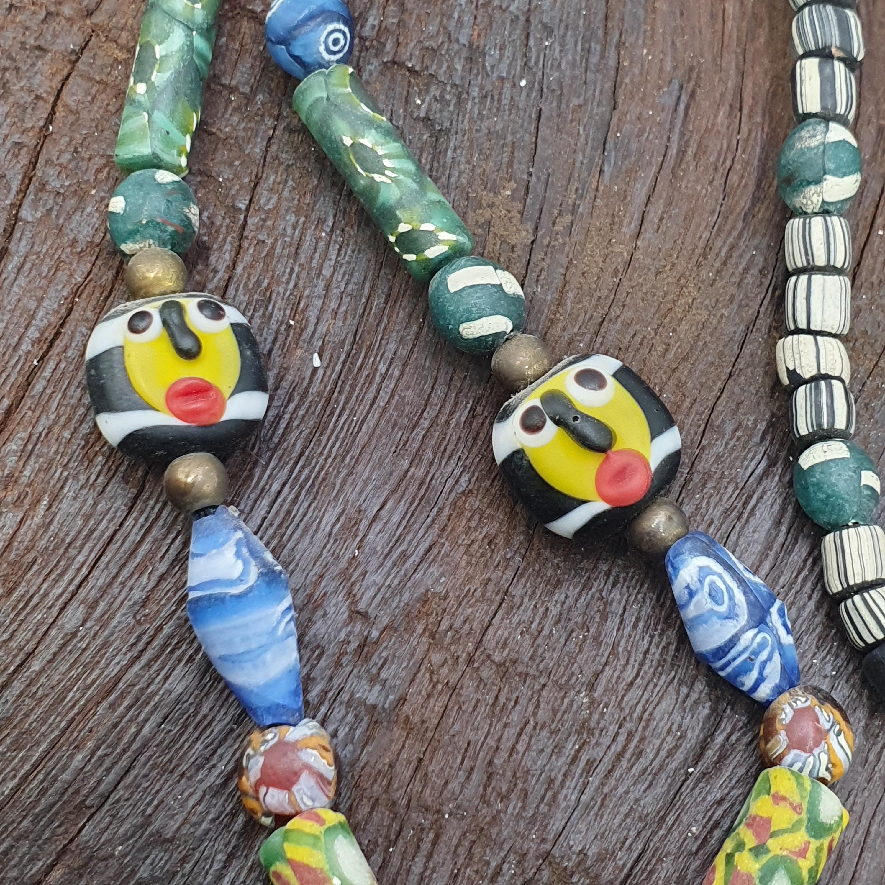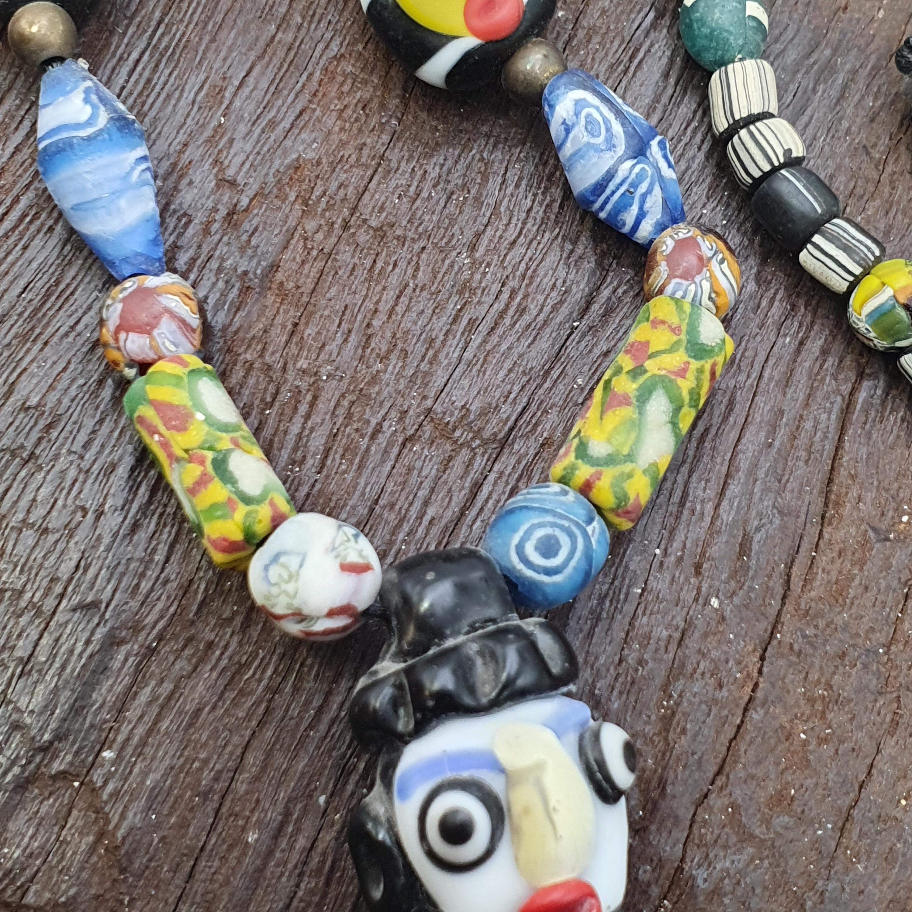 - Handcrafted Venetian style face and millefiori mosaic glass beads