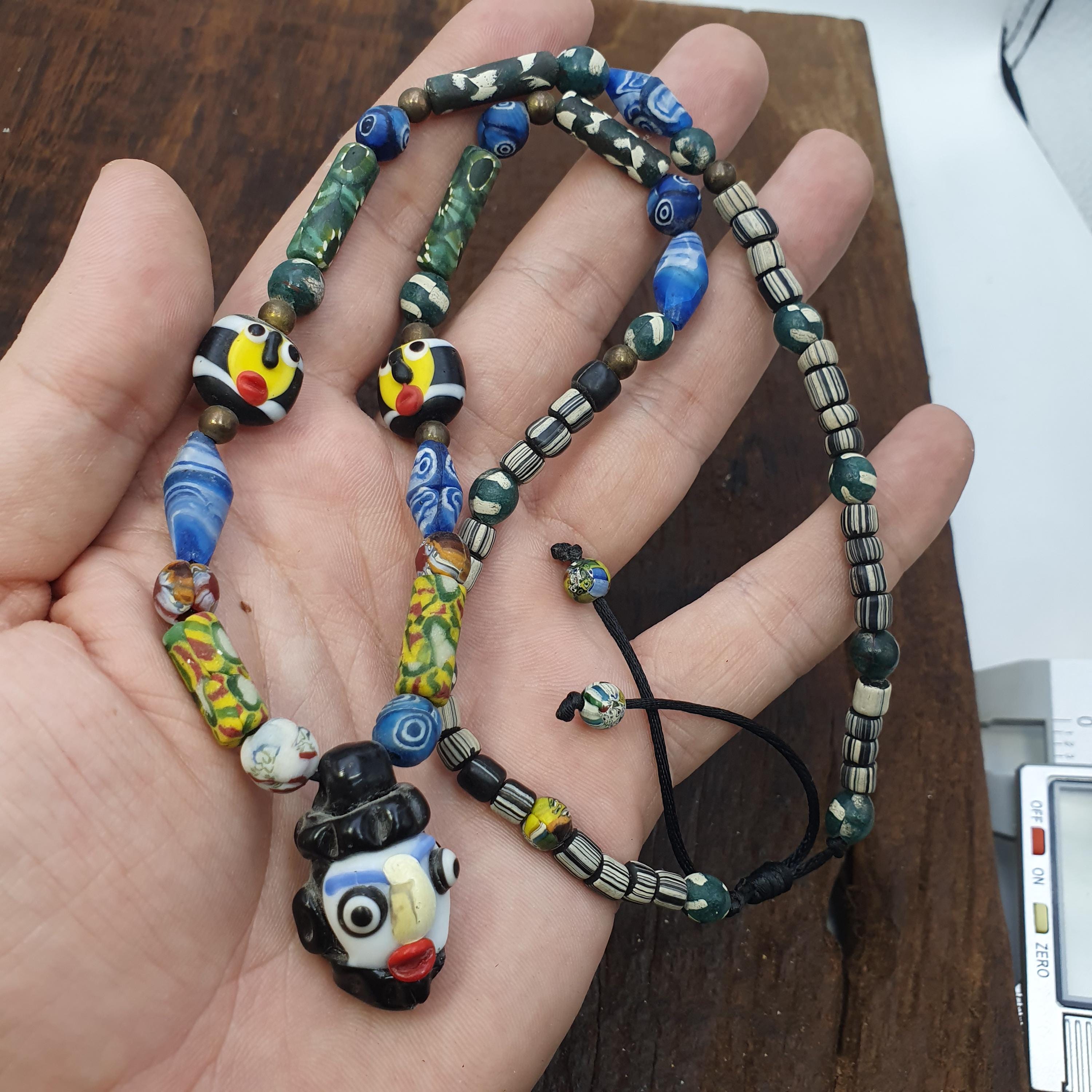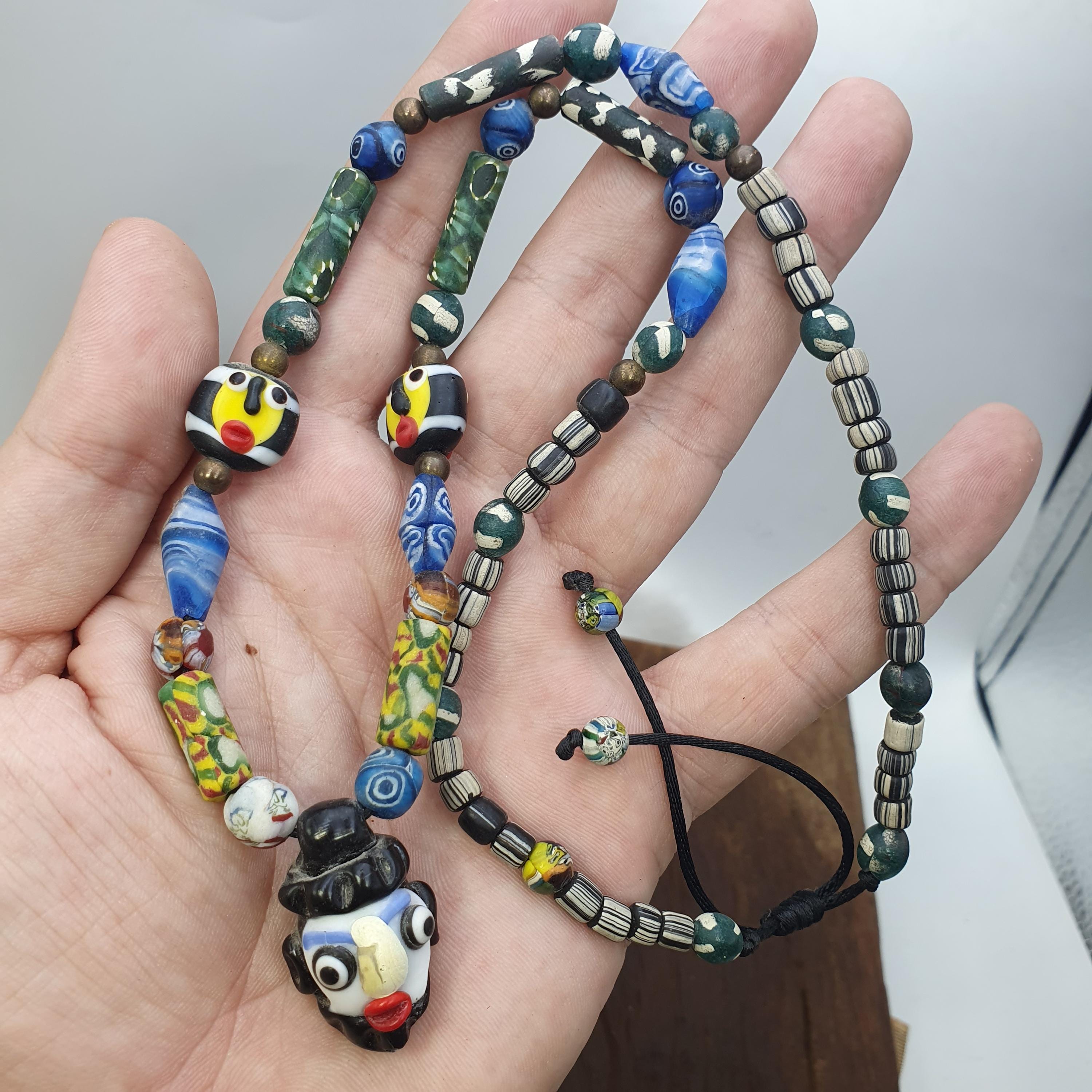 Discover the timeless elegance of our Rare Venetian Style Face Bead Necklace, a stunning 24-inch handmade artisan lampwork jewelry piece that captures the rich artistry of traditional Venetian glasswork. Crafted with vibrant Millefiori mosaic glass beads, this necklace features intricate vintage-inspired portrait Murrine designs, each meticulously created by skilled artisans to evoke historical charm and artistic sophistication.