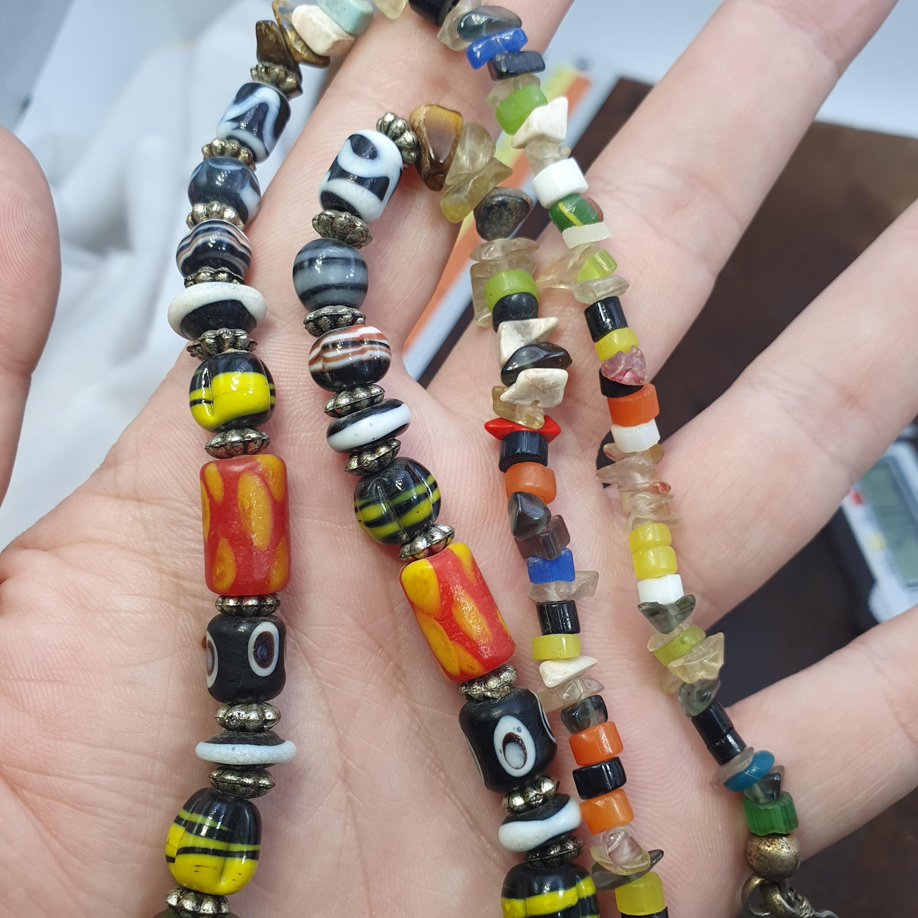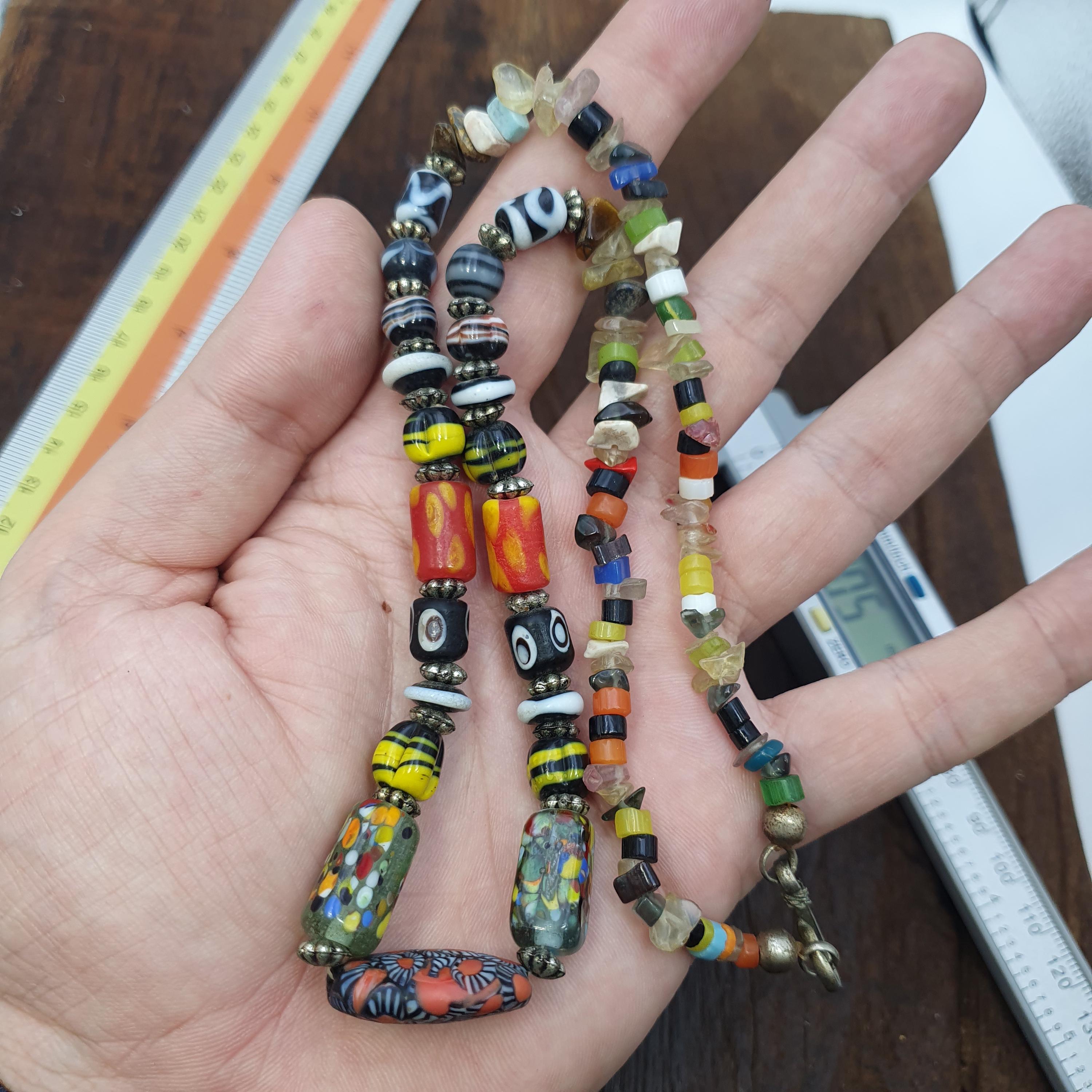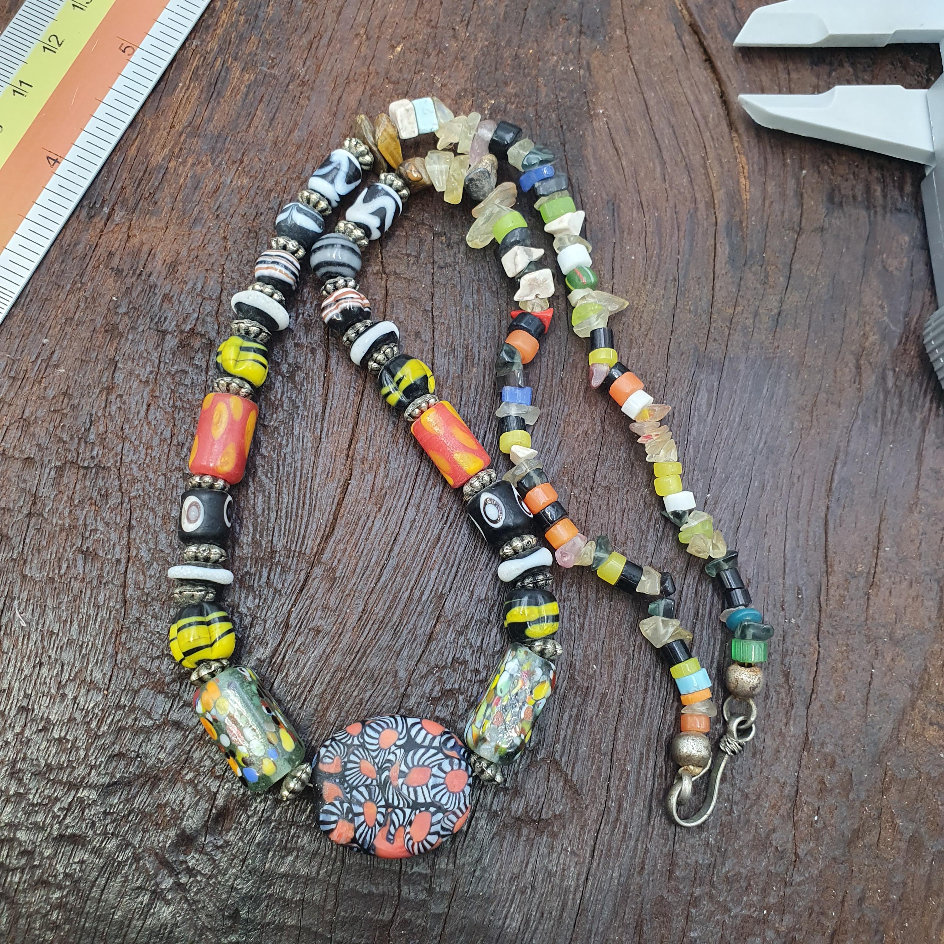 This necklace is a "conversation piece." It pairs beautifully with neutral linens to let the colors pop, or as part of a layered, maximalist look with other gold or glass jewelry.