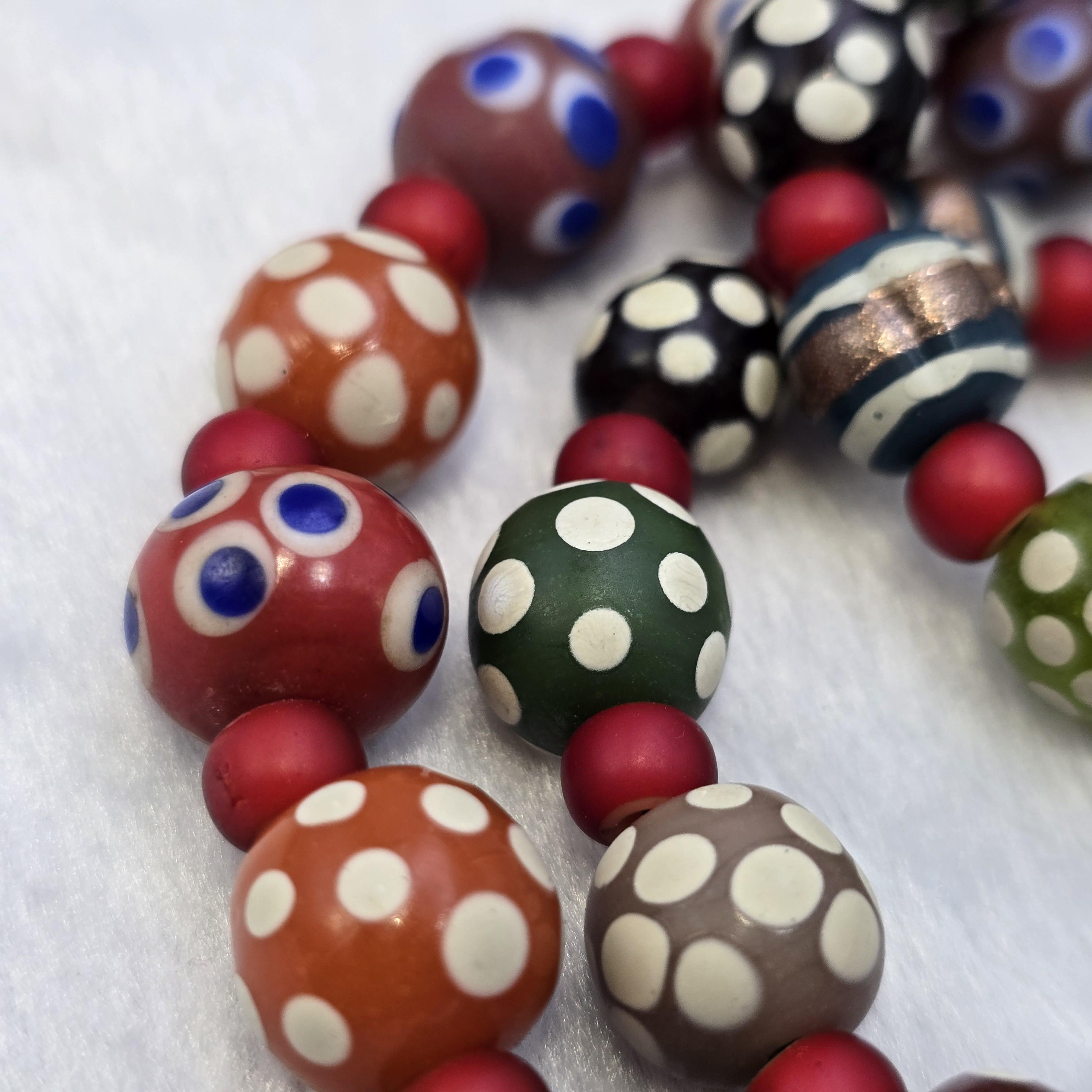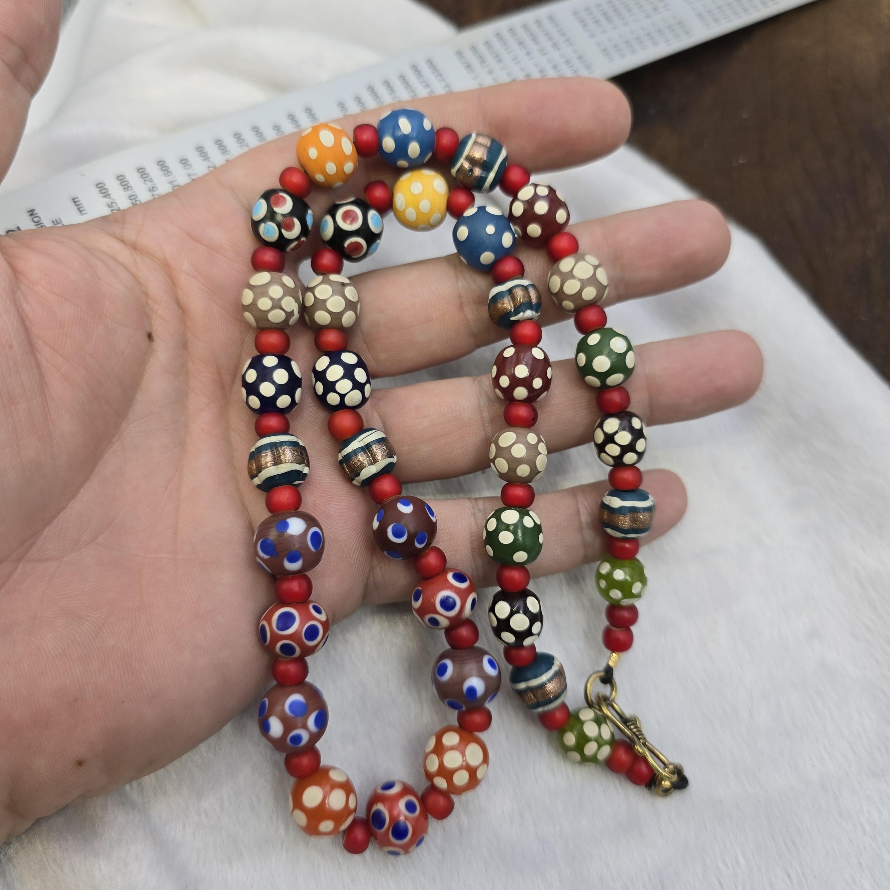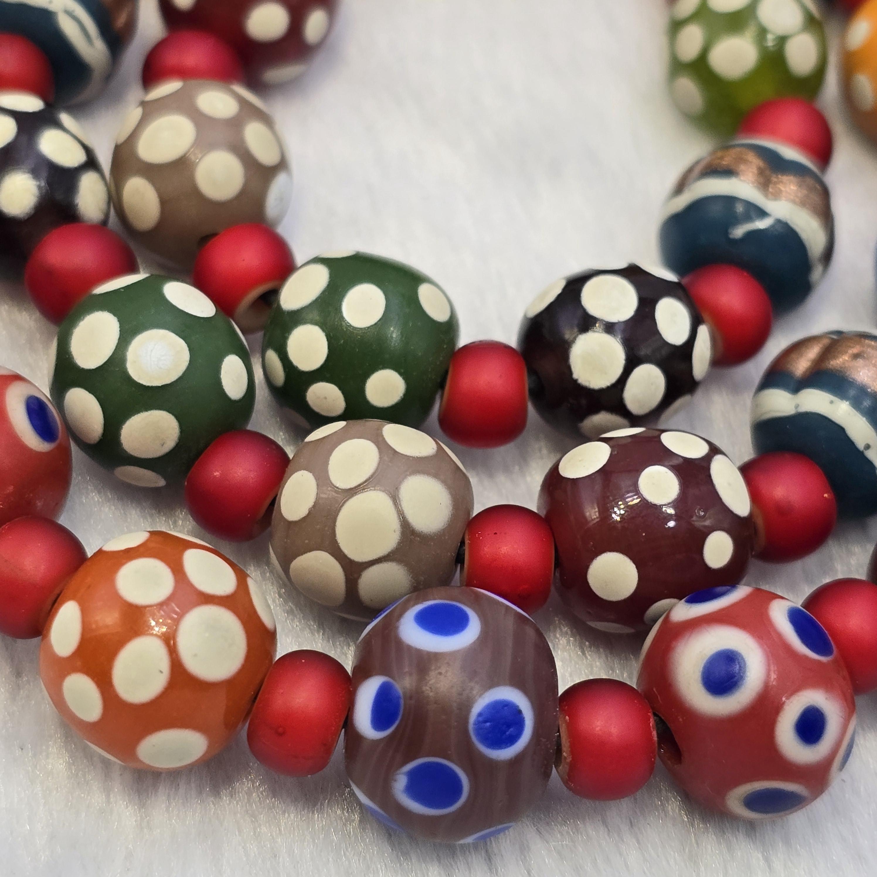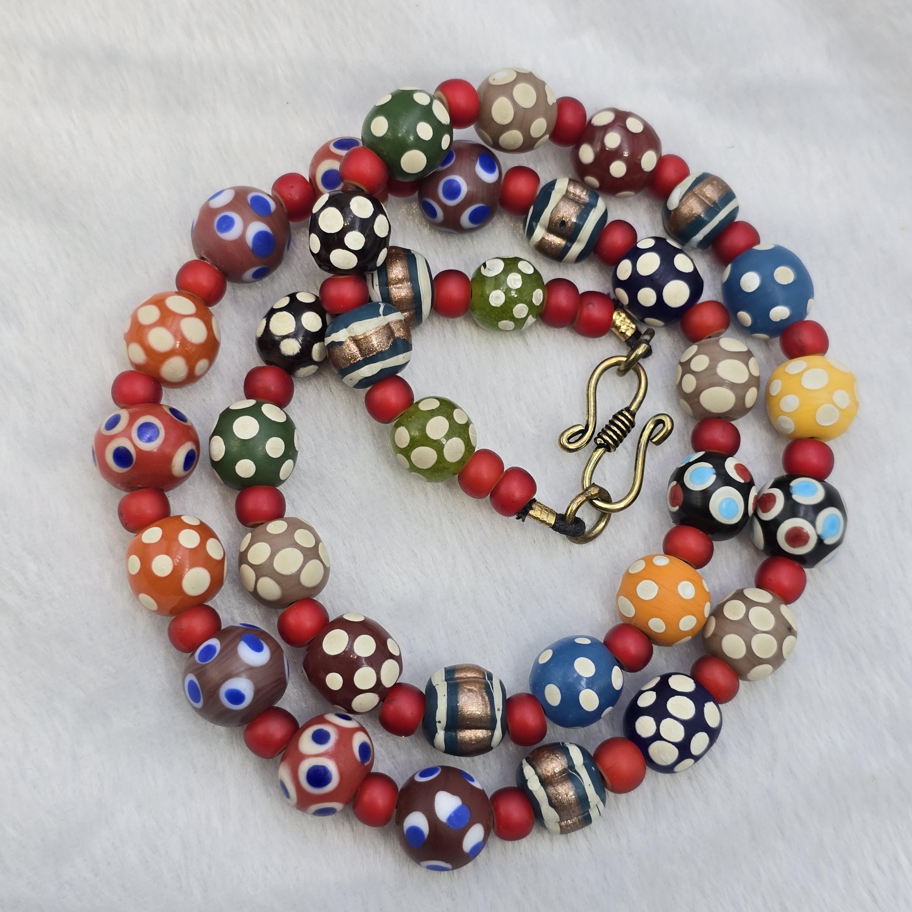 Vintage Fancy Floral Venetian Style Skunk Beads | African Style Necklace