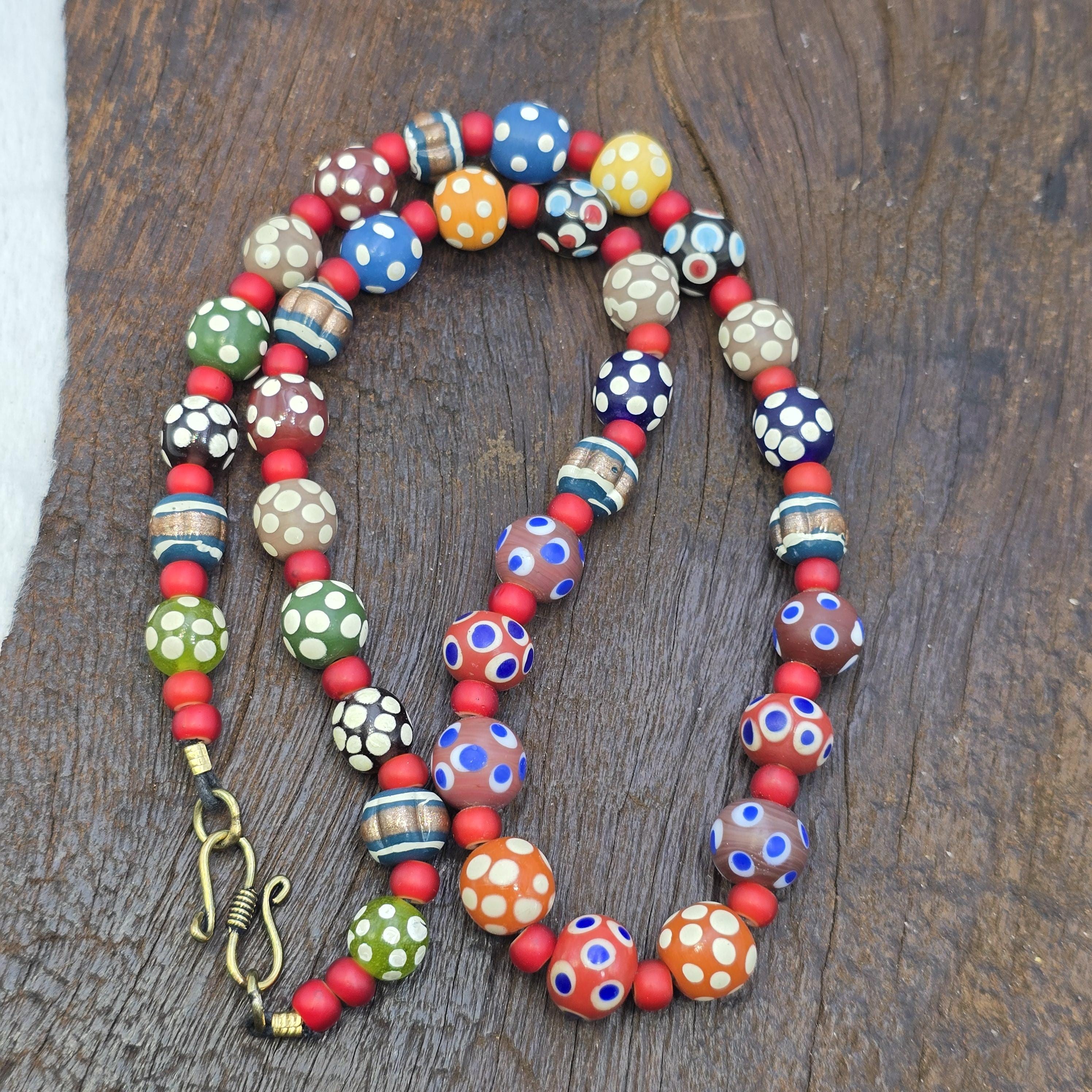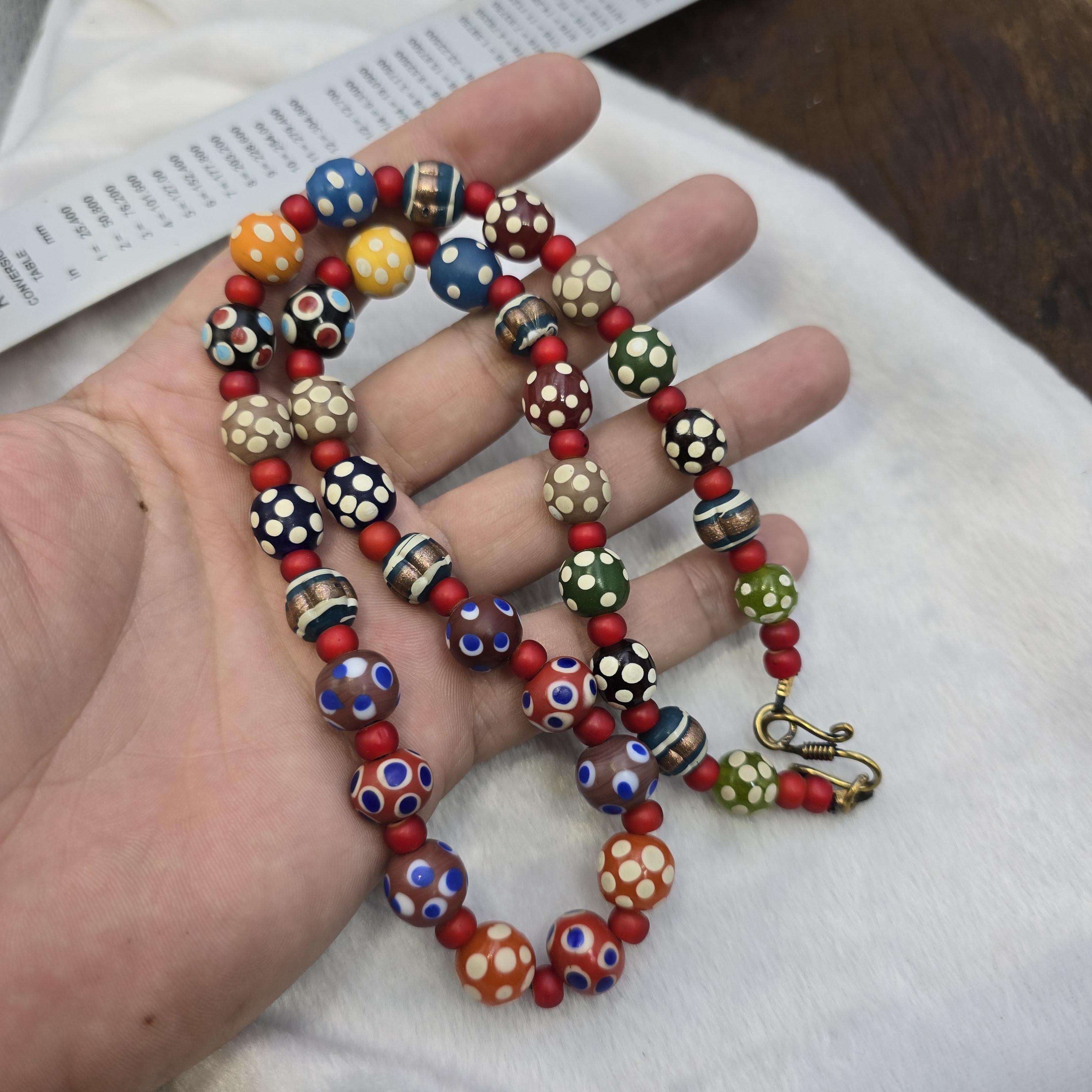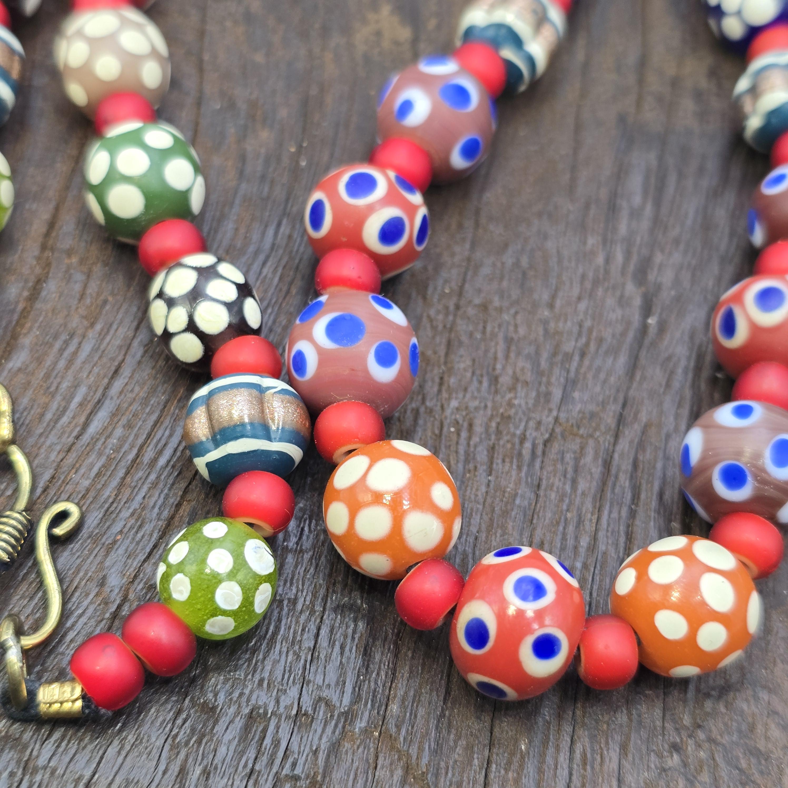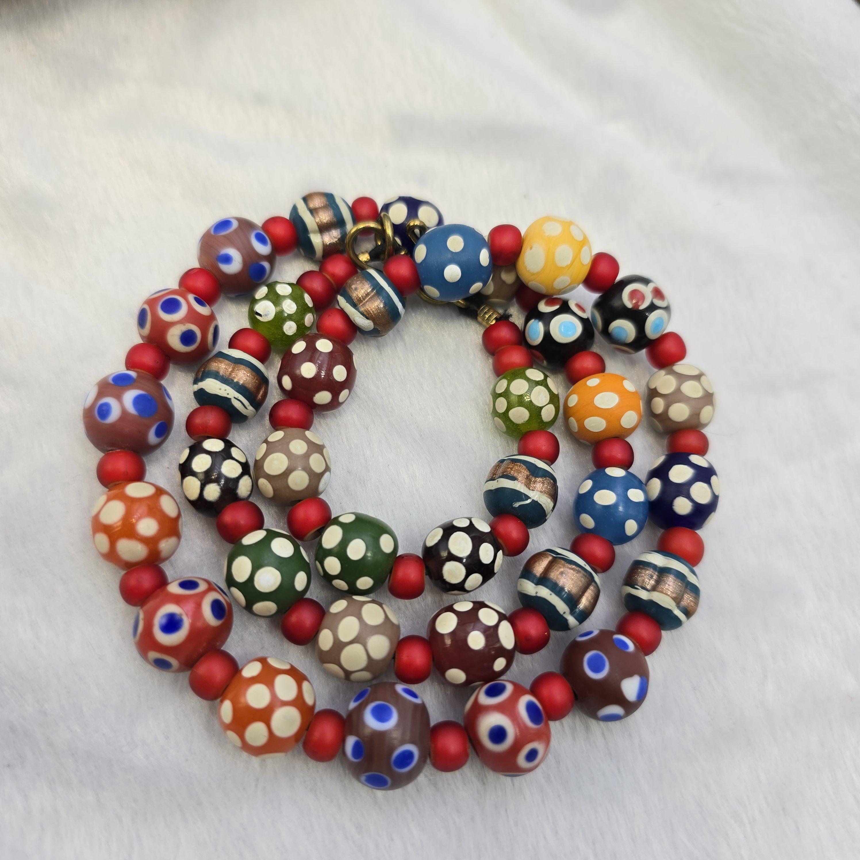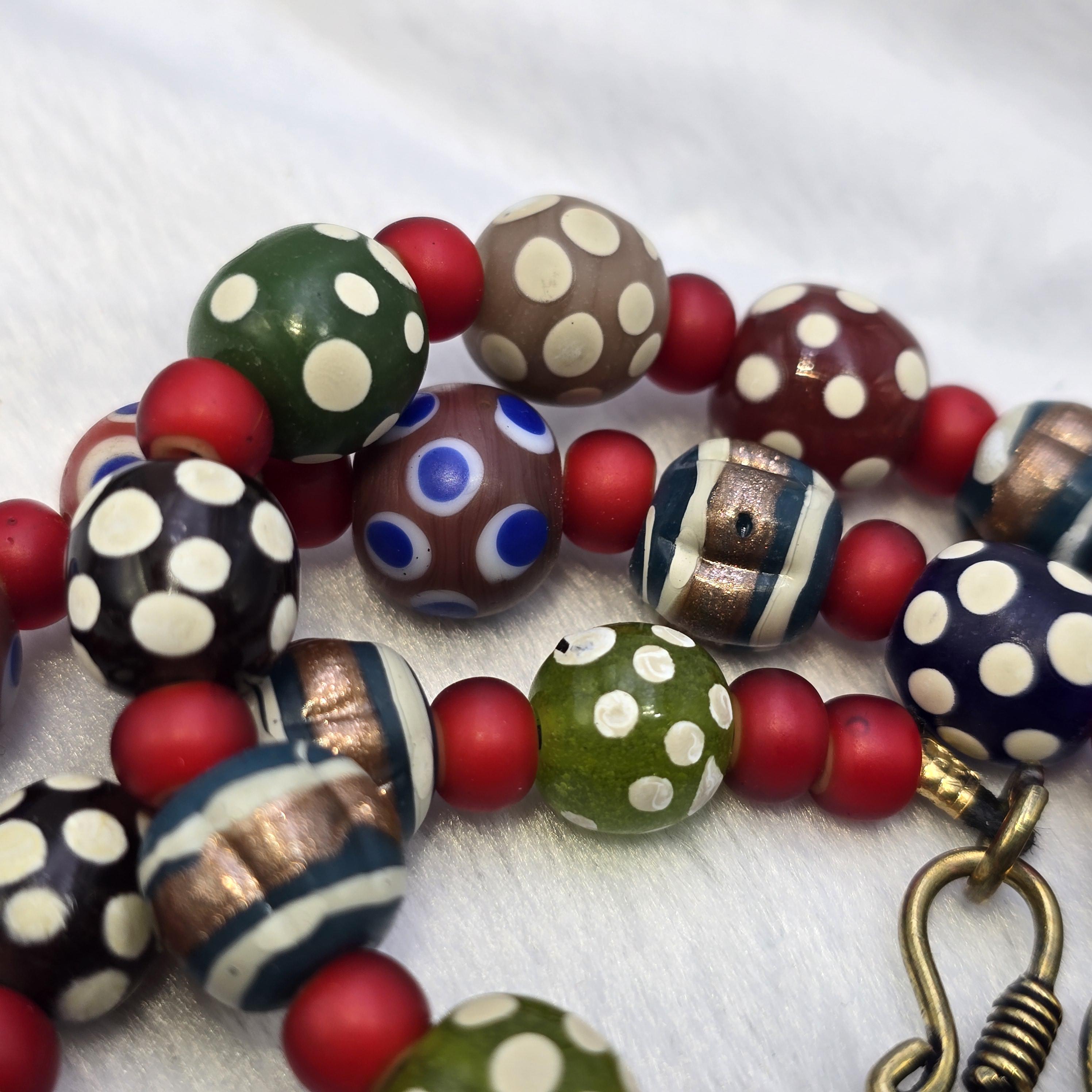 Vintage Fancy Floral Venetian Style Skunk Beads | African Style Necklace