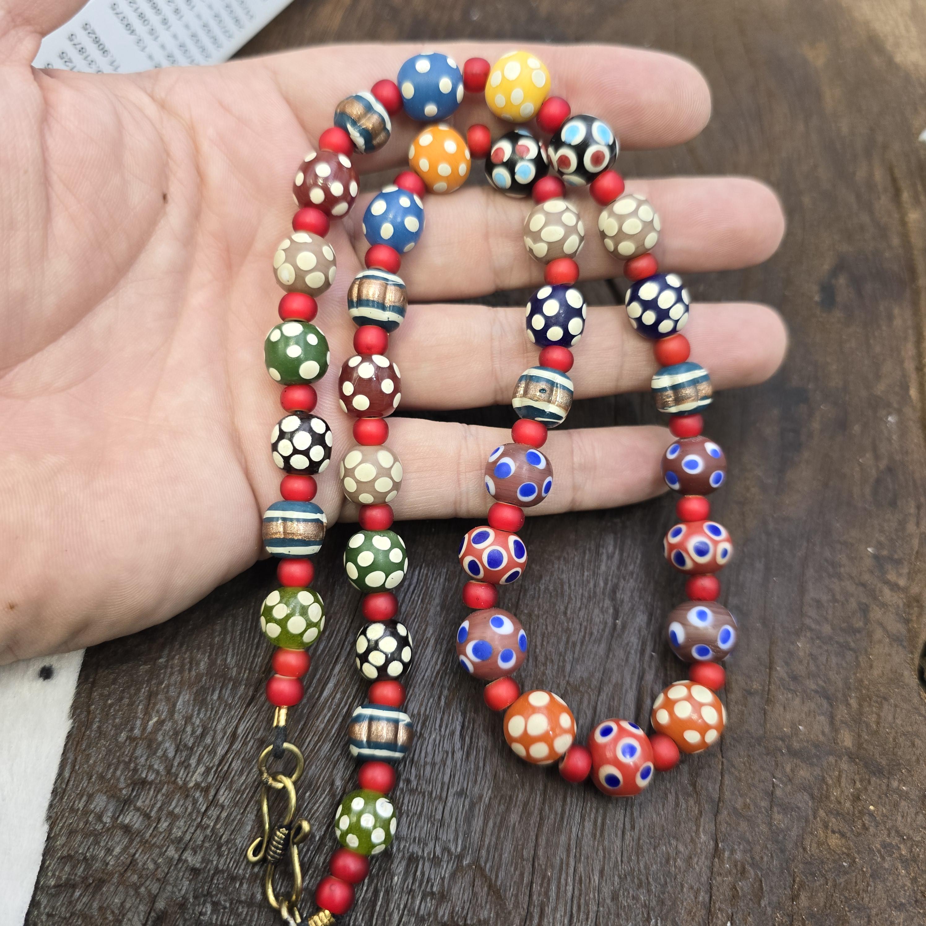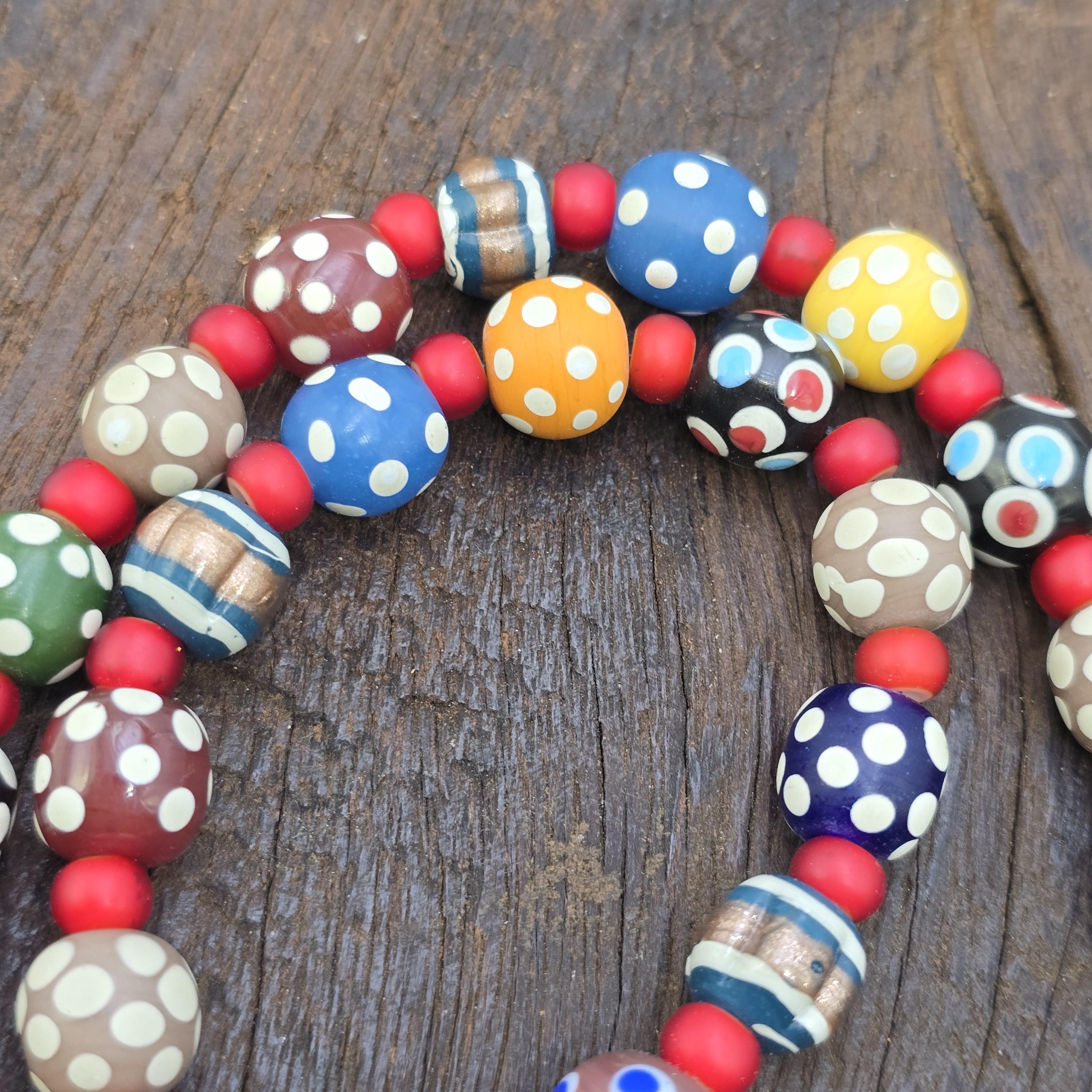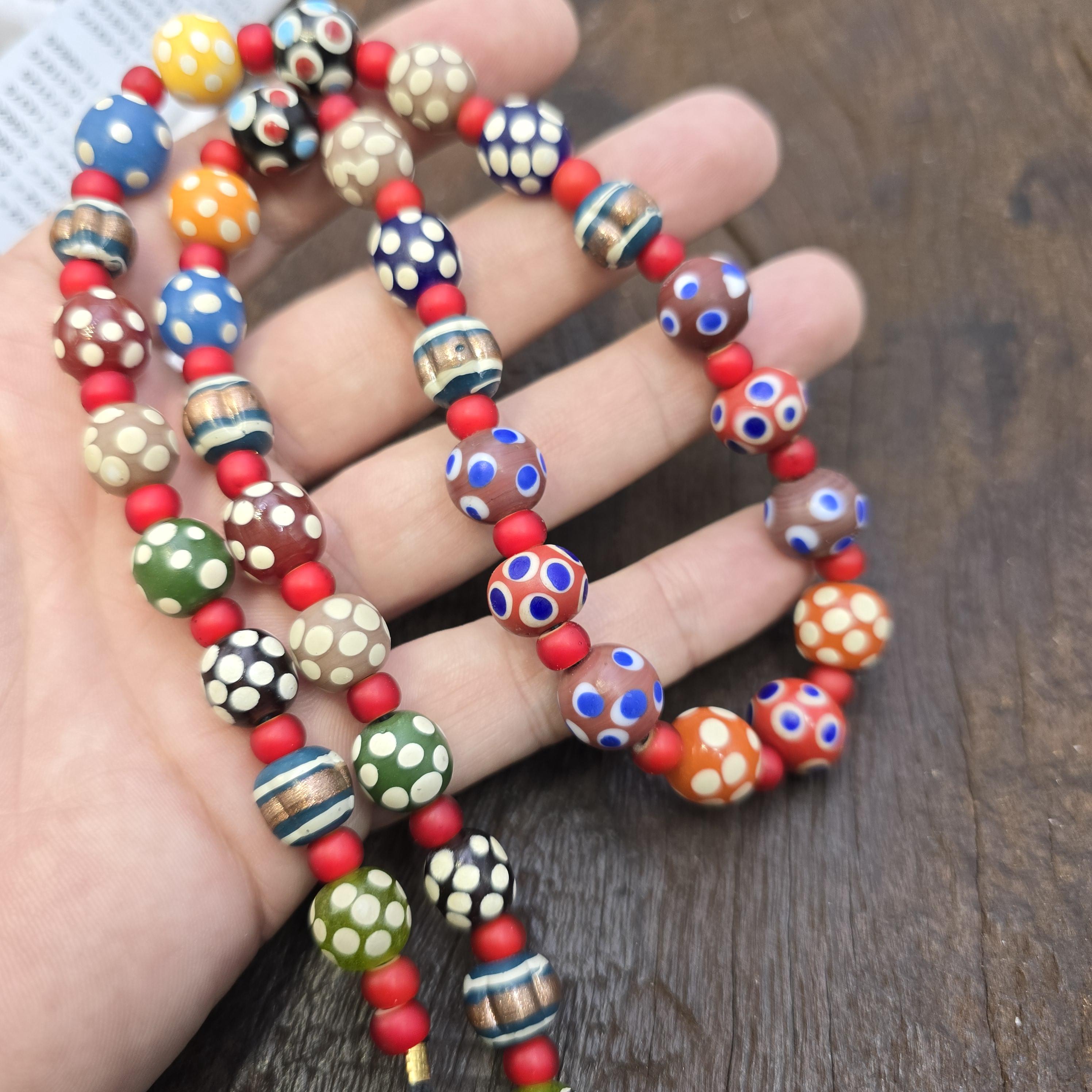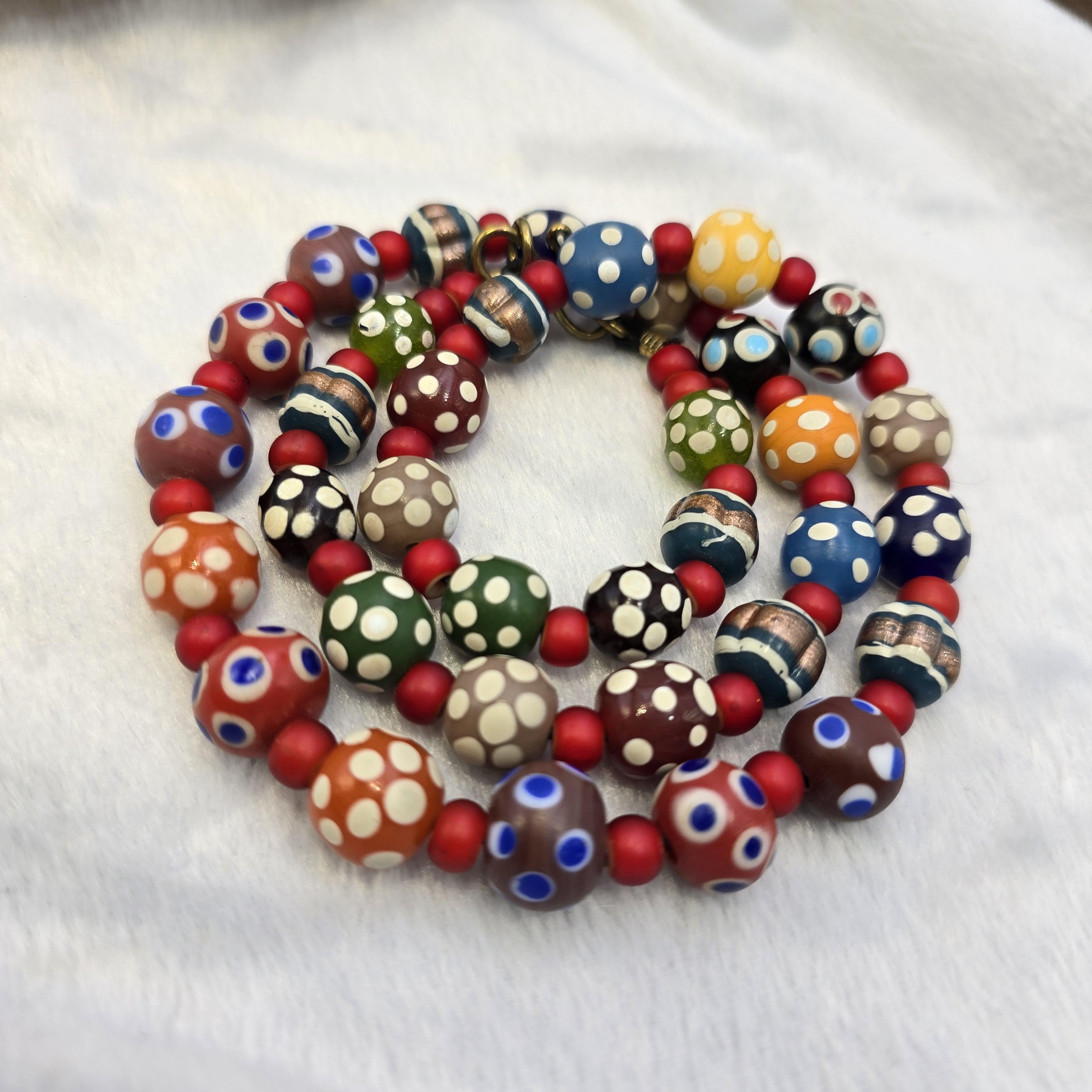 Vintage Fancy Floral Venetian Style Skunk Beads | African Style Necklace